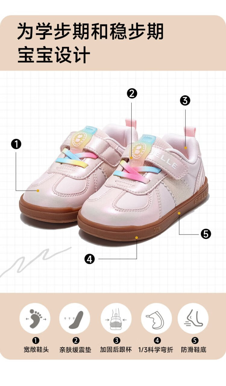 Belle Children's Shoes 2025 Autumn New Boys Toddler Shoes Girls Versatile Retro Moral Training Baby Casual Shoes Pink 27