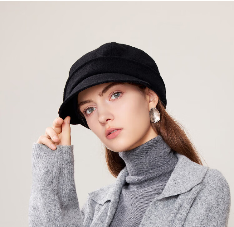FANCET Hat Women's Autumn and Winter Style Elegant Beret Simple Temperament Showing Face Little Fisherman Hat Warm Peaked Hat for Mom
