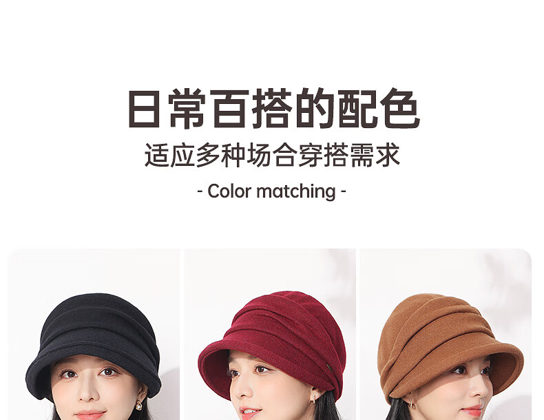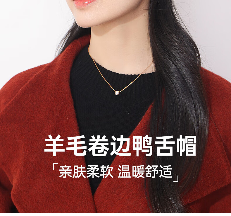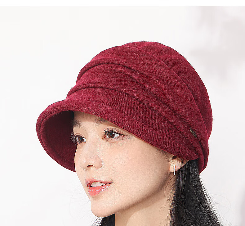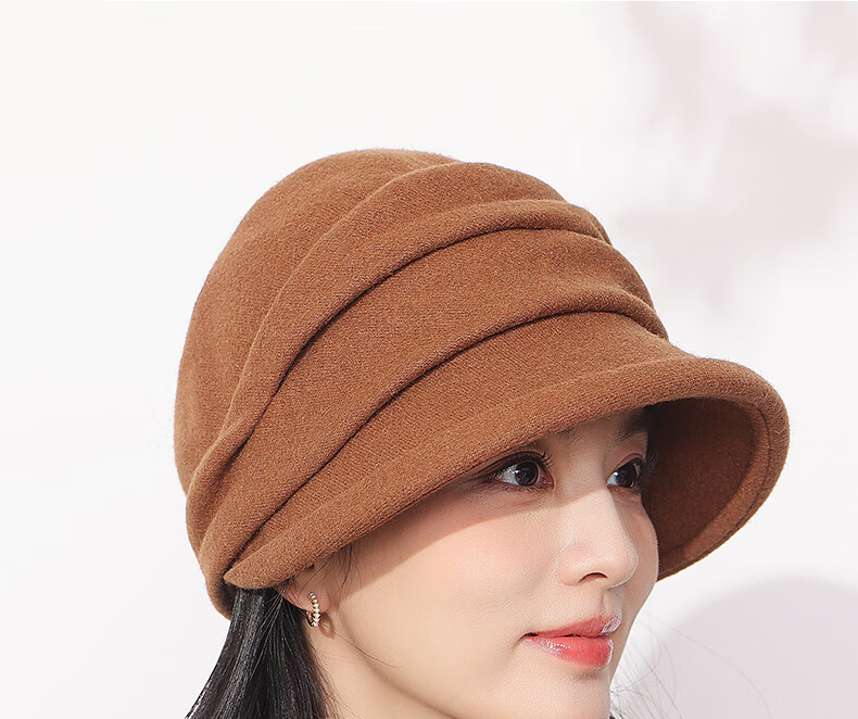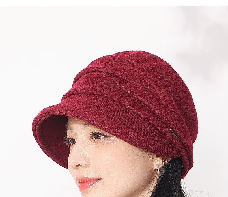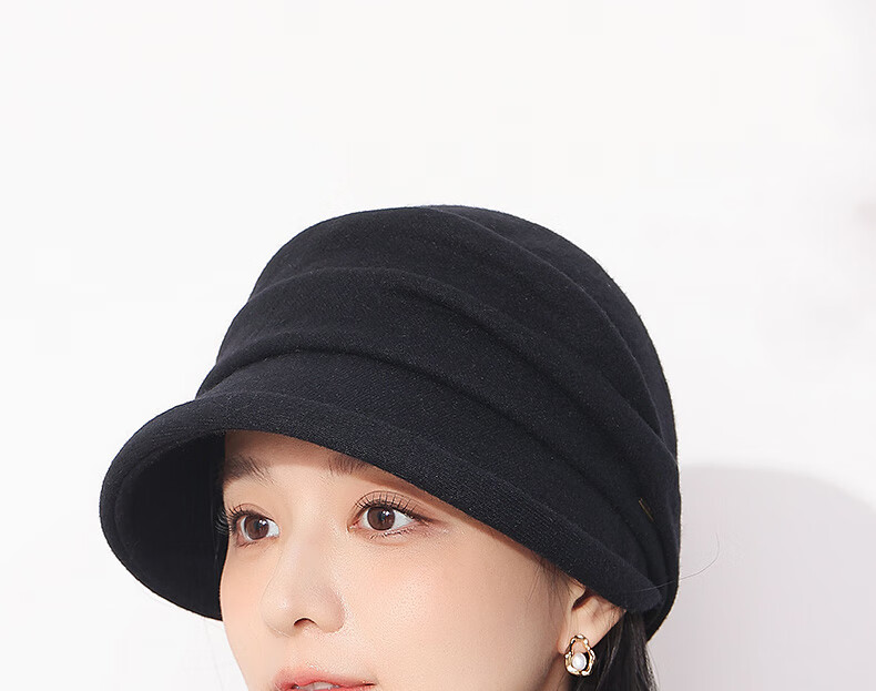 Hengyuanxiang duck cap for women, autumn and winter warm baseball cap with face, small wool, fashionable and versatile sewing beret, birthday gift