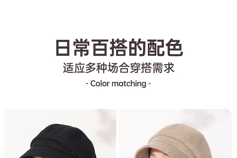 Hengyuanxiang duck cap for women fashionable autumn and winter warm wool baseball cap for girls fashionable and versatile birthday gift khaki