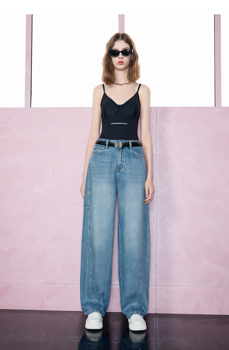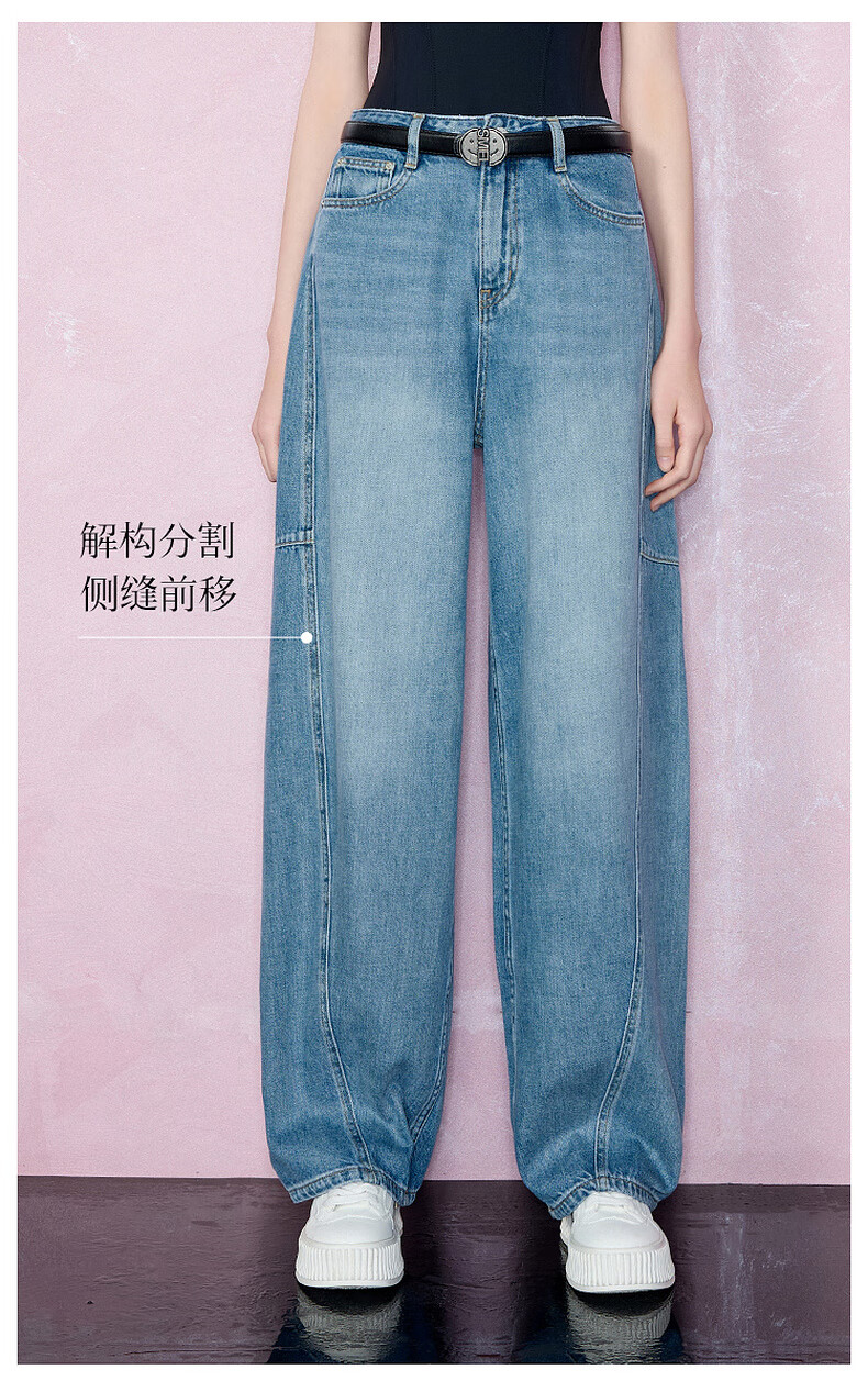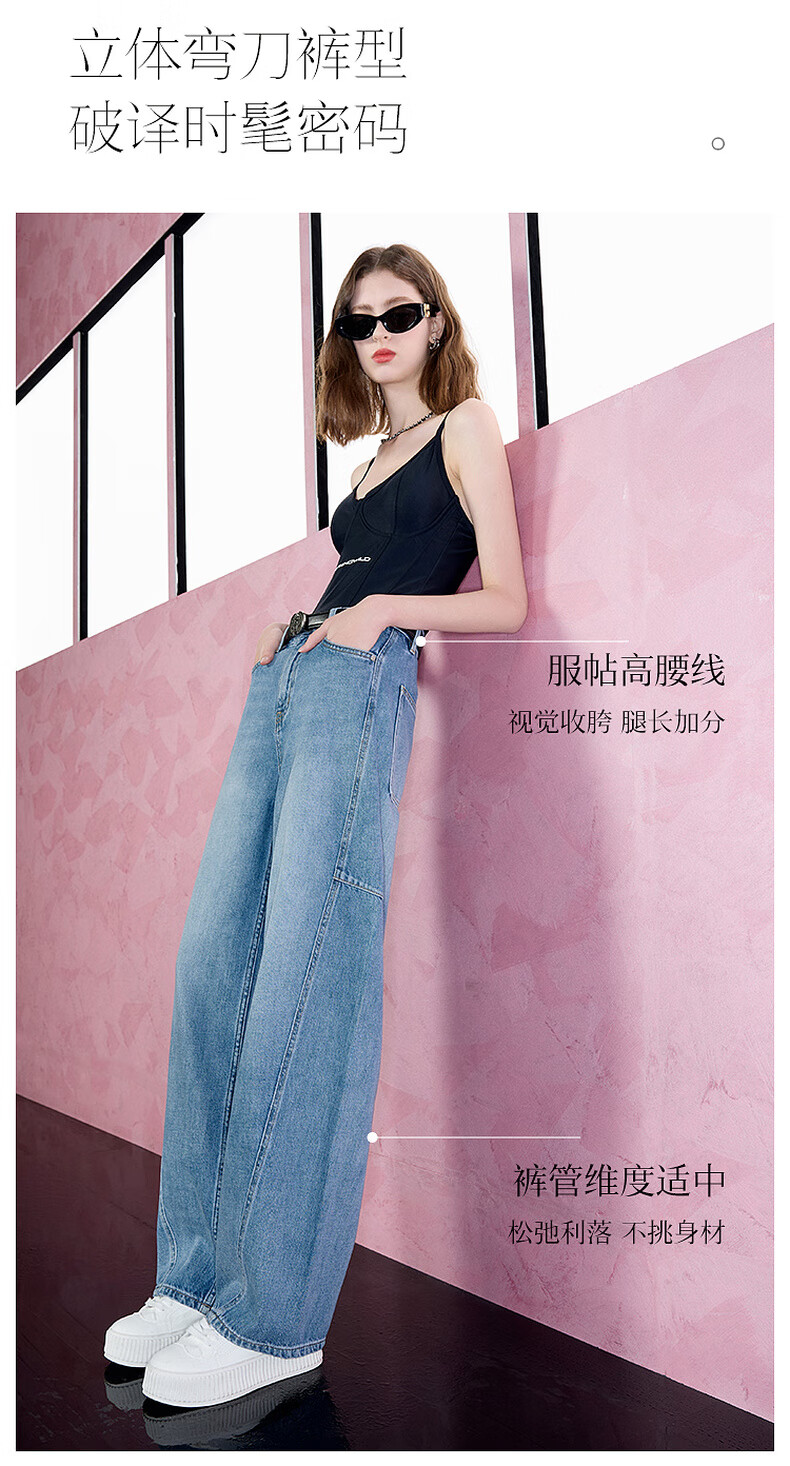 Sancai 2025 winter new style high-waisted loose jeans pure cotton trousers scimitar wide-leg pants drape