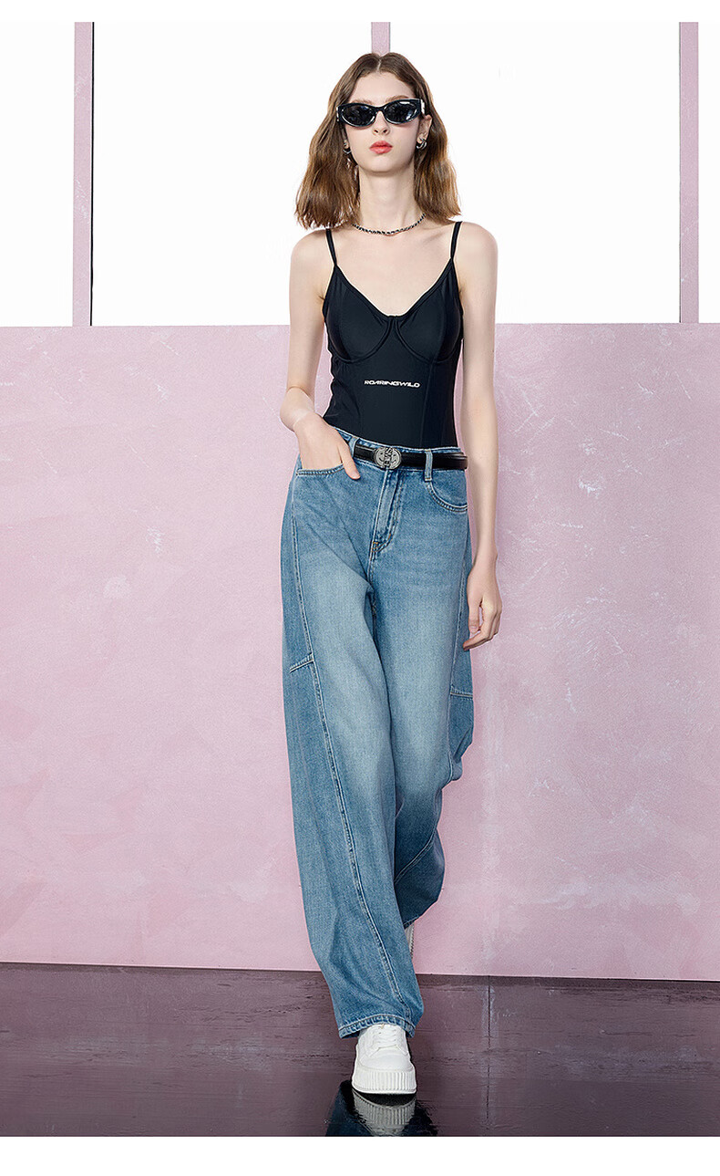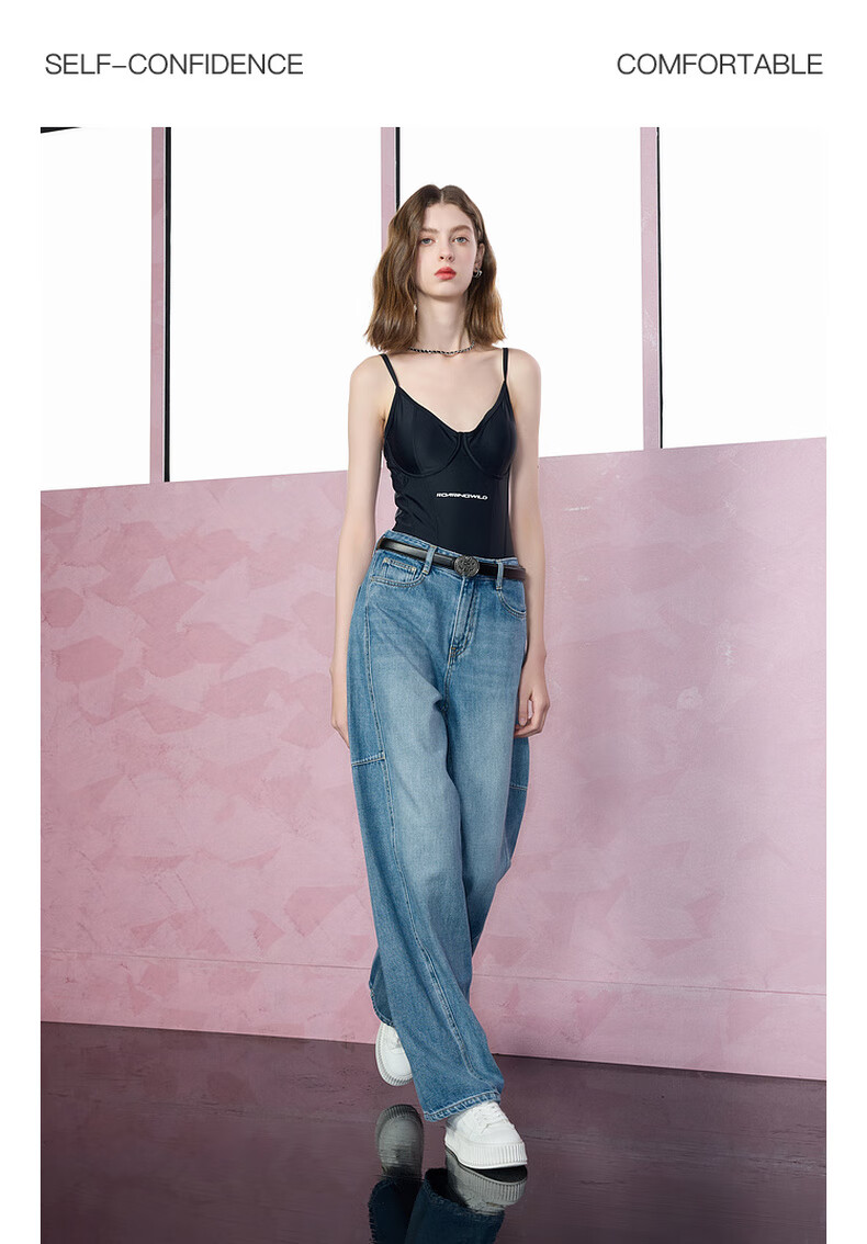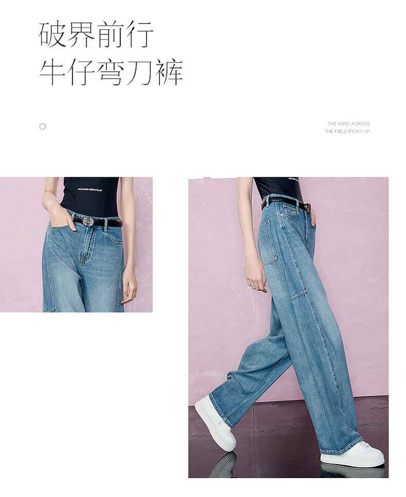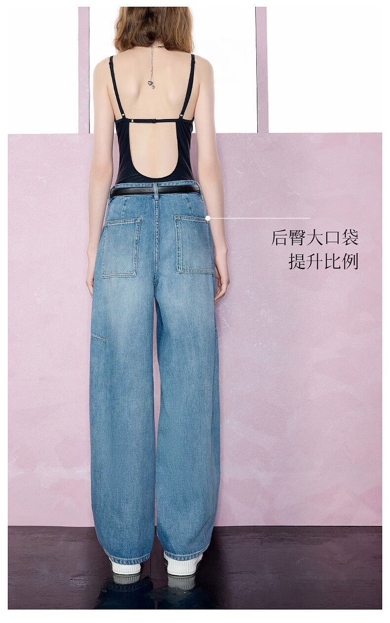 Sancai 2025 winter new style high-waisted loose jeans pure cotton trousers scimitar wide-leg pants drape