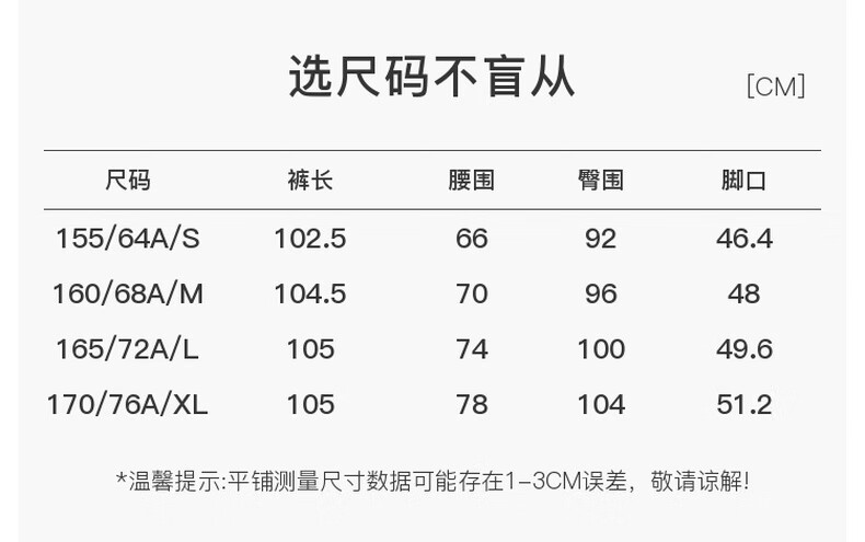 Outseam (cm) 99 cm 101.5 cm 104 cm 106.5 cm 109 cm