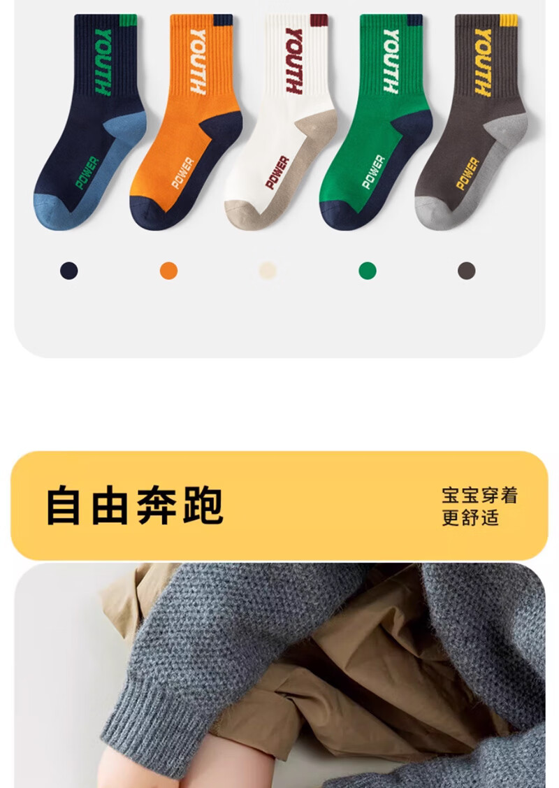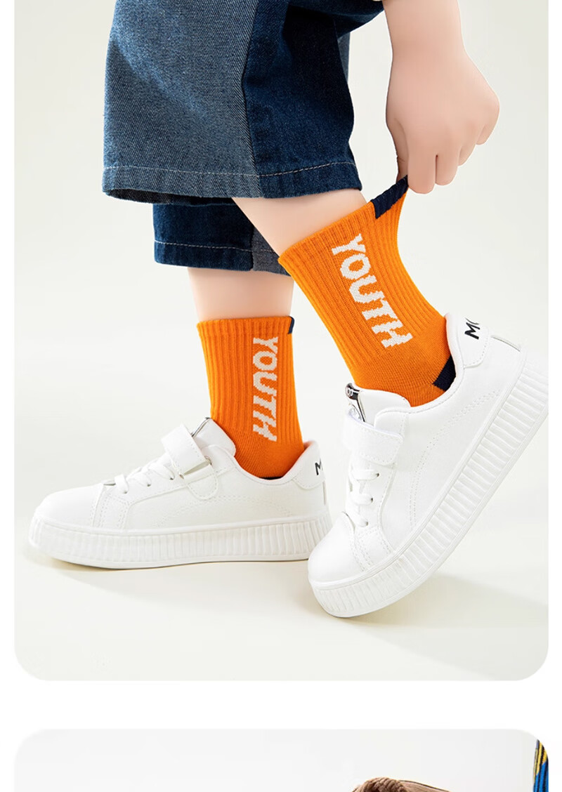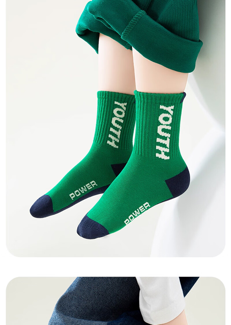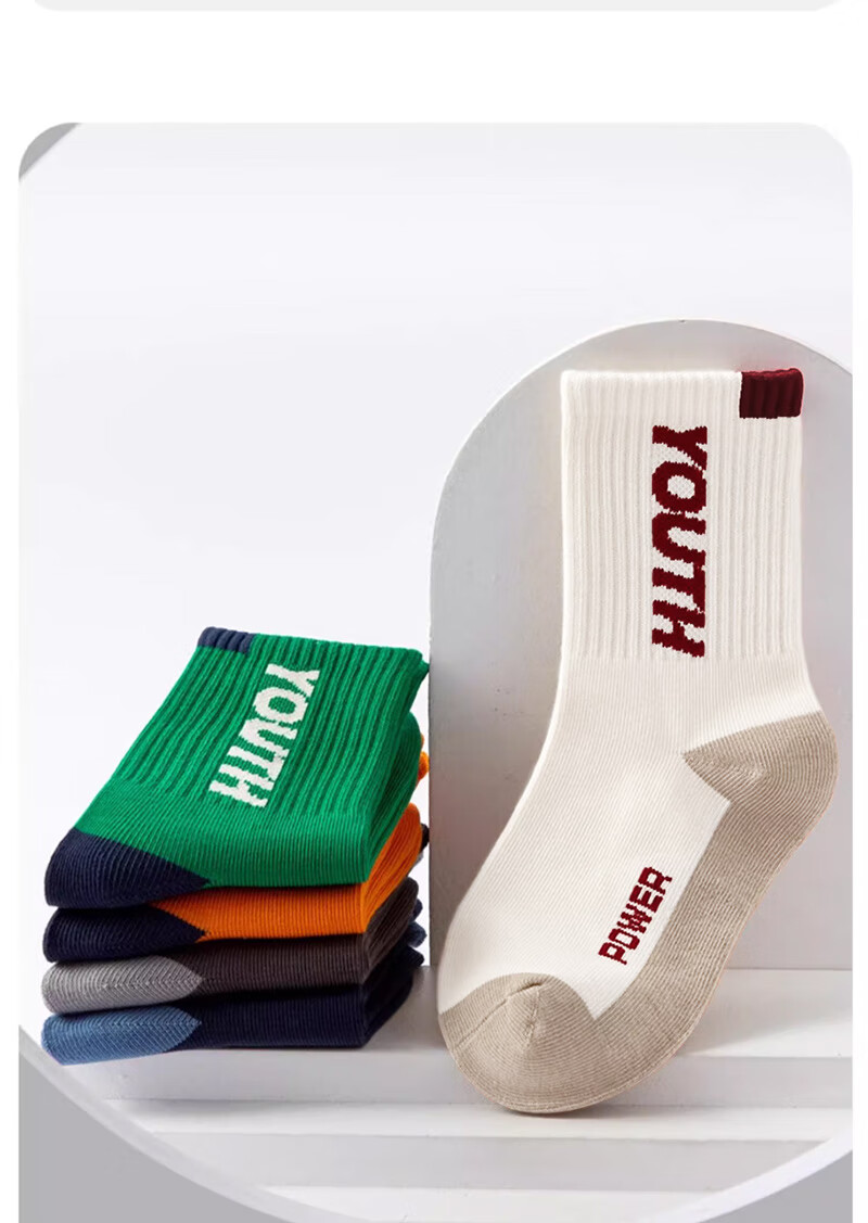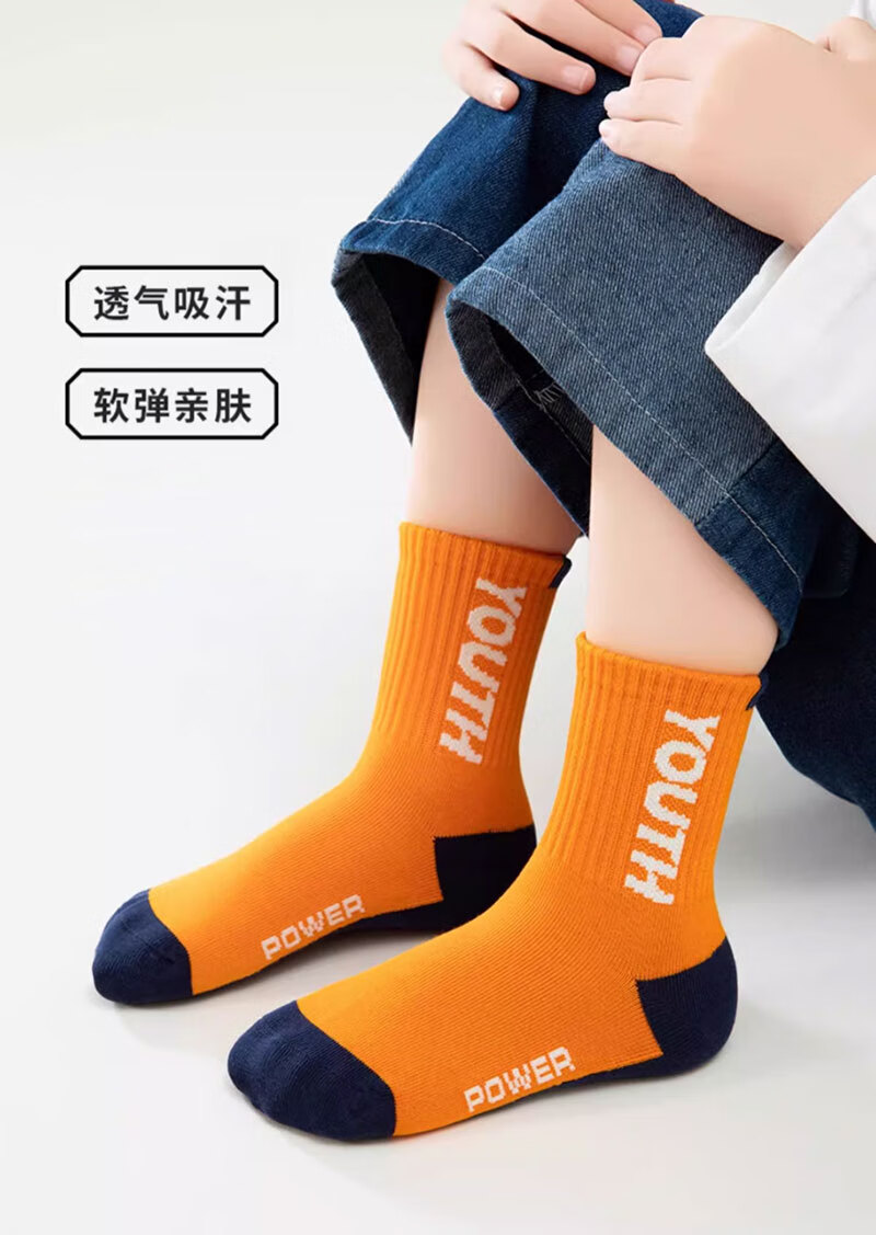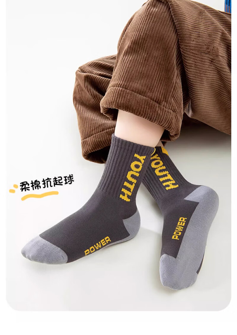 Cotton-filled boys' socks 100% cotton antibacterial 6-12 years old anti-mite sports children's autumn and winter mid-length socks for middle-aged and older children 6 pairs