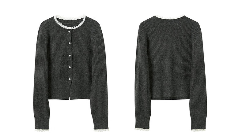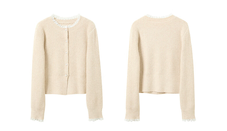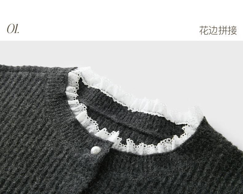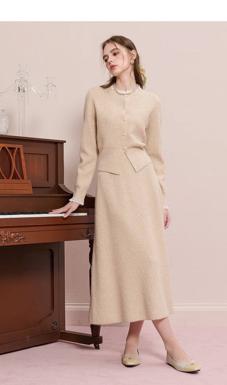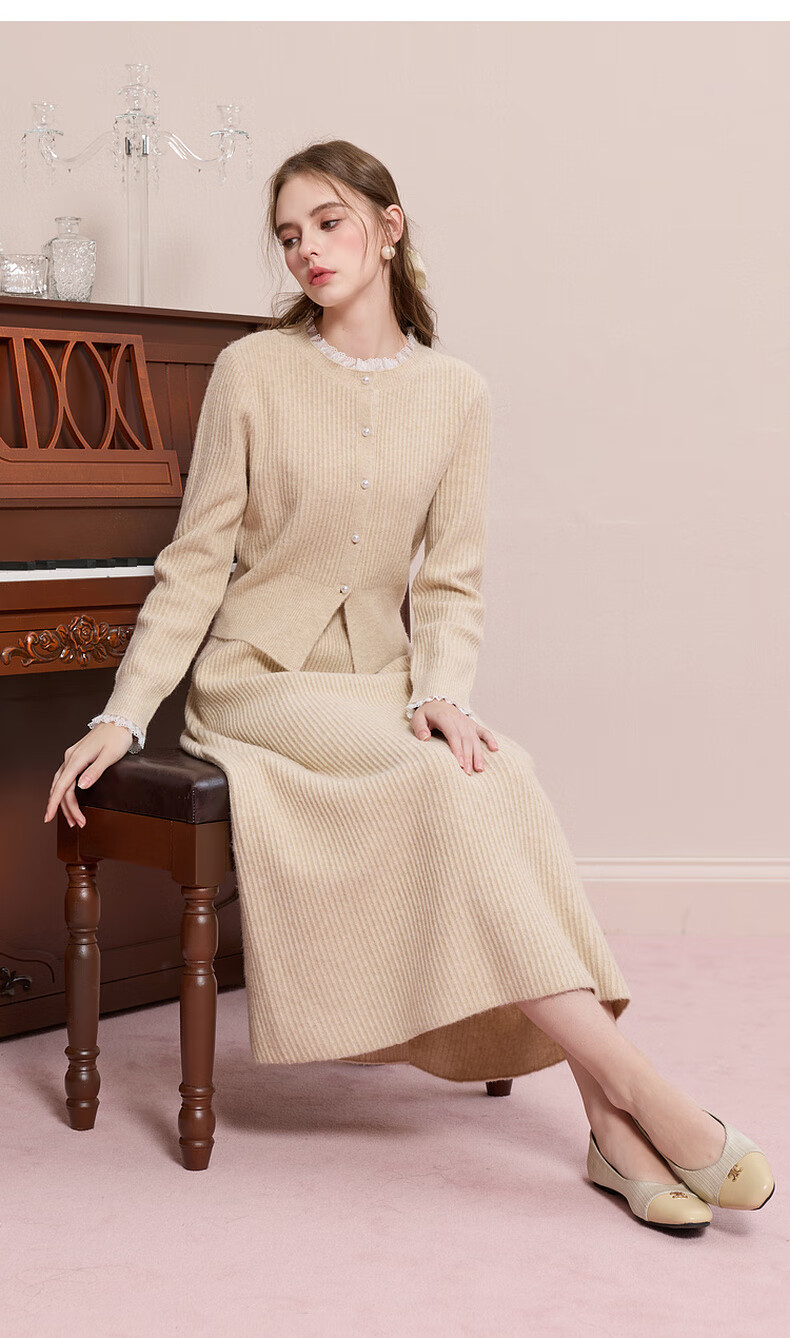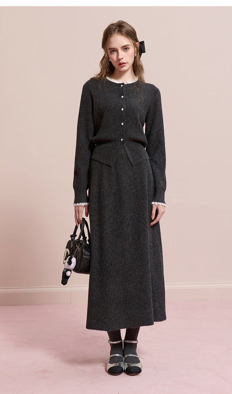 Sancai 2025 new winter knitted suit lace splicing wool sweater skirt two-piece set M