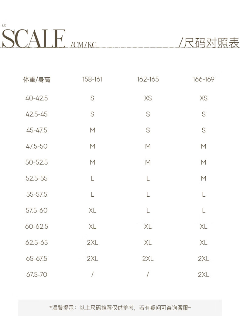 China (cm) 160-165/84-86 165-170 / 88-90 167-172 / 92-96 168-173 / 98-102 170-176 / 106-110