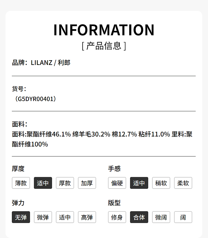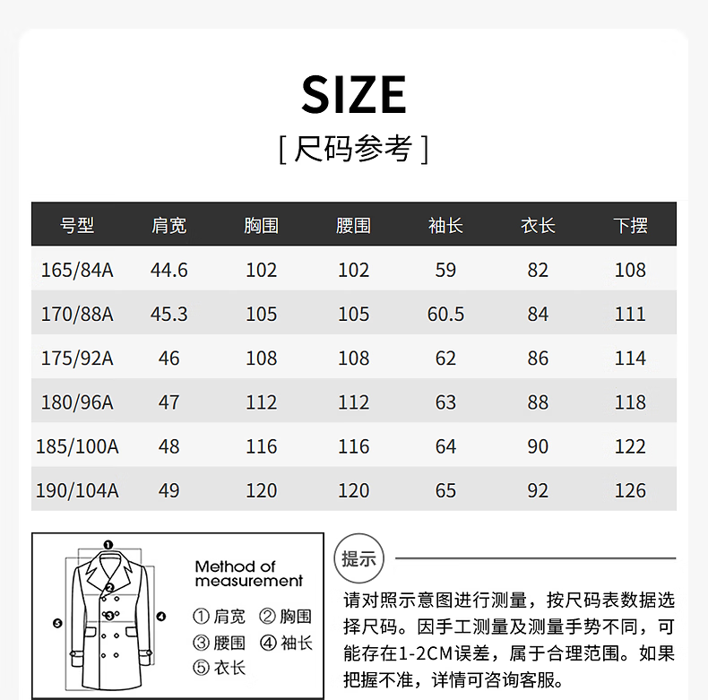 China (cm) 160-165/84-86 165-170 / 88-90 167-172 / 92-96 168-173 / 98-102 170-176 / 106-110