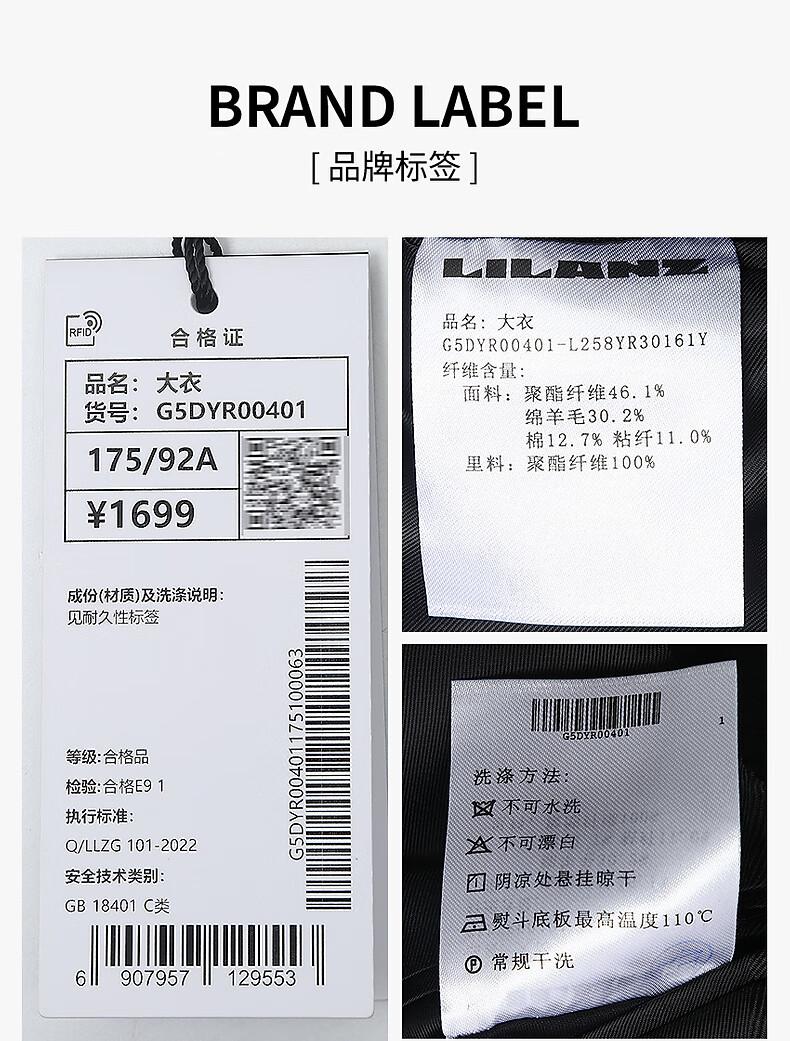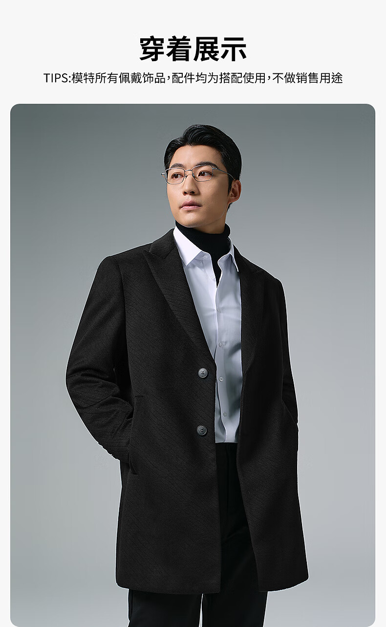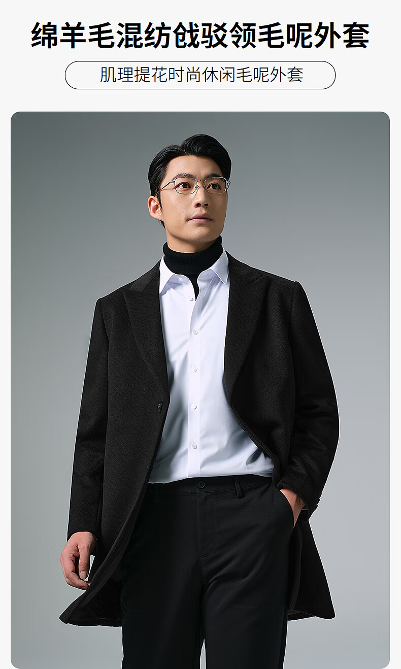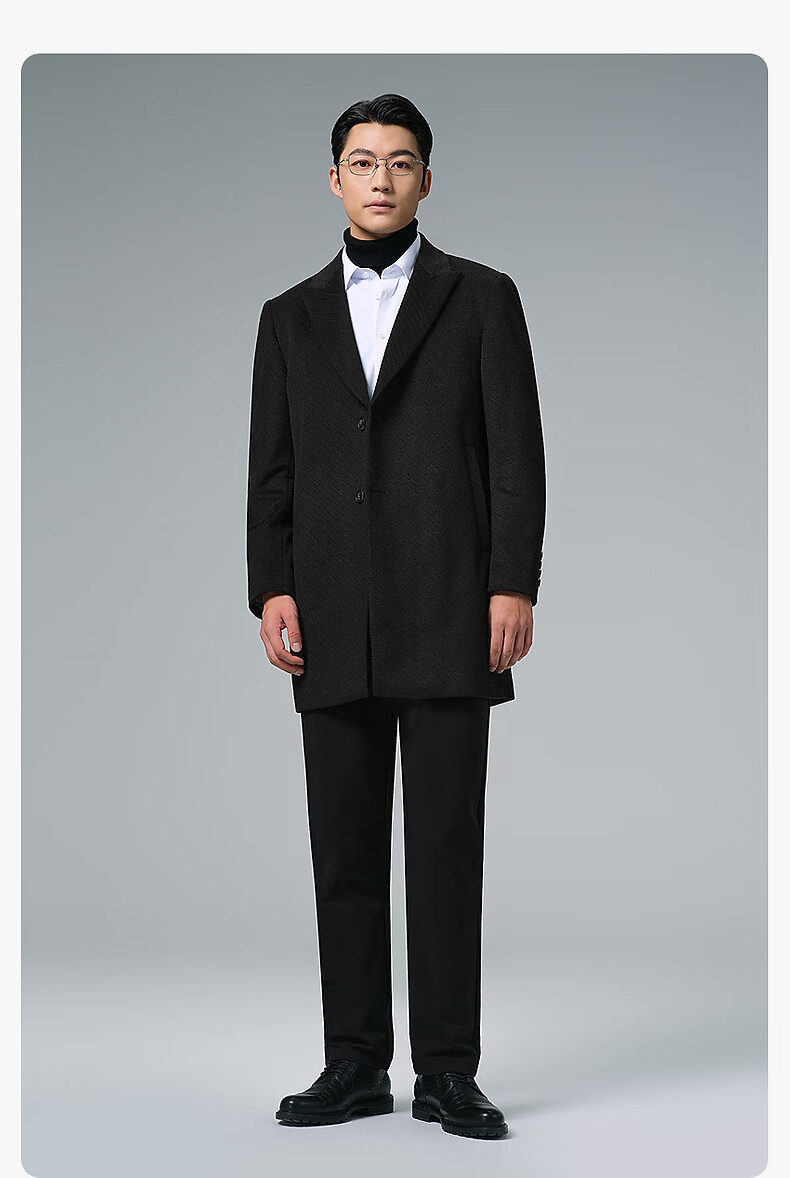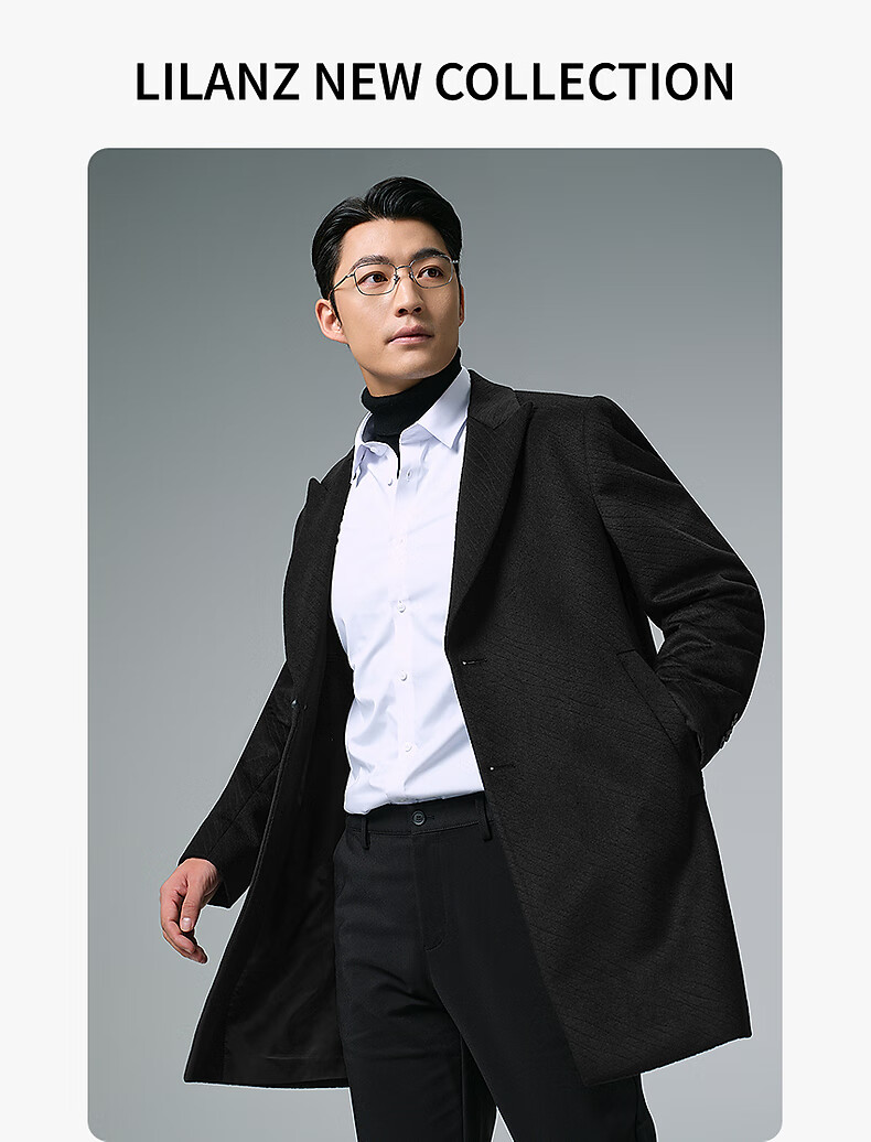 Lilang texture jacquard woolen coat men's mid-length winter woolen coat business men's wool coat