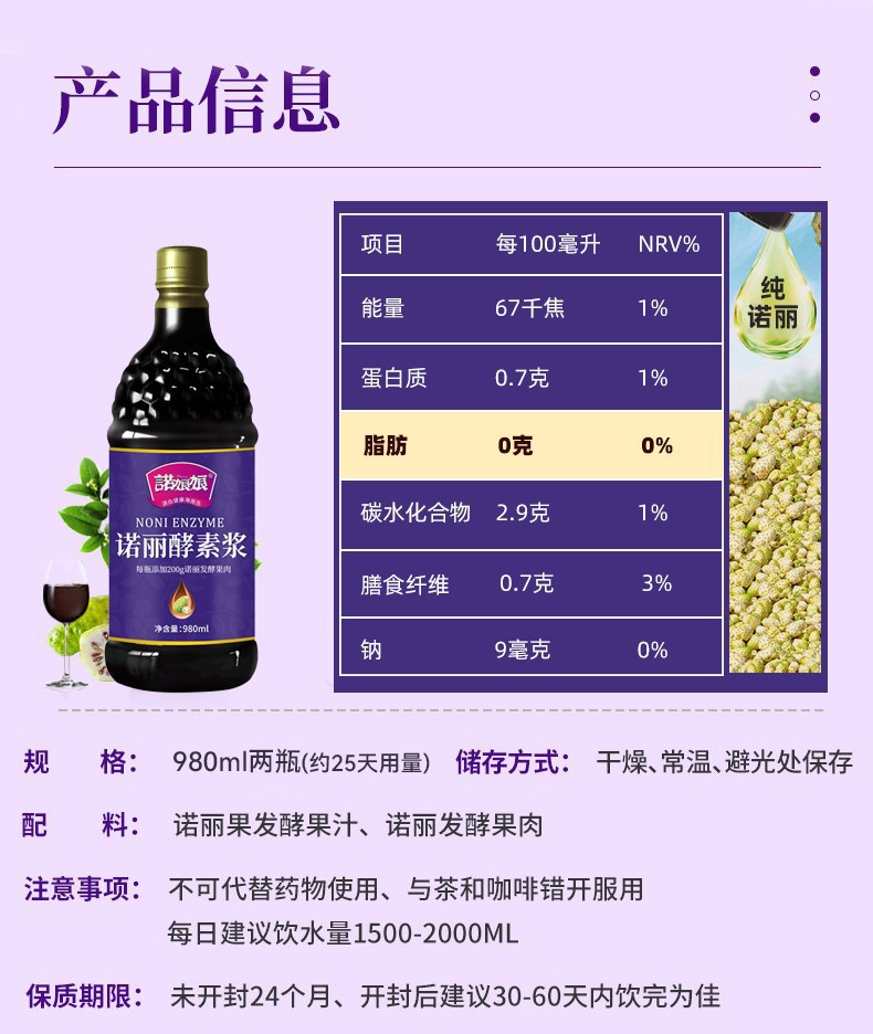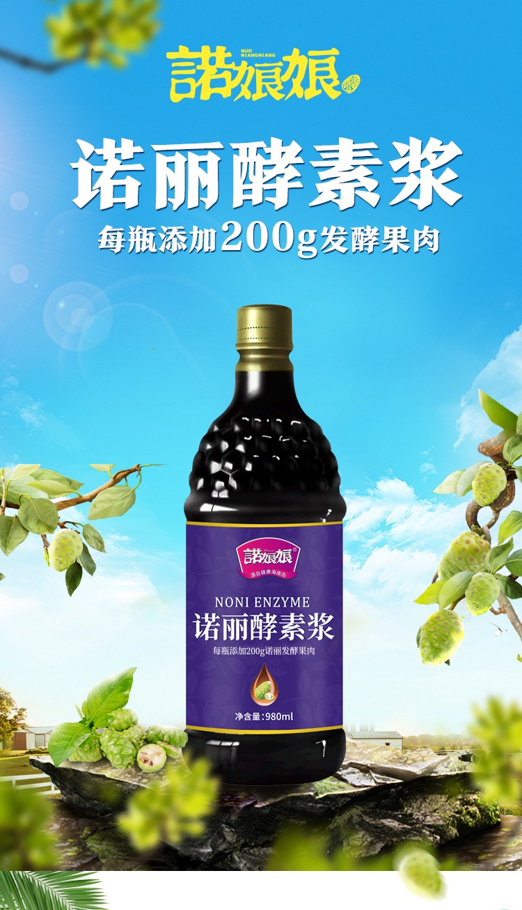 Noniangniang 2 bottles of three-year pure Noni fruit enzyme puree 980ML Hainan Noni juice noni Noni fruit nutrition