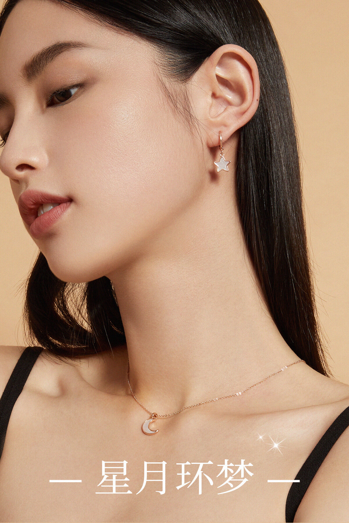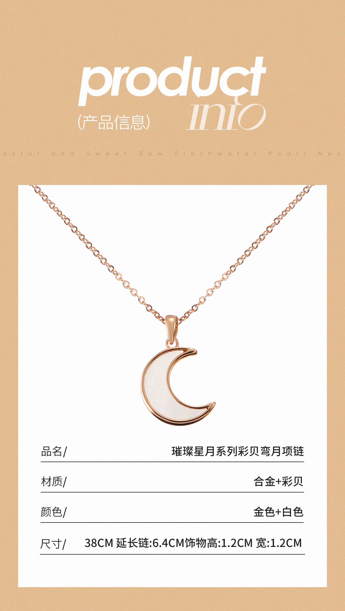 AJIDOU Ajidou Necklace Birthday Gift for Women Caibei Crescent Simple Personalized Clavicle Chain for Girlfriend and Wife Gold + White 38cm