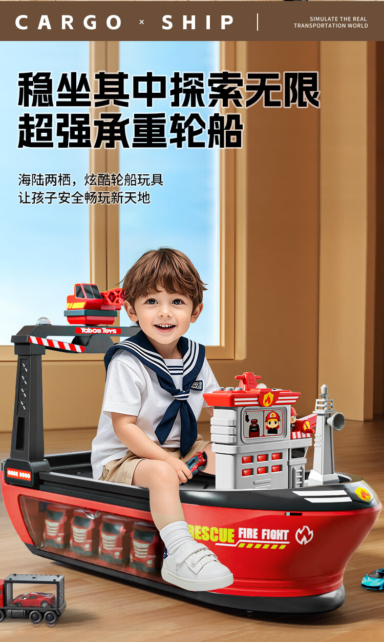 Ozhijia children's toys 3-6 year old boy New Year's birthday gift large toy wheel boat car fire truck gift box