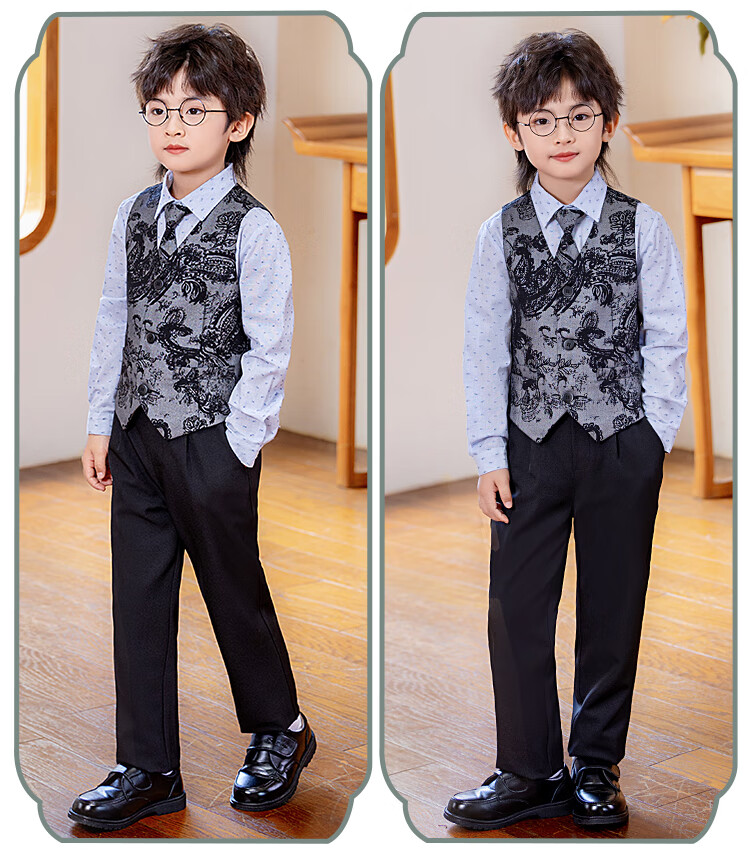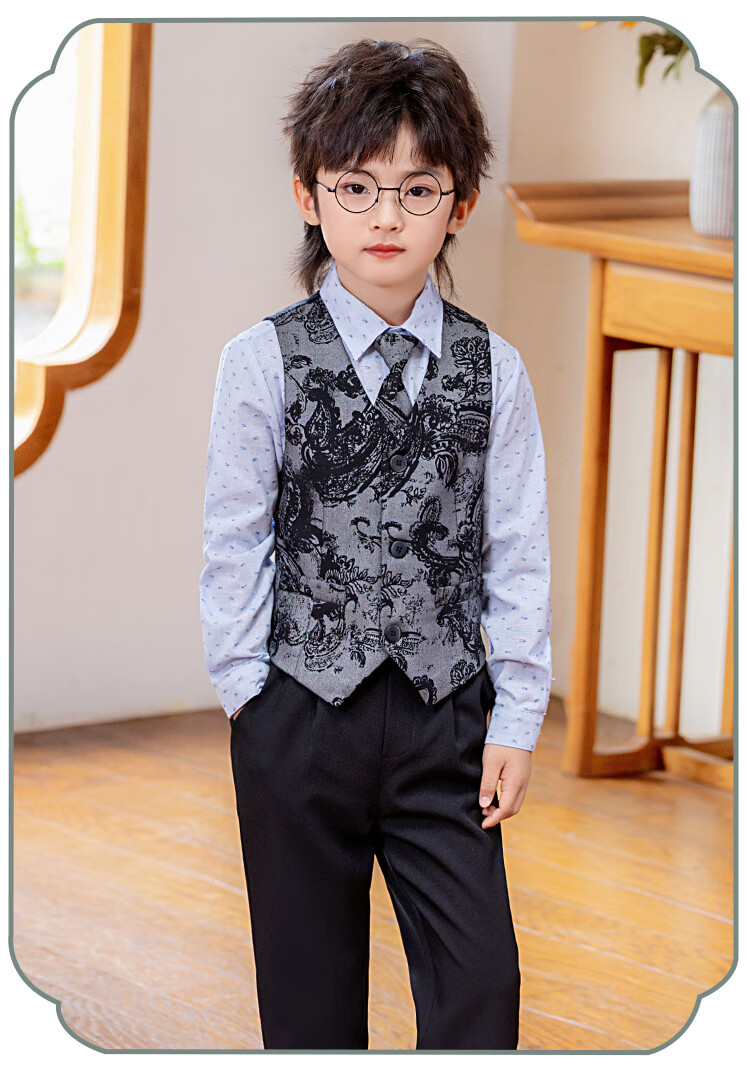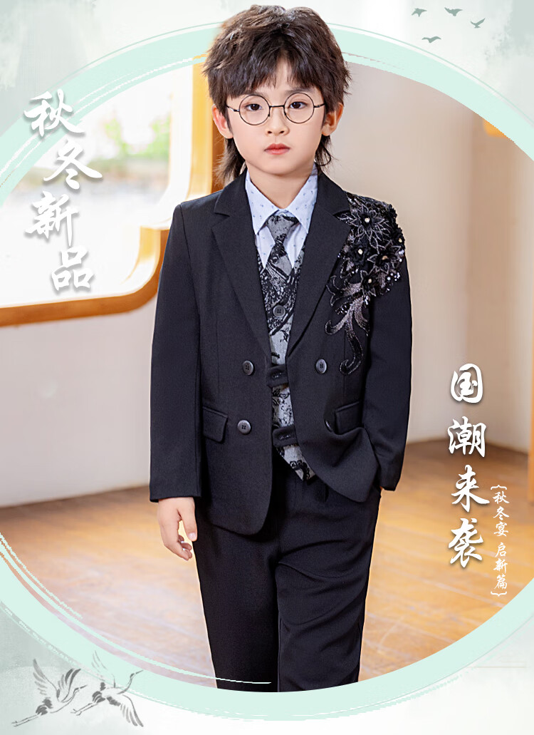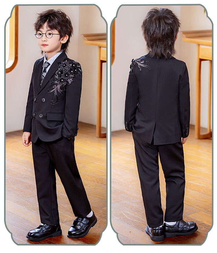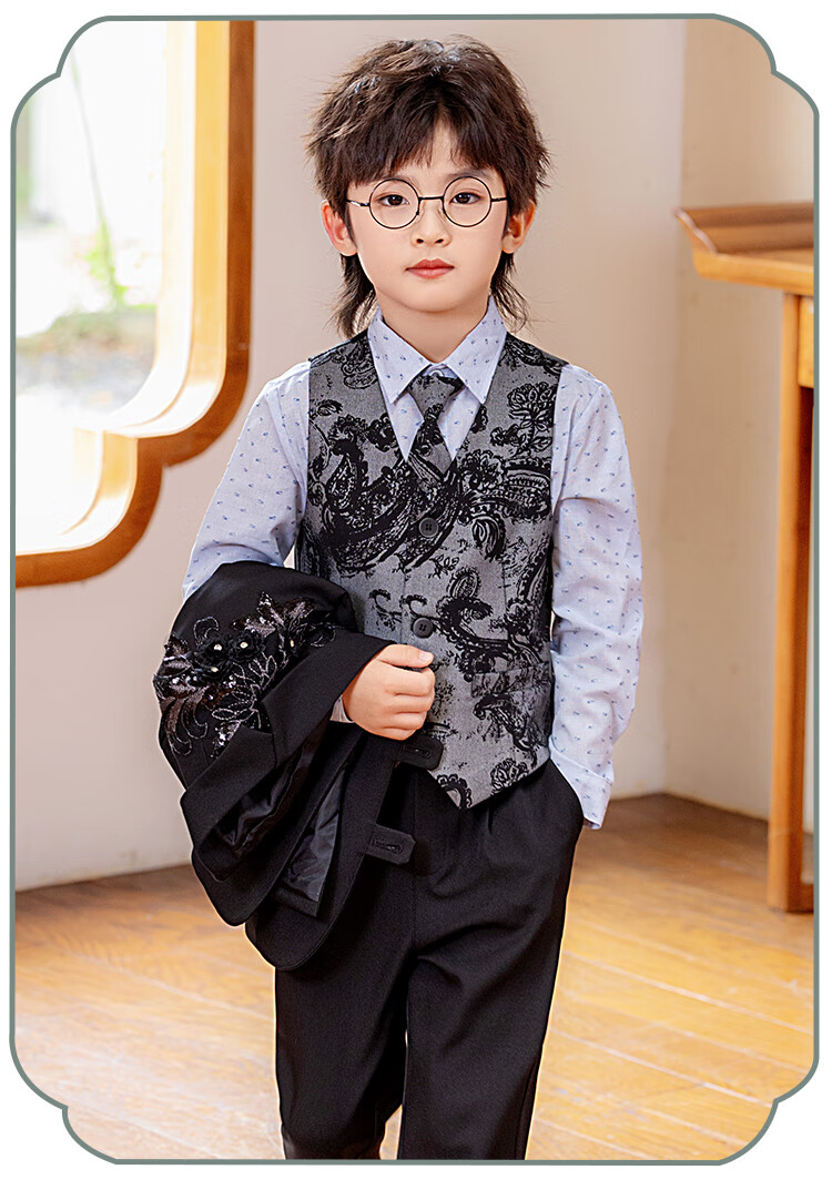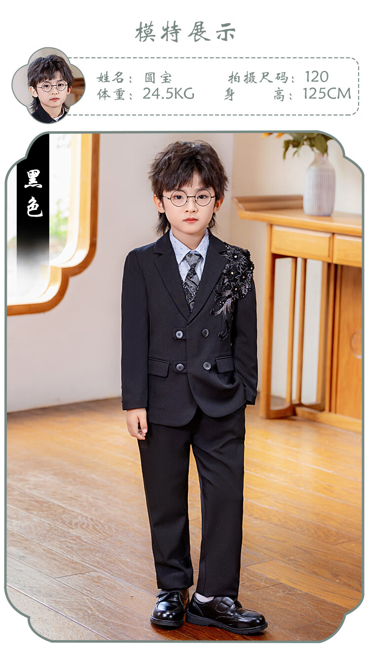 Carrot beibei children's dress boy host piano stage performance dress flower girl birthday suit black three-piece suit 150