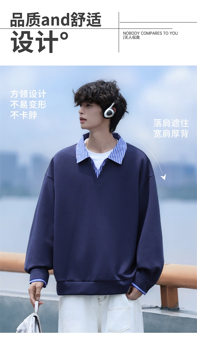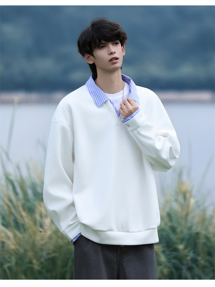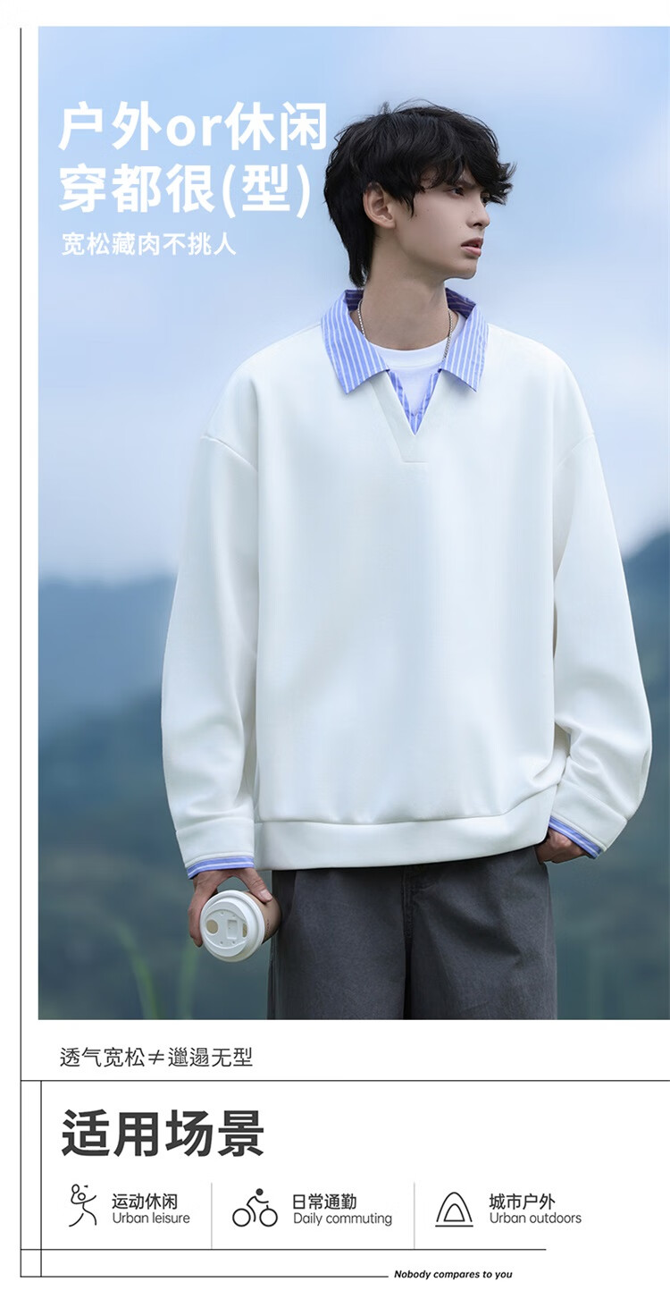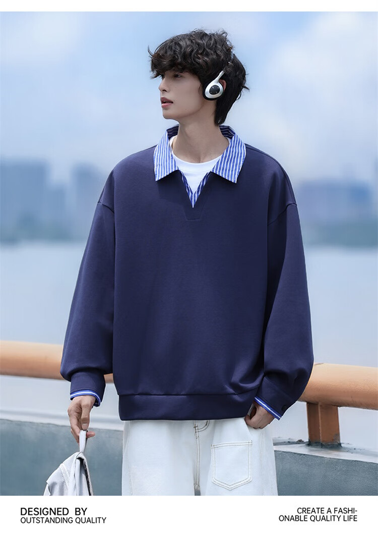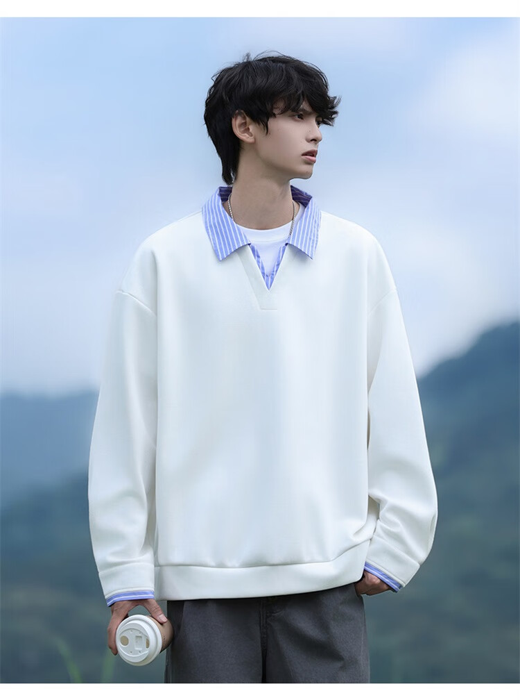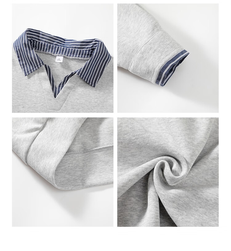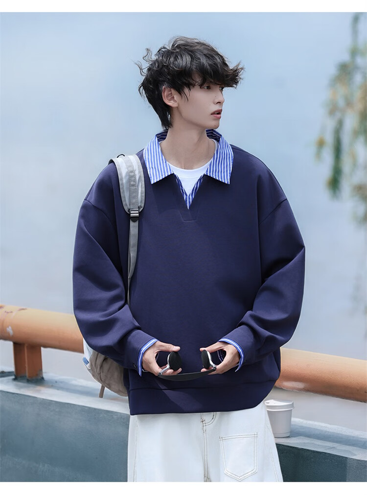 Homlean fake two-piece lapel sweatshirt autumn men's American trend versatile loose casual top HP02 hemp gray XL