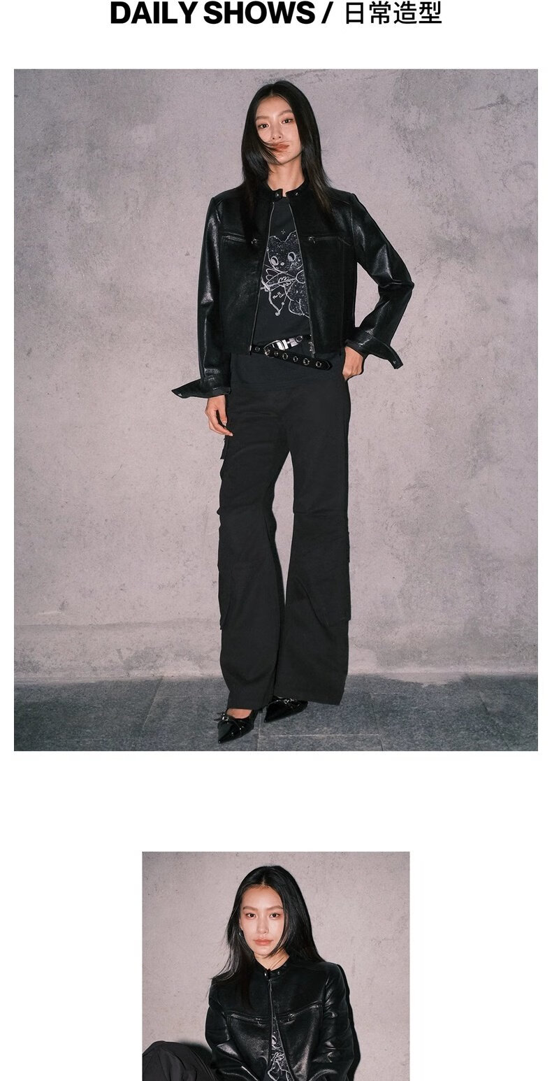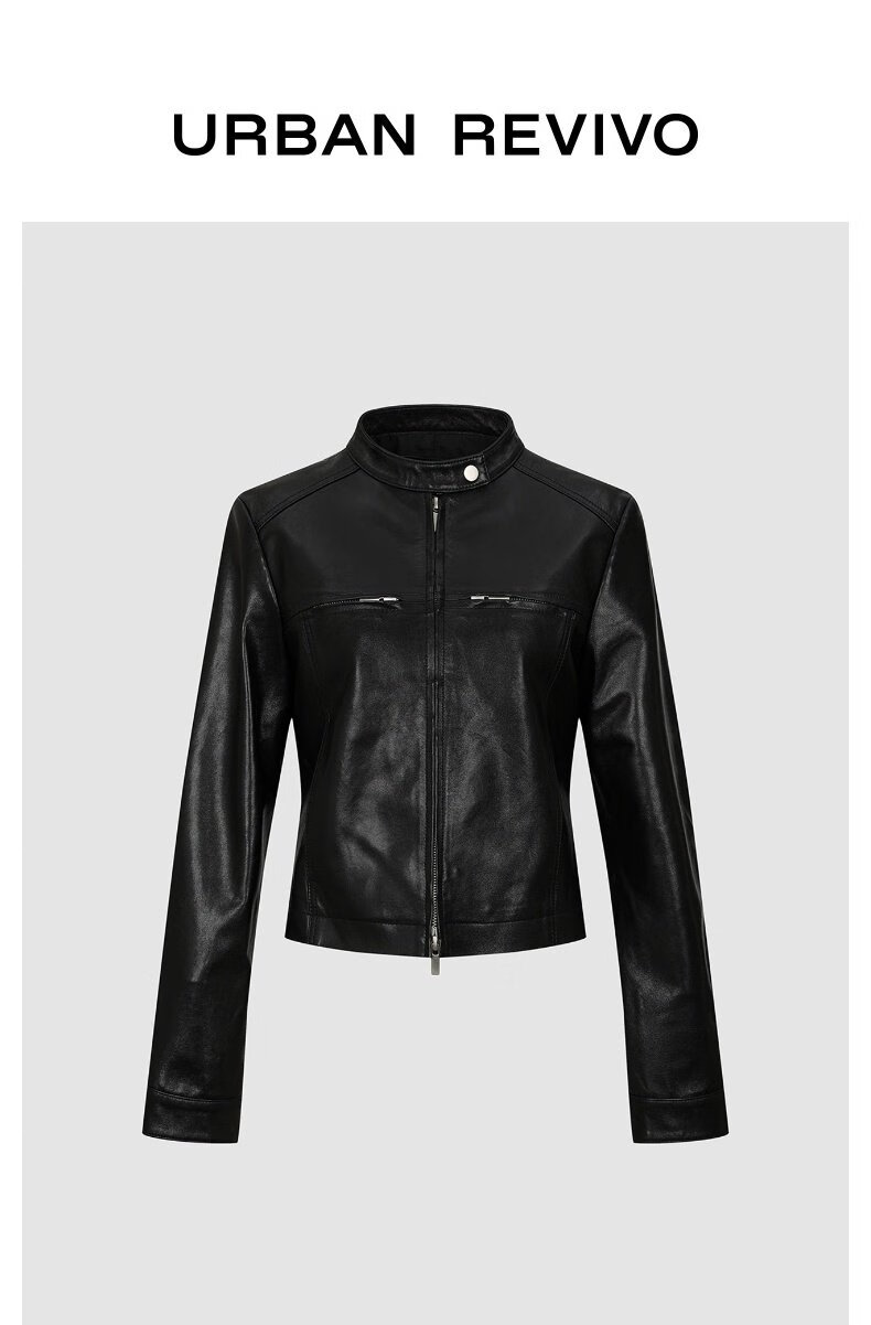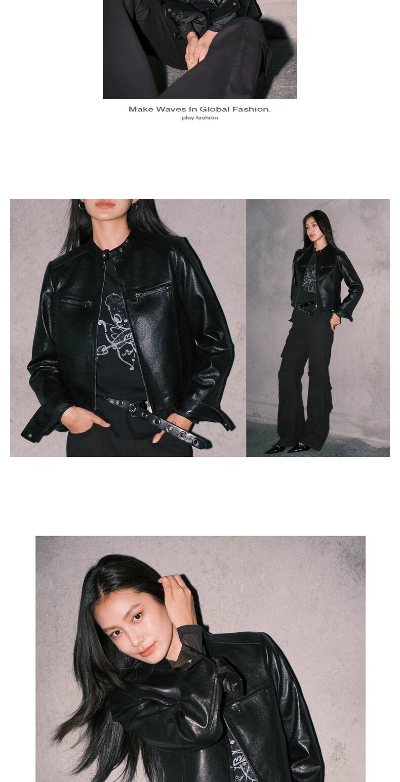 UR2025 new autumn style women's trendy motorcycle stand-up collar zipper short leather jacket UWJ150061