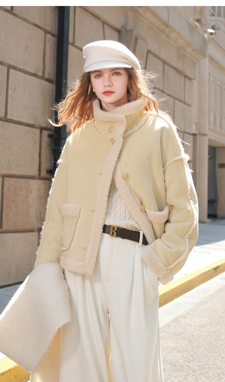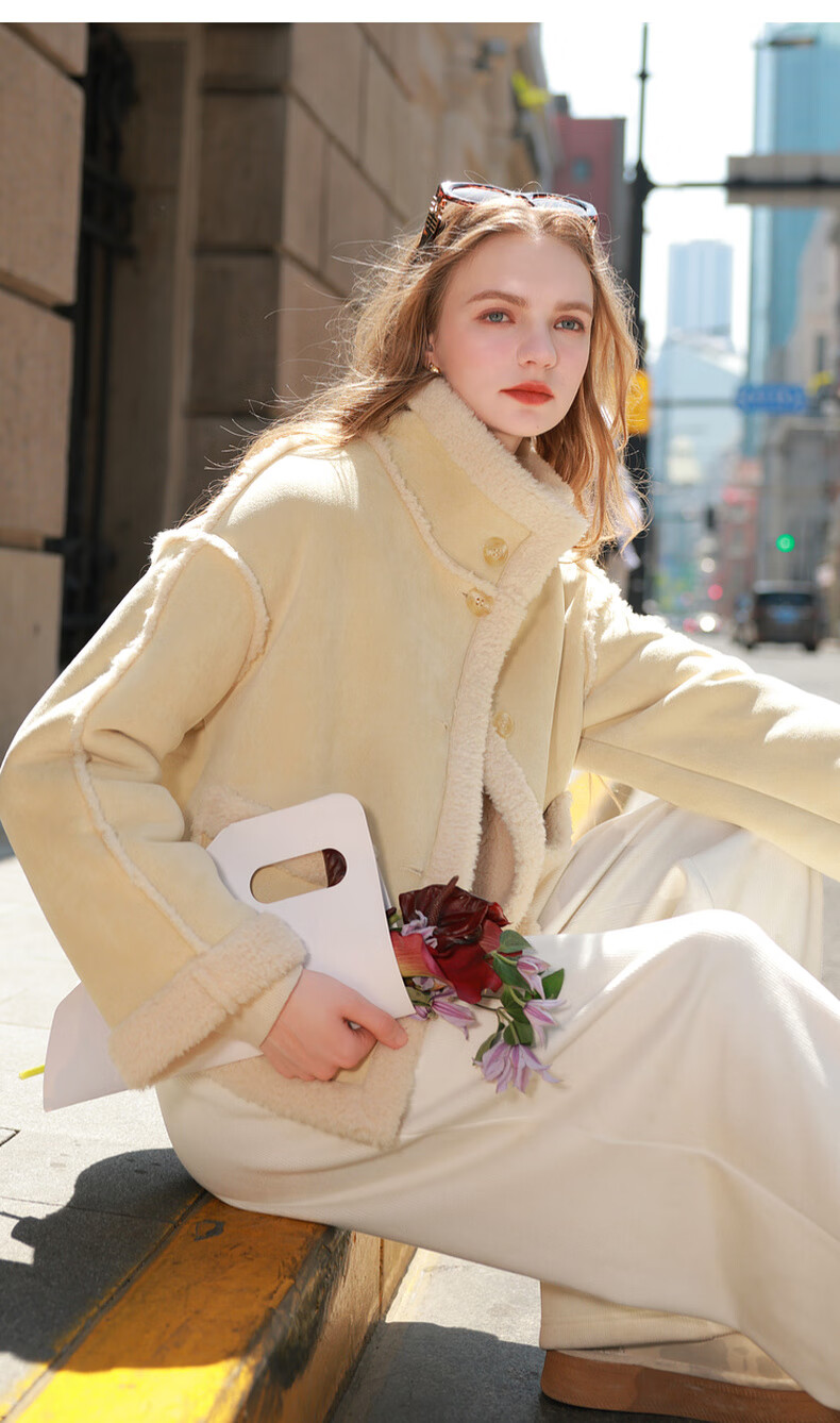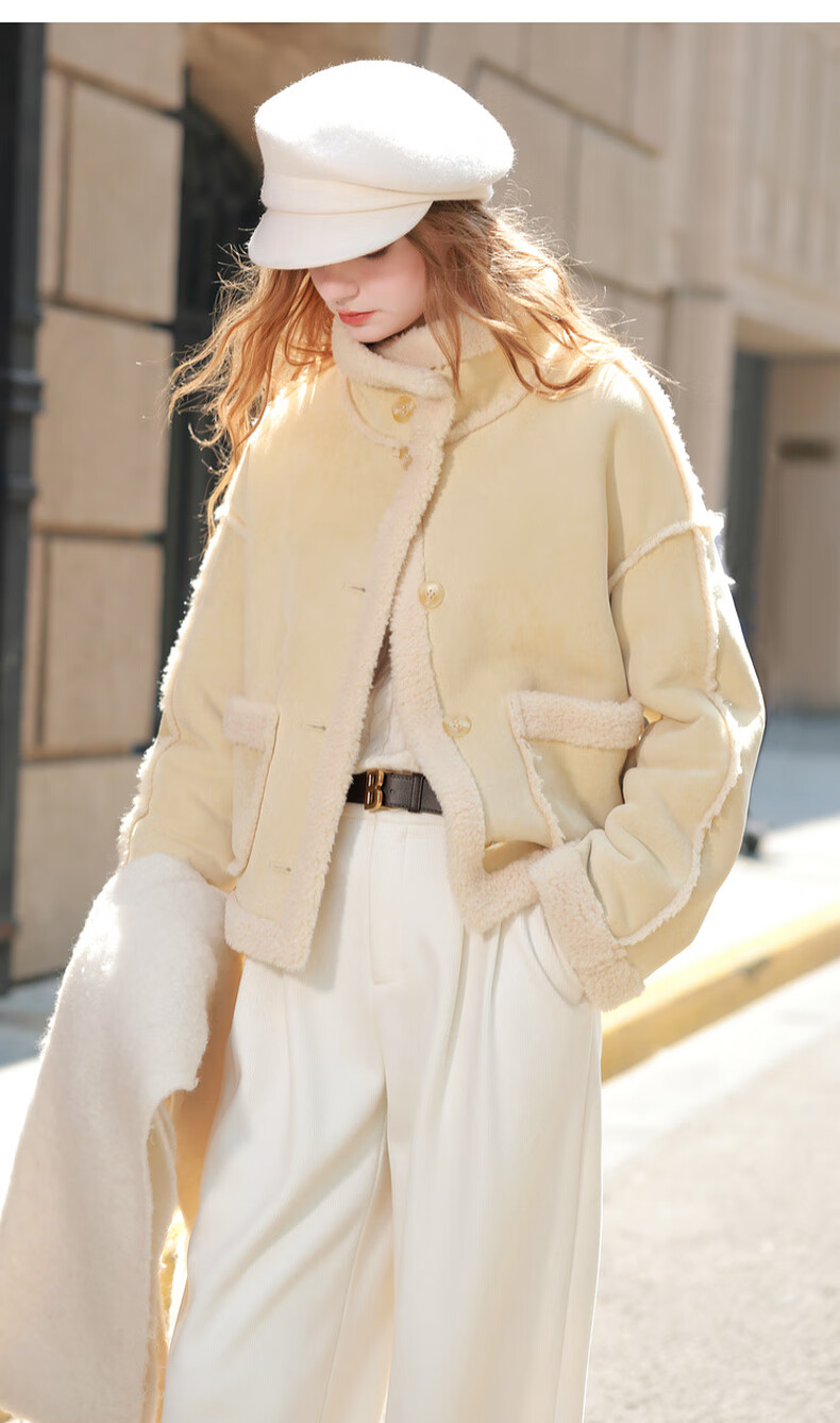 Sancai 2025 winter new style imitation suede environmentally friendly fur coat stand collar loose casual warm M