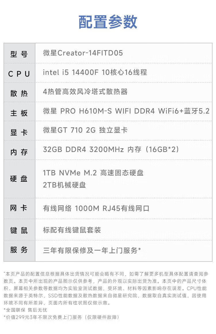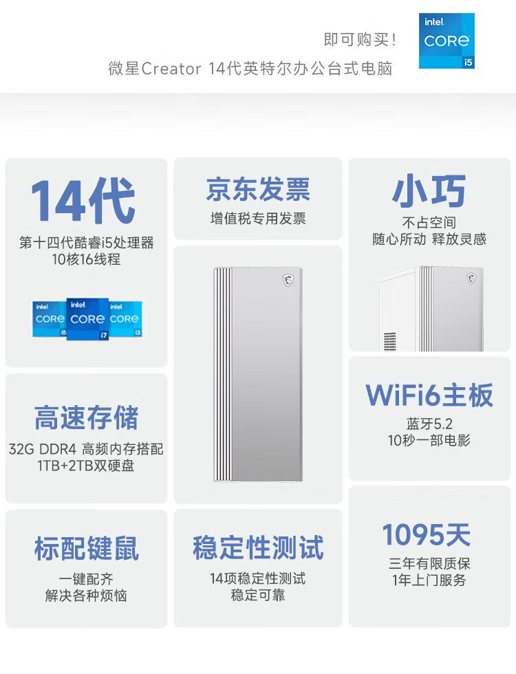 MSI Creator i5 14400F/32G/1TB+2T/2G independent graphics, national subsidy 20% designer complete set of commercial office desktop computer host