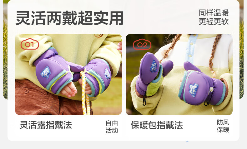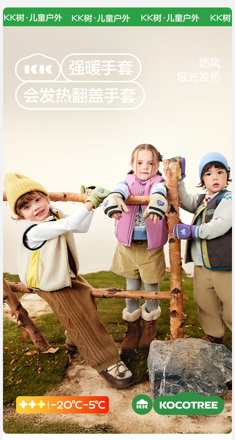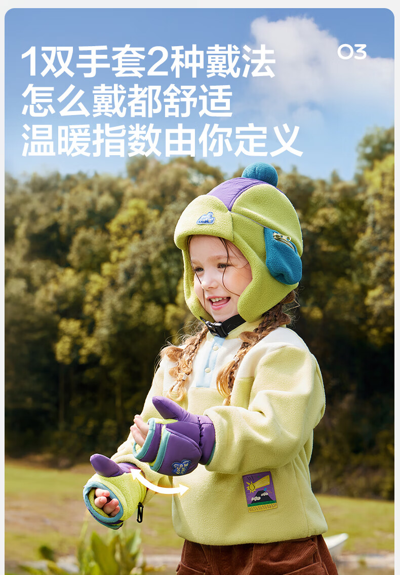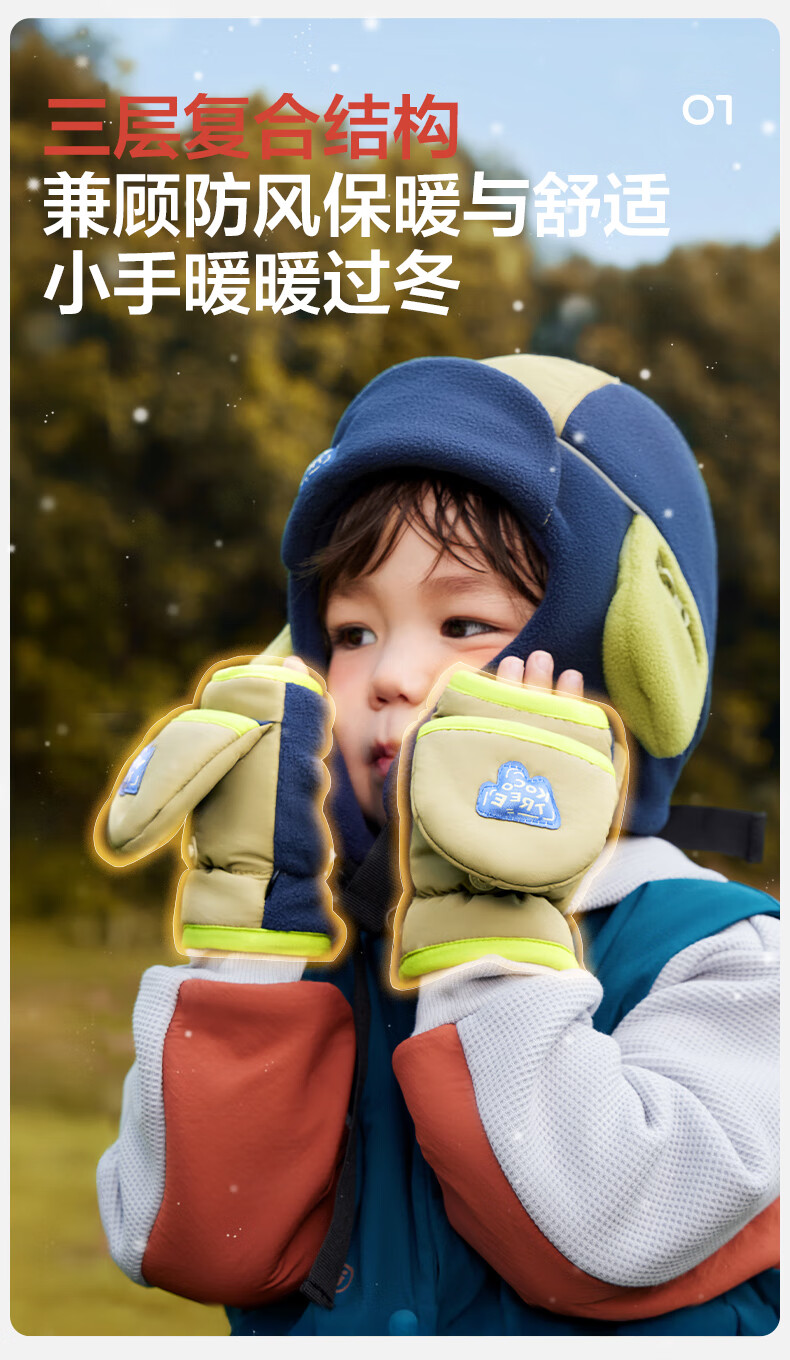 Kocotreekk tree children's gloves warm and windproof gloves for boys and girls thickened baby flip cover dual use
