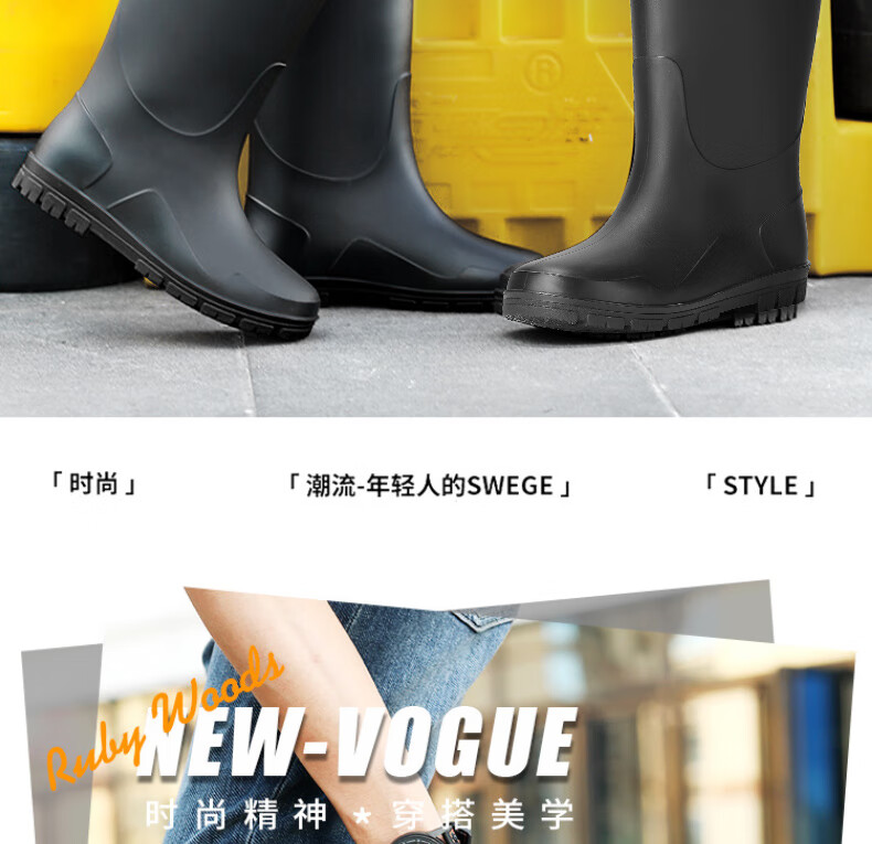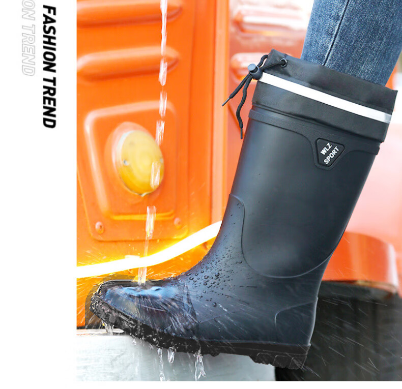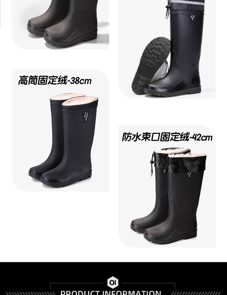FOOTOPPO high-top rain boots for men's takeaway riders, saliva-binding shoes, men's velvet water boots, warm rain boots, non-slip boots, waterproof shoes