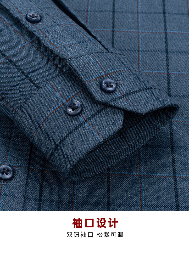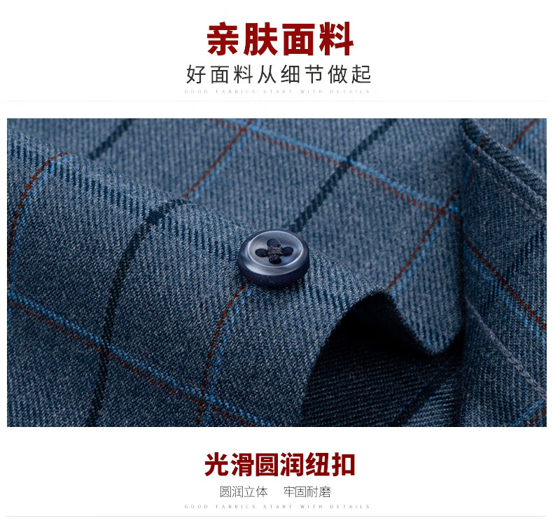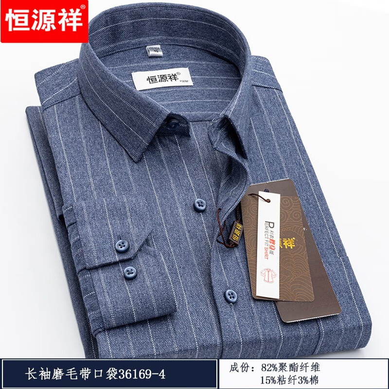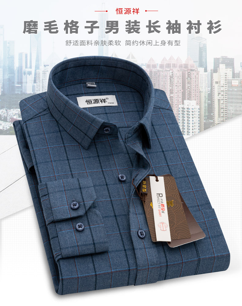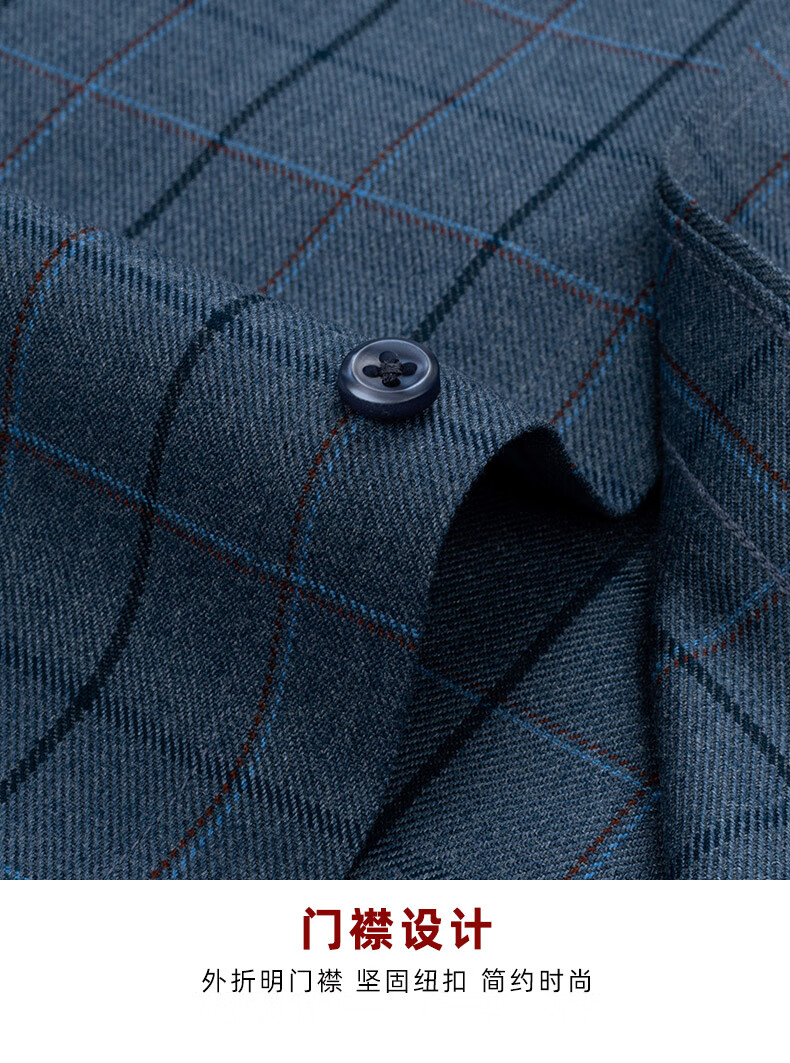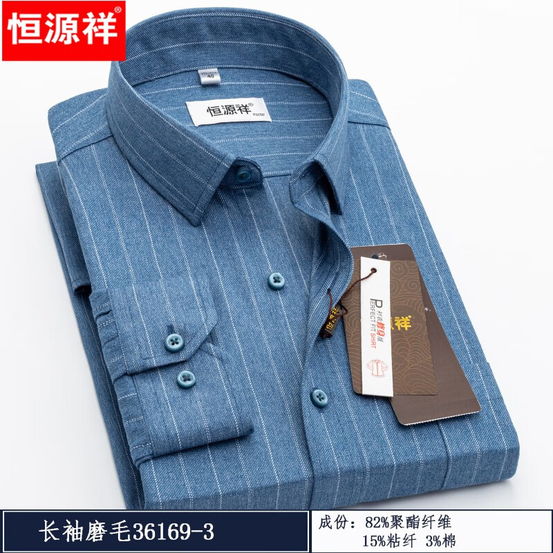 Hengyuanxiang no-iron long-sleeved shirt for men middle-aged casual square plaid men's slim-fit brushed shirt autumn style long-sleeved H4532-1 blue background with red stripes 38