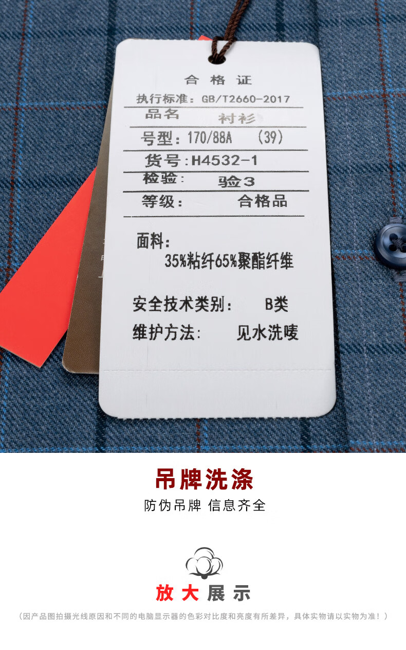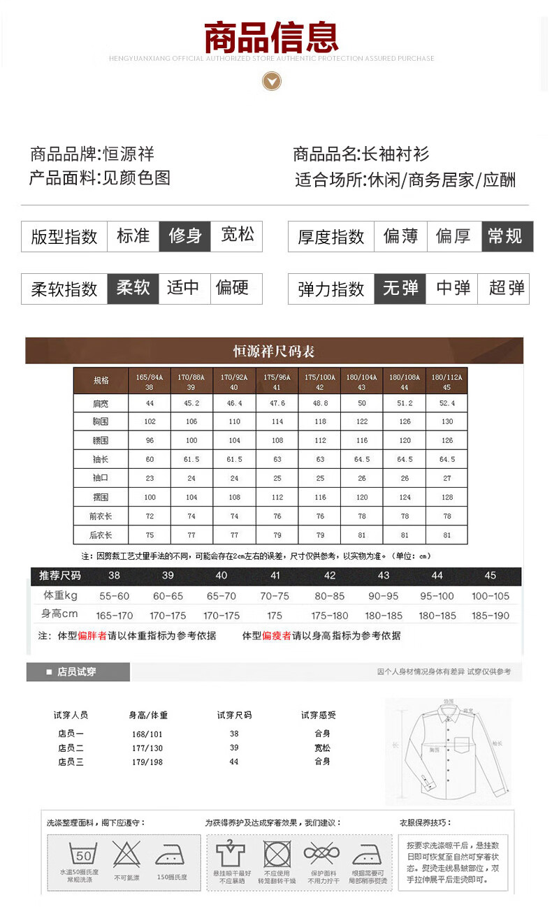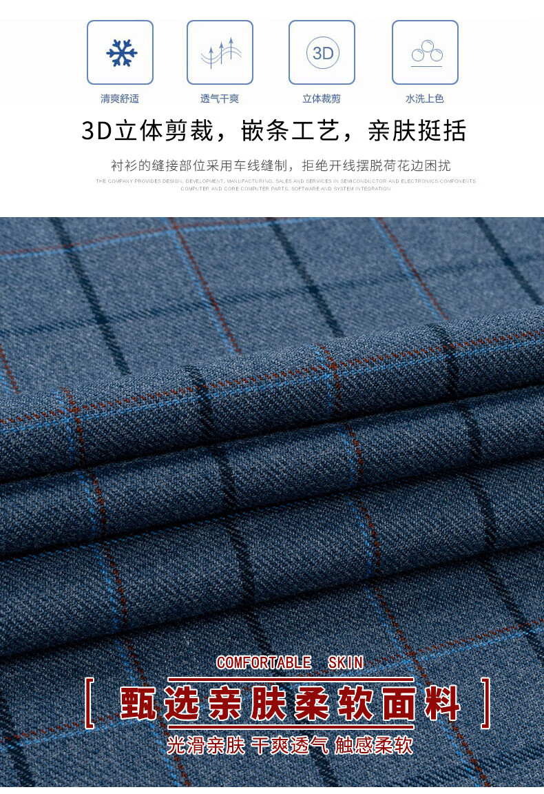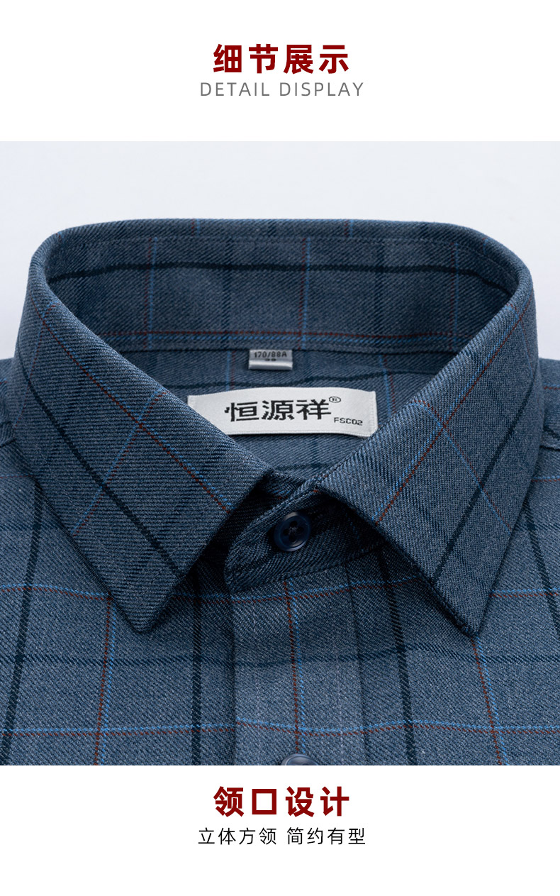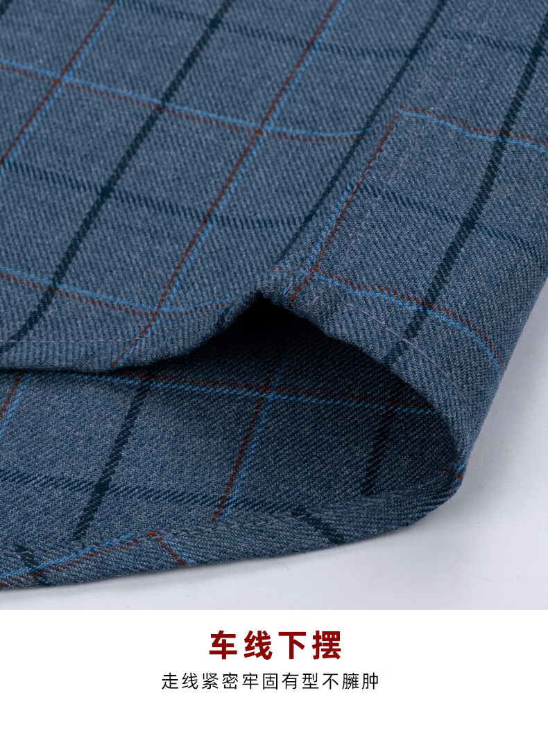 Hengyuanxiang no-iron long-sleeved shirt for men middle-aged casual square plaid men's slim-fit brushed shirt autumn style long-sleeved H4532-1 blue background with red stripes 38