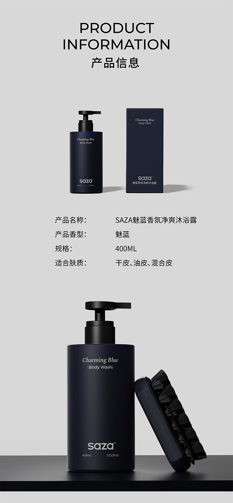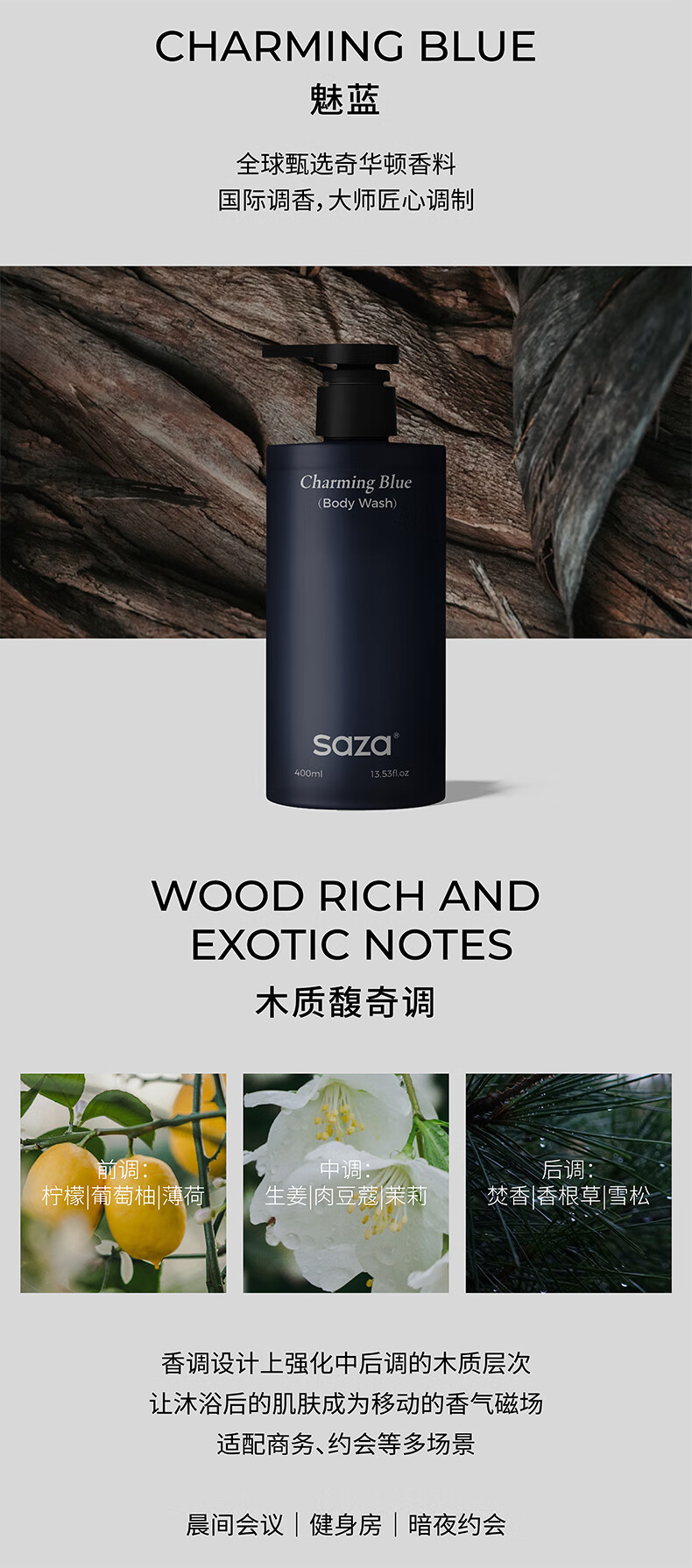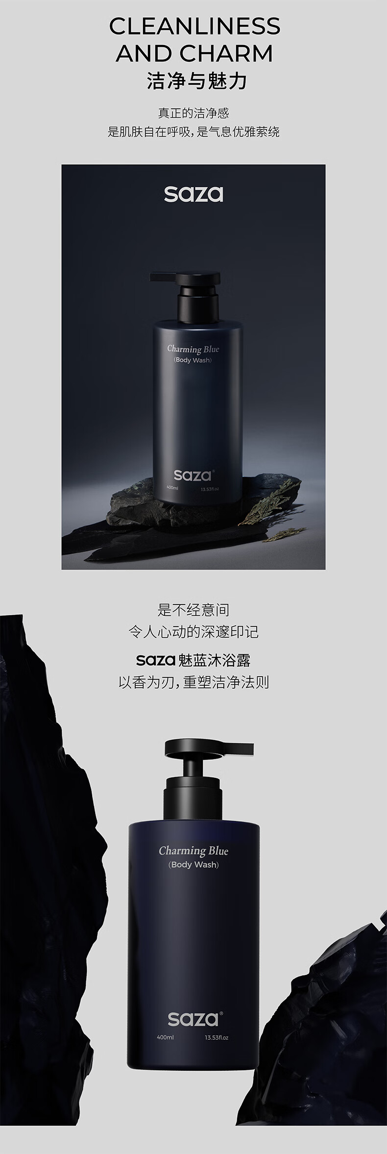 SAZA Charming Blue Shower Gel Men's Long-Lasting Fragrance 72 Hours Body Love Blue Perfume (Official Genuine) 400ml