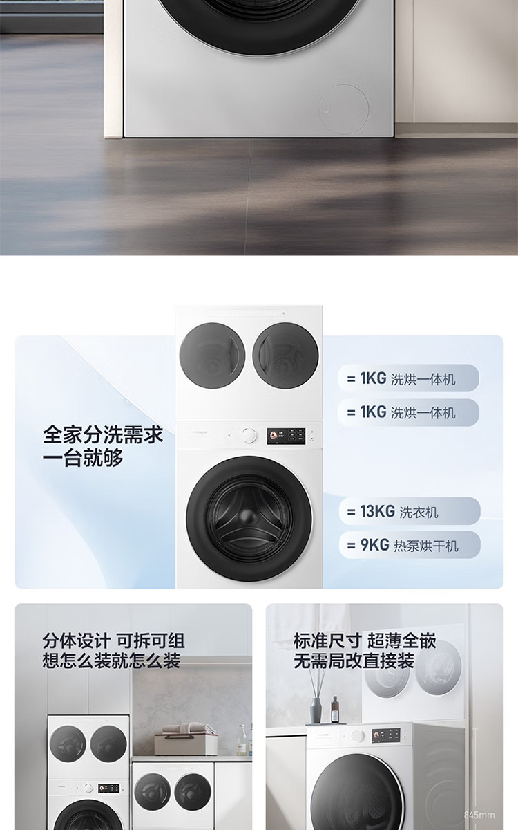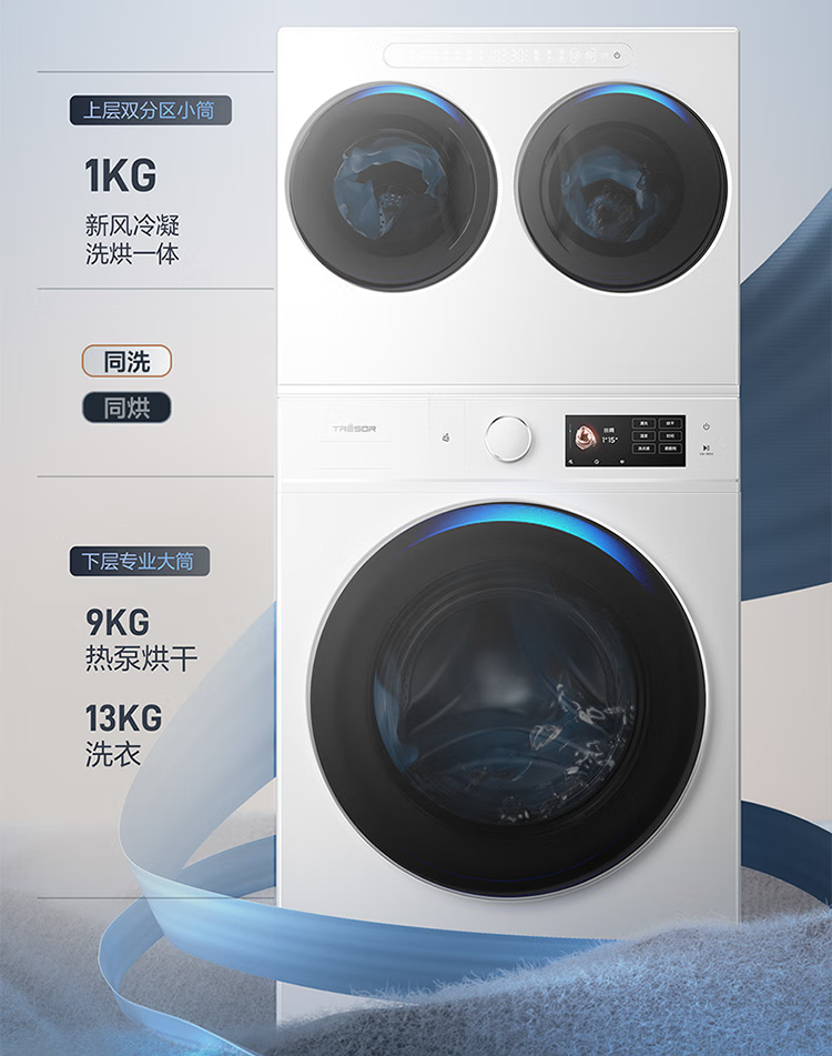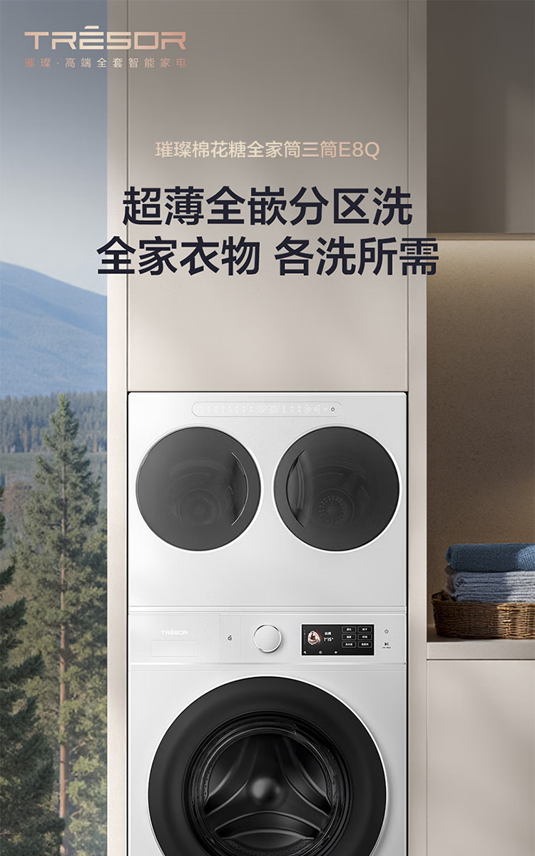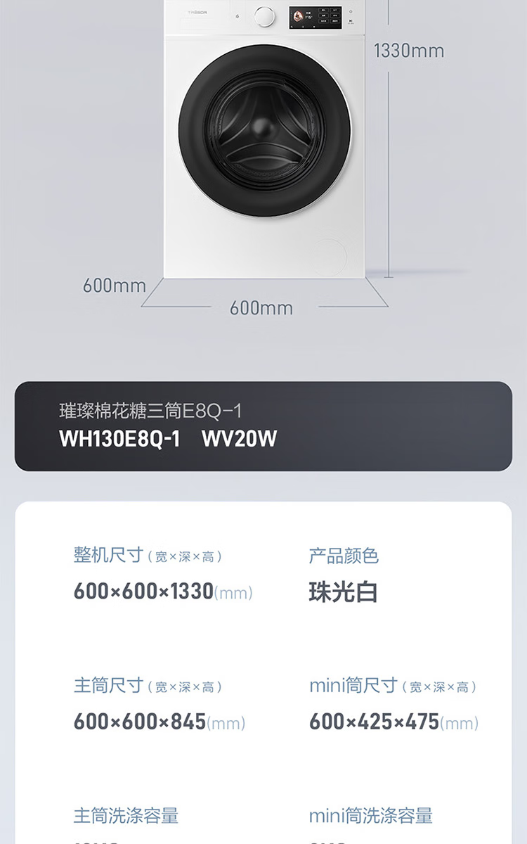Hisense Bright Marshmallow Three-tube E8Q-1 Family-Turn Washing Machine 4-in-1 Heat Pump Washing and Drying Living Water Healthy Free Combination Lazy 0 Hand Wash WH130E8Q-1+WV20W