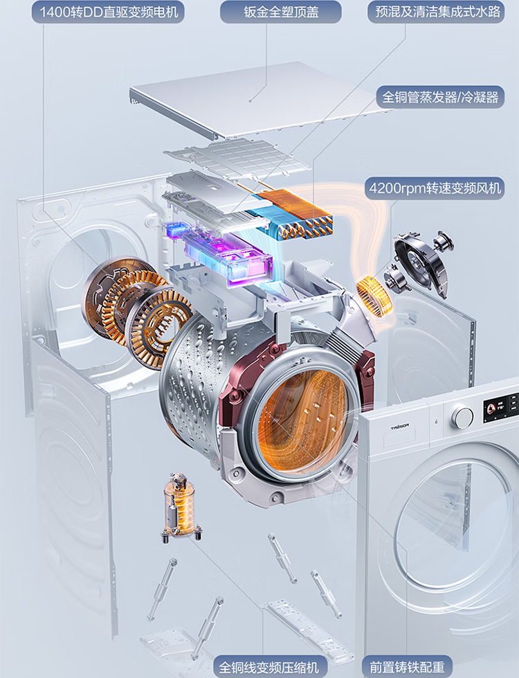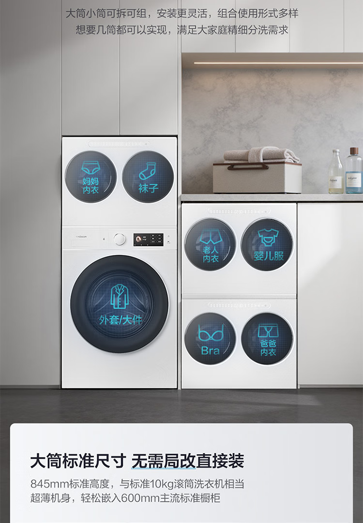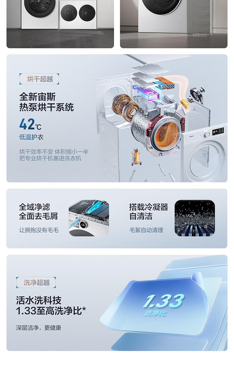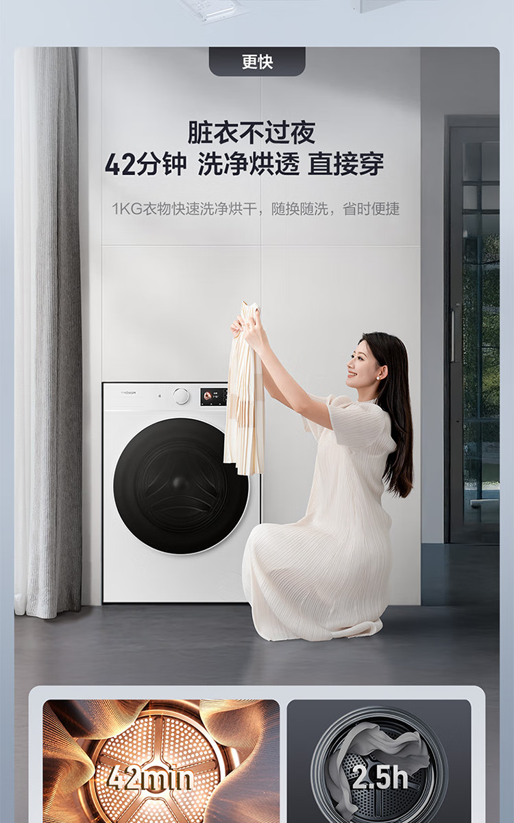 Hisense Bright Marshmallow Three-tube E8Q-1 Family-Turn Washing Machine 4-in-1 Heat Pump Washing and Drying Living Water Healthy Free Combination Lazy 0 Hand Wash WH130E8Q-1+WV20W