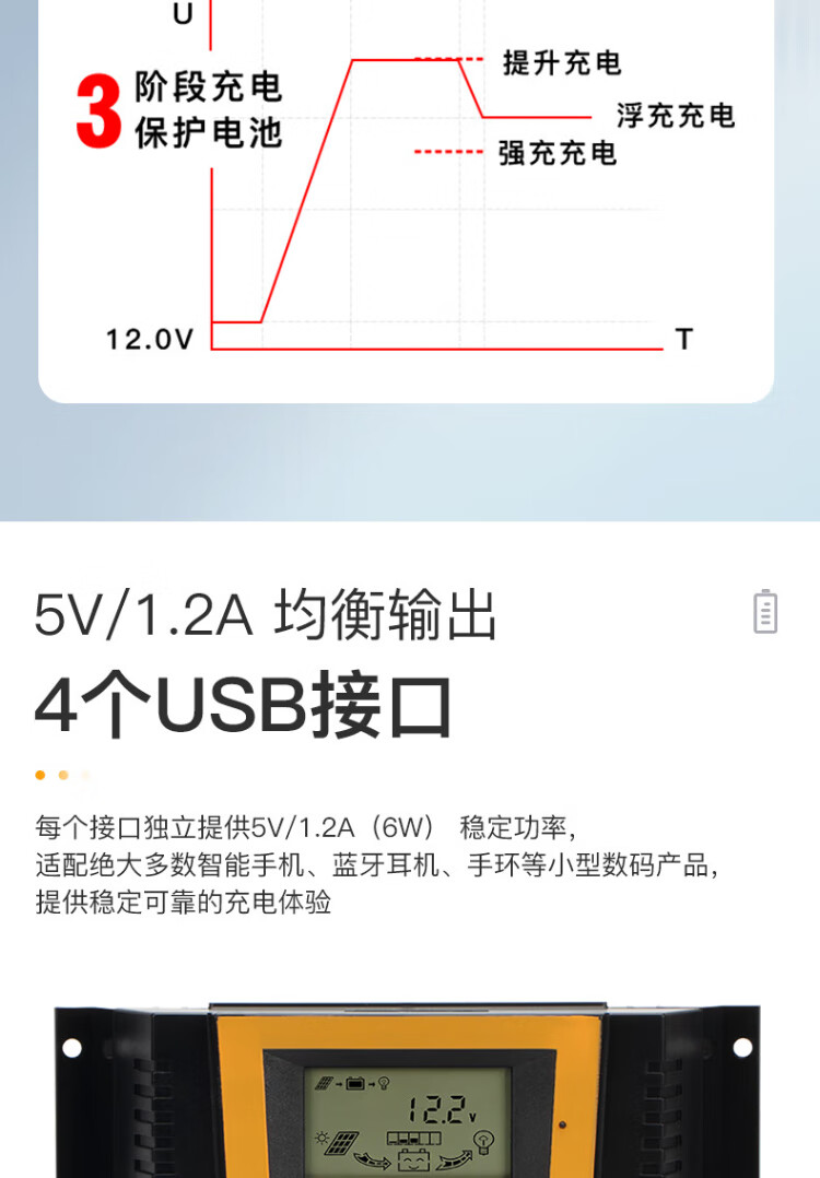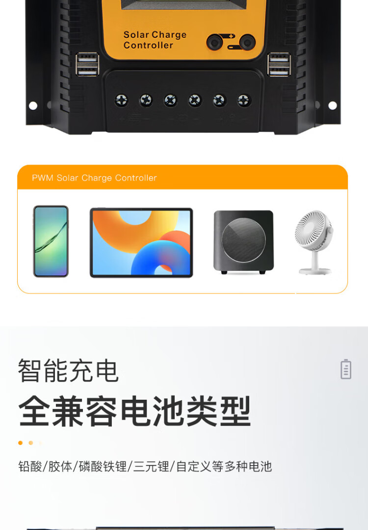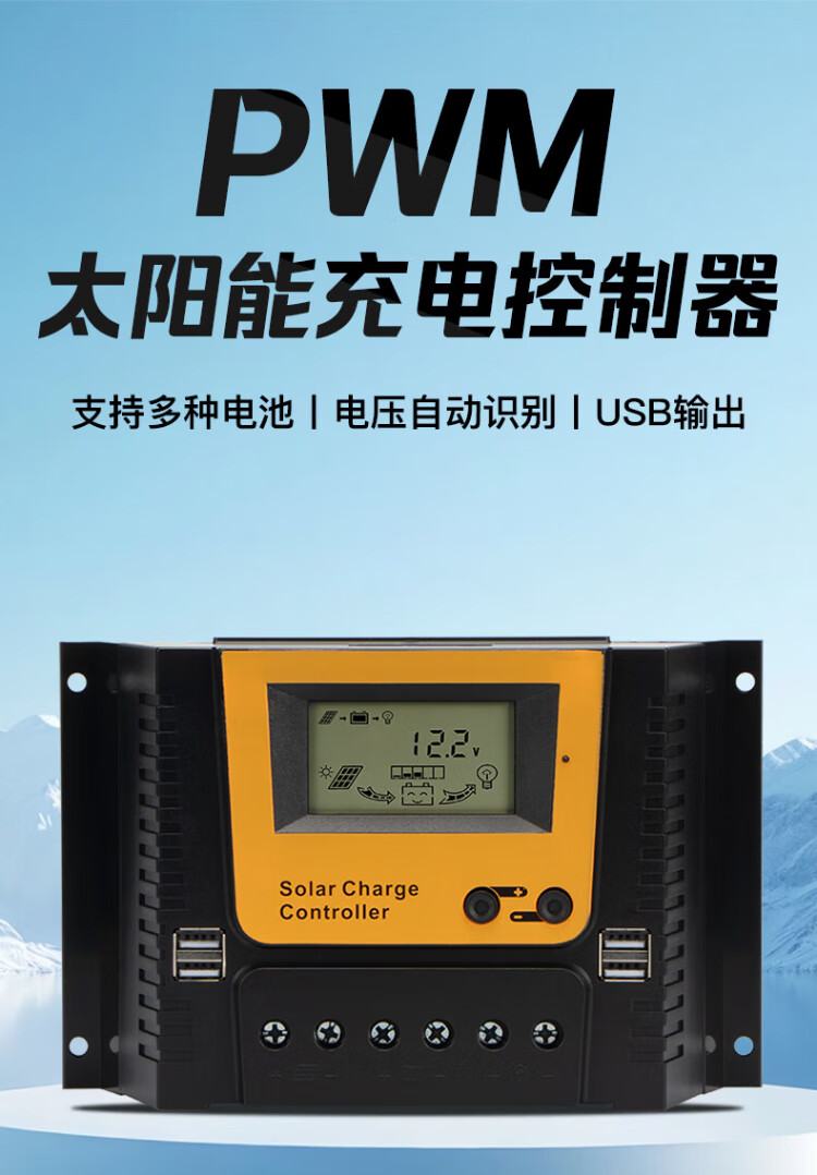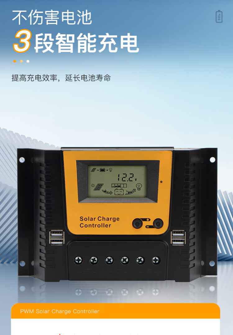 Jingbiao PWM solar photovoltaic panel charge controller fully automatic universal intelligent lead-acid colloidal lithium battery charger 12V24V10A 20A 12V/24V