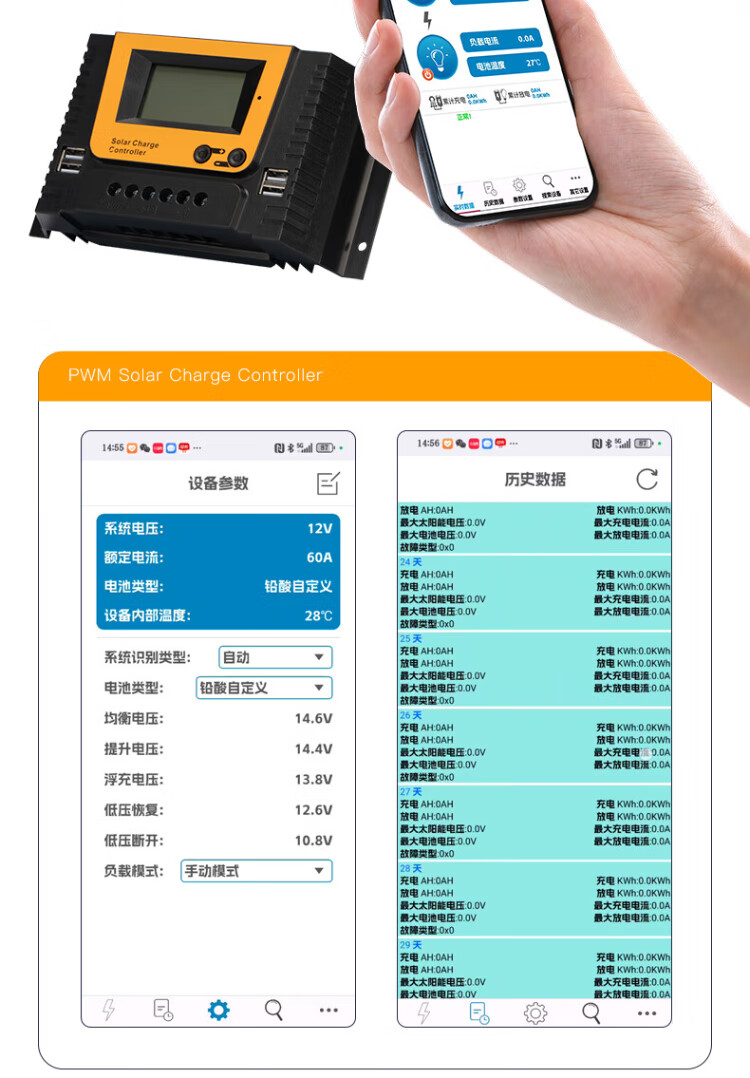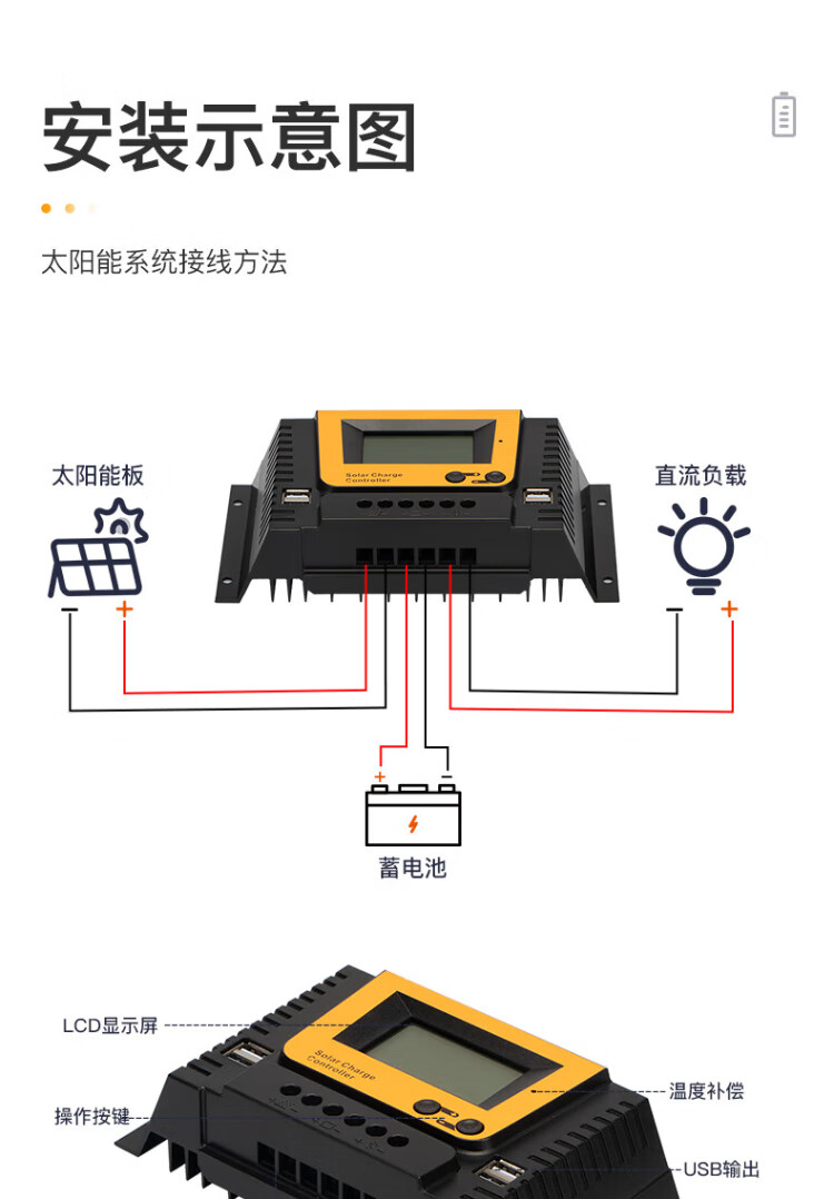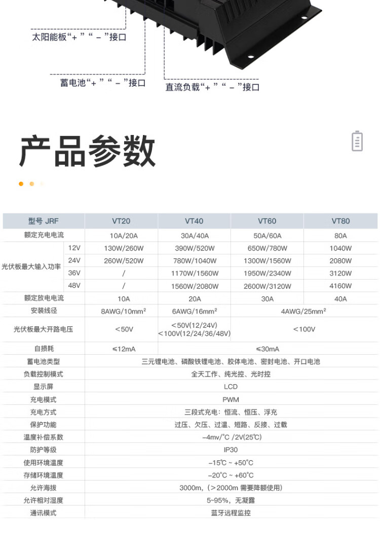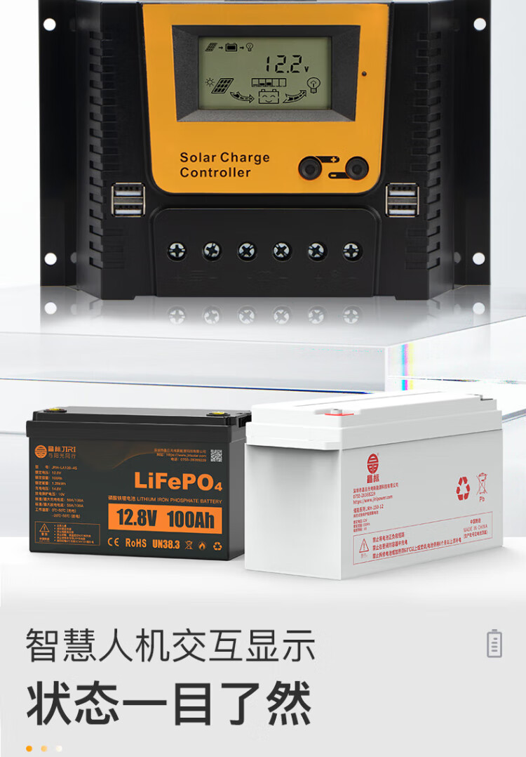 Jingbiao PWM solar photovoltaic panel charge controller fully automatic universal intelligent lead-acid colloidal lithium battery charger 12V24V10A 20A 12V/24V