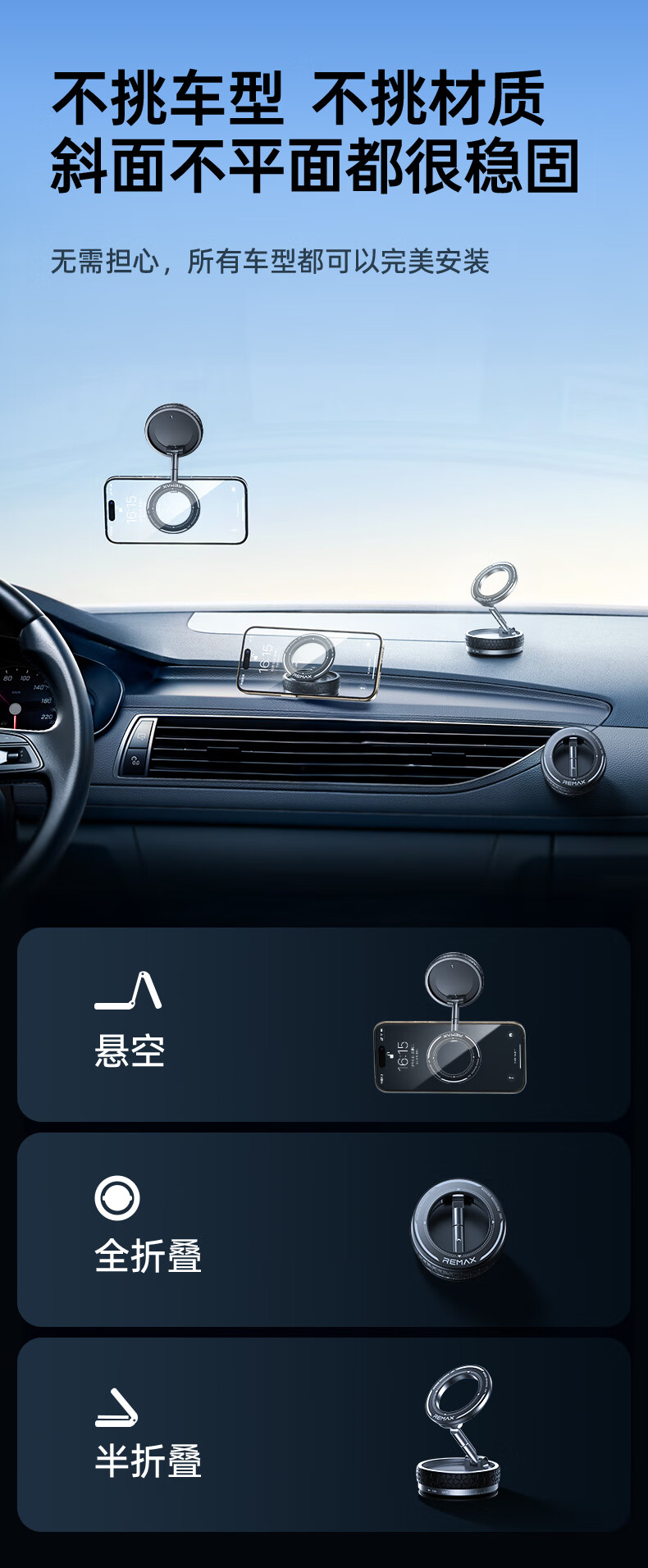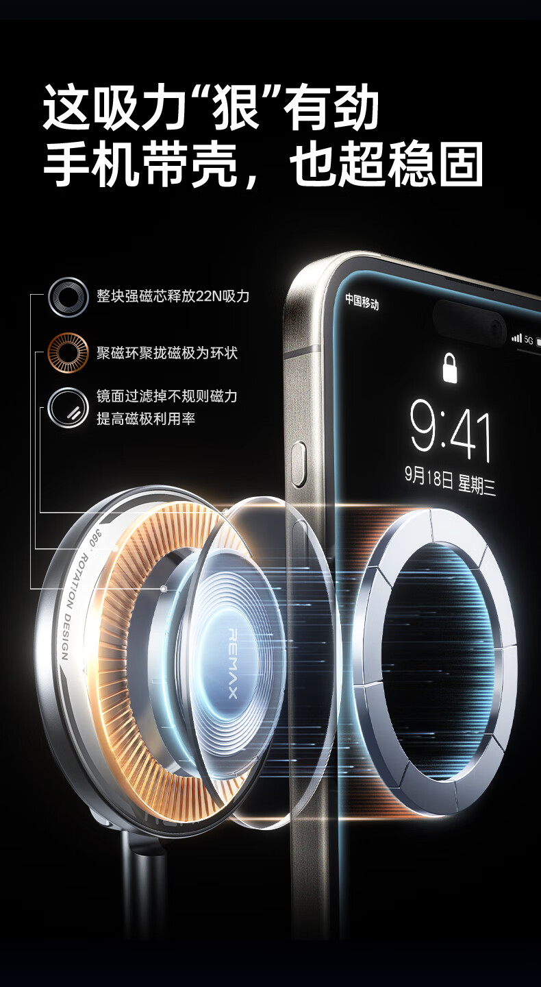 Remax, a million-selling hot-selling product on the entire Internet丨Vacuum adsorption car mobile phone holder magnetic suction, universal for all models, 2025 new model