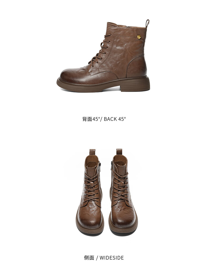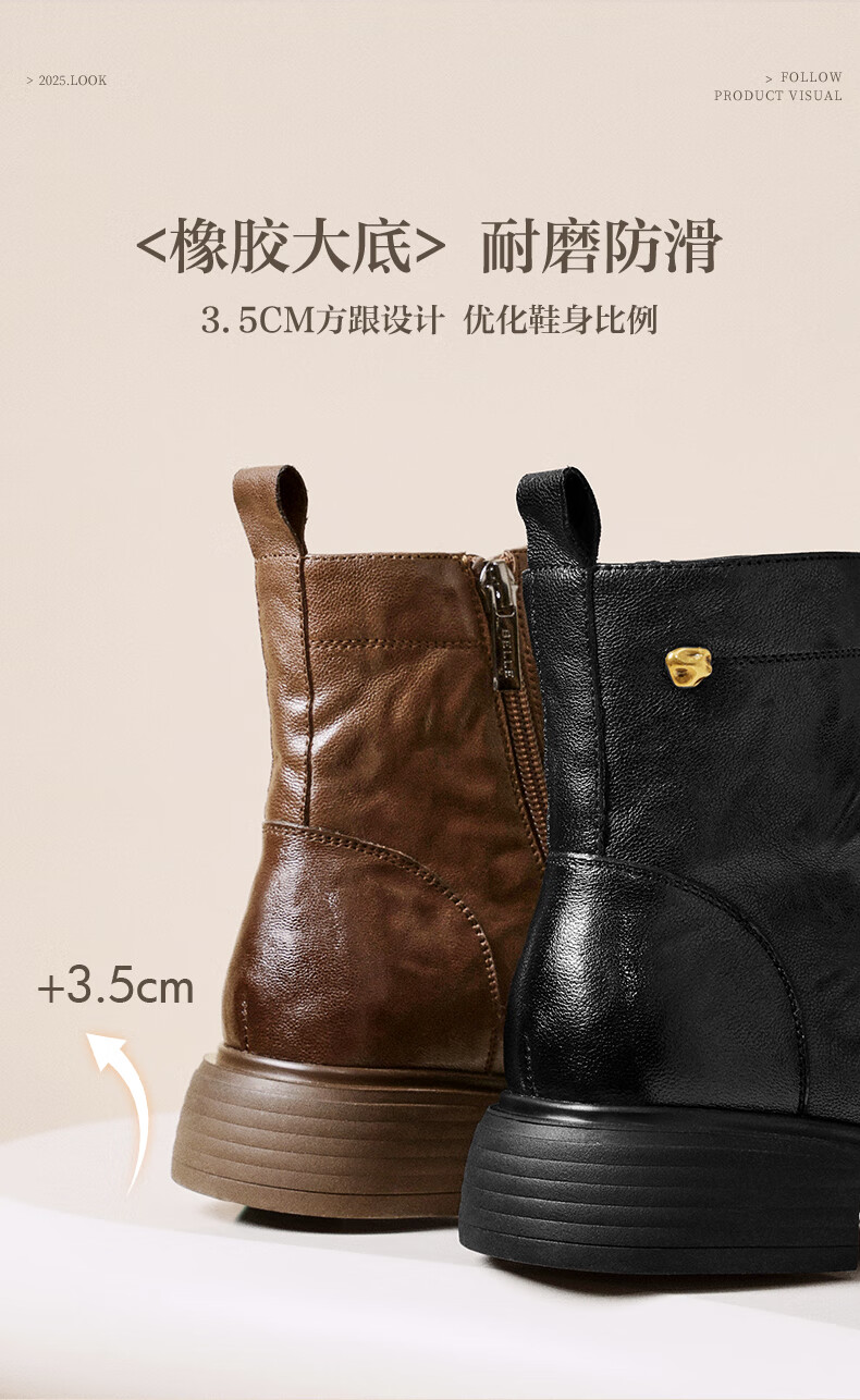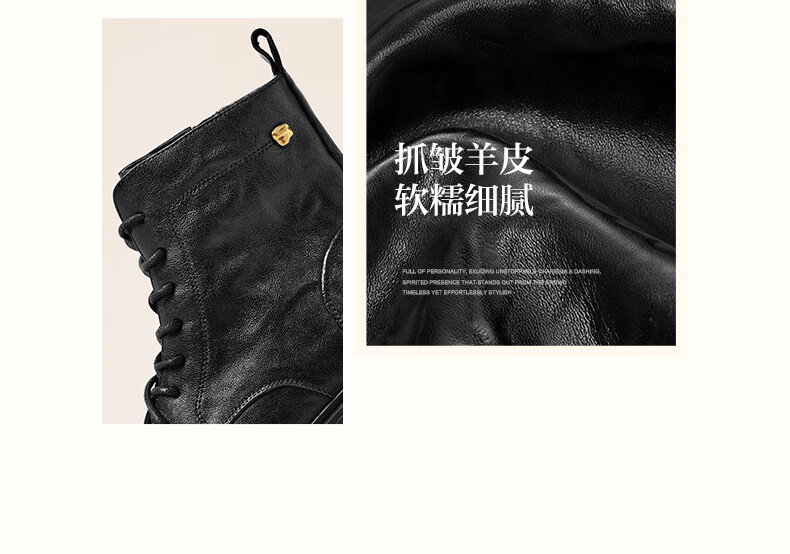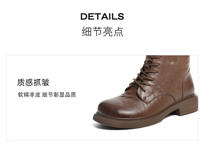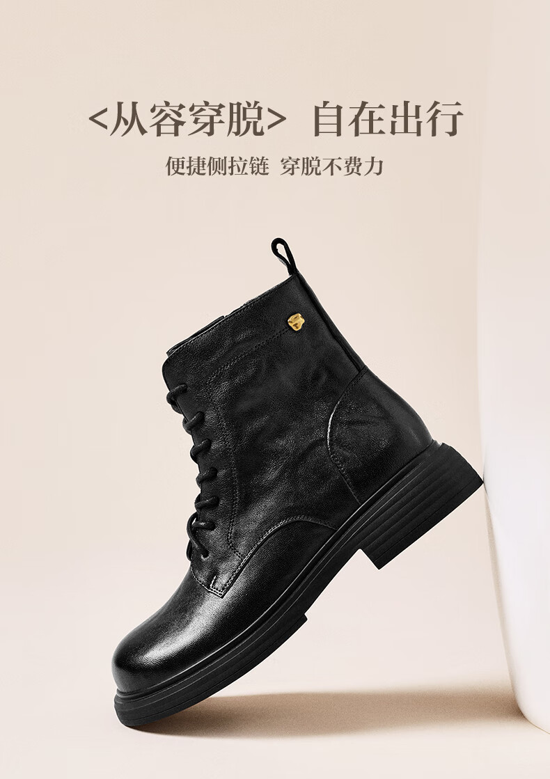 Belle wrinkled Martin boots for women 2025 winter new women's sheep leather texture fashion boots JD008DD5 black-velvet lining 38