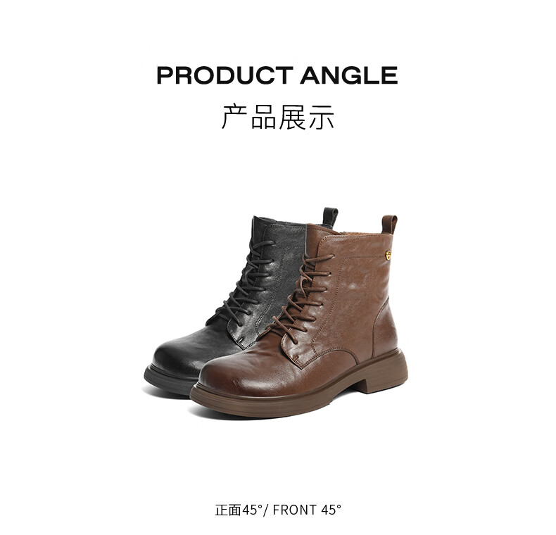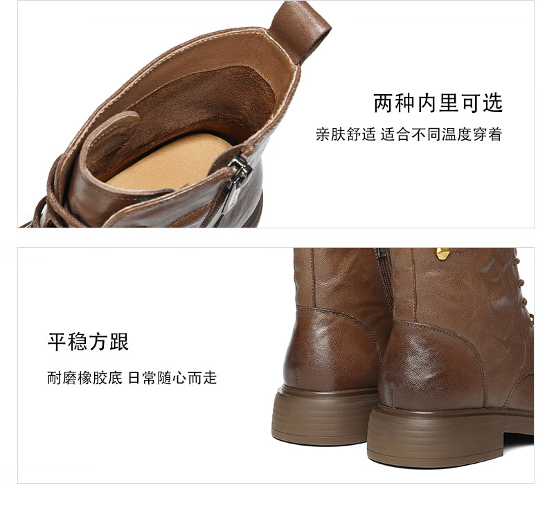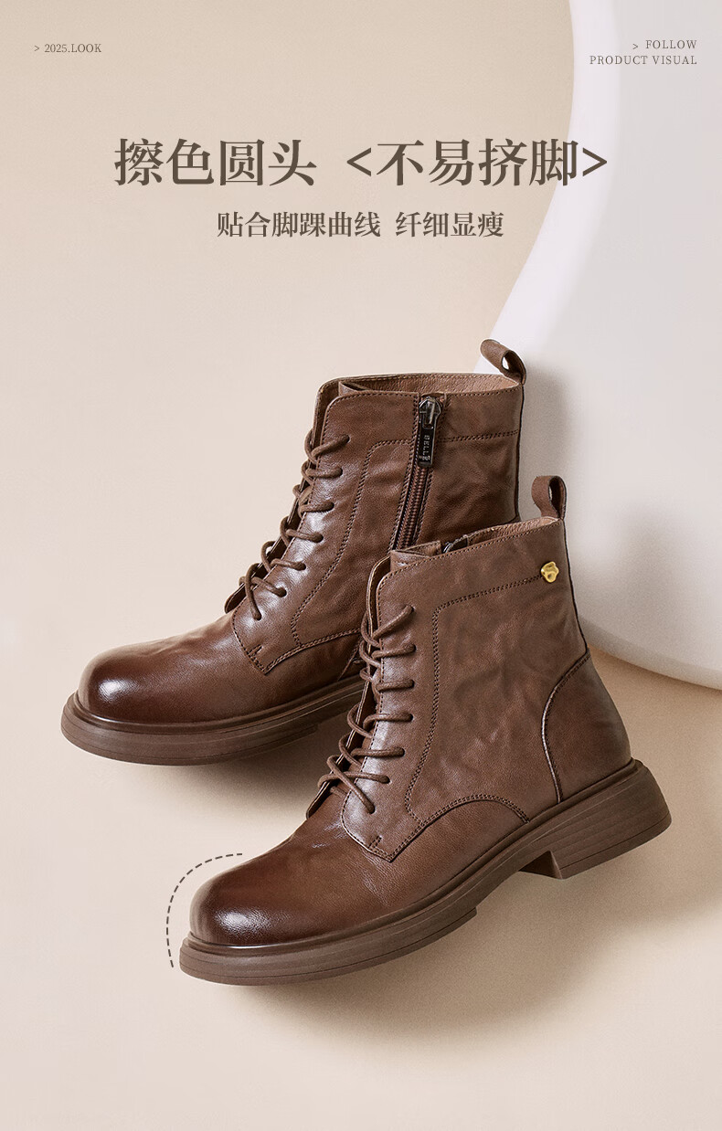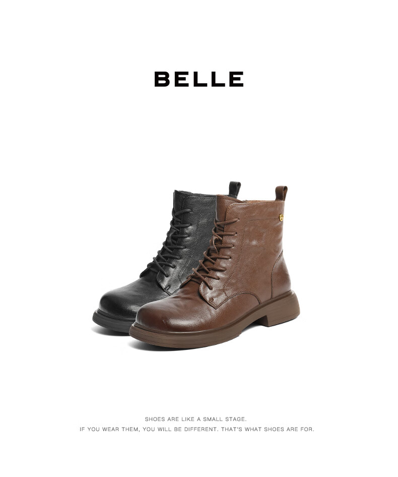 Belle wrinkled Martin boots for women 2025 winter new women's sheep leather texture fashion boots JD008DD5 black-velvet lining 38