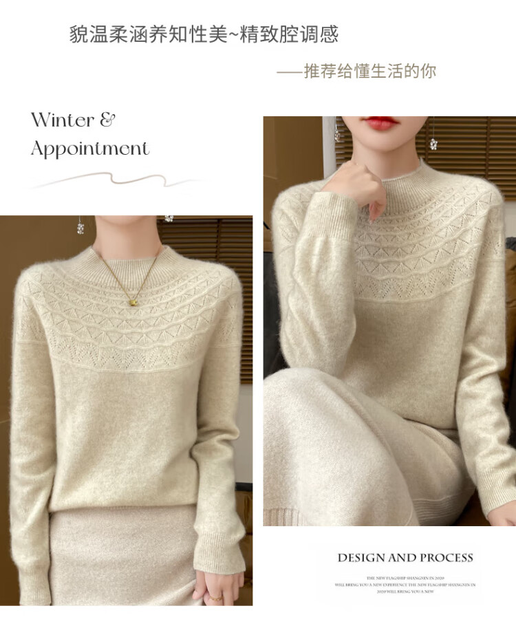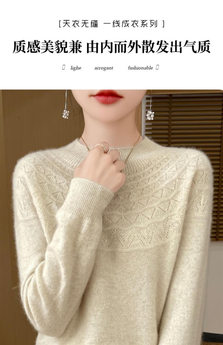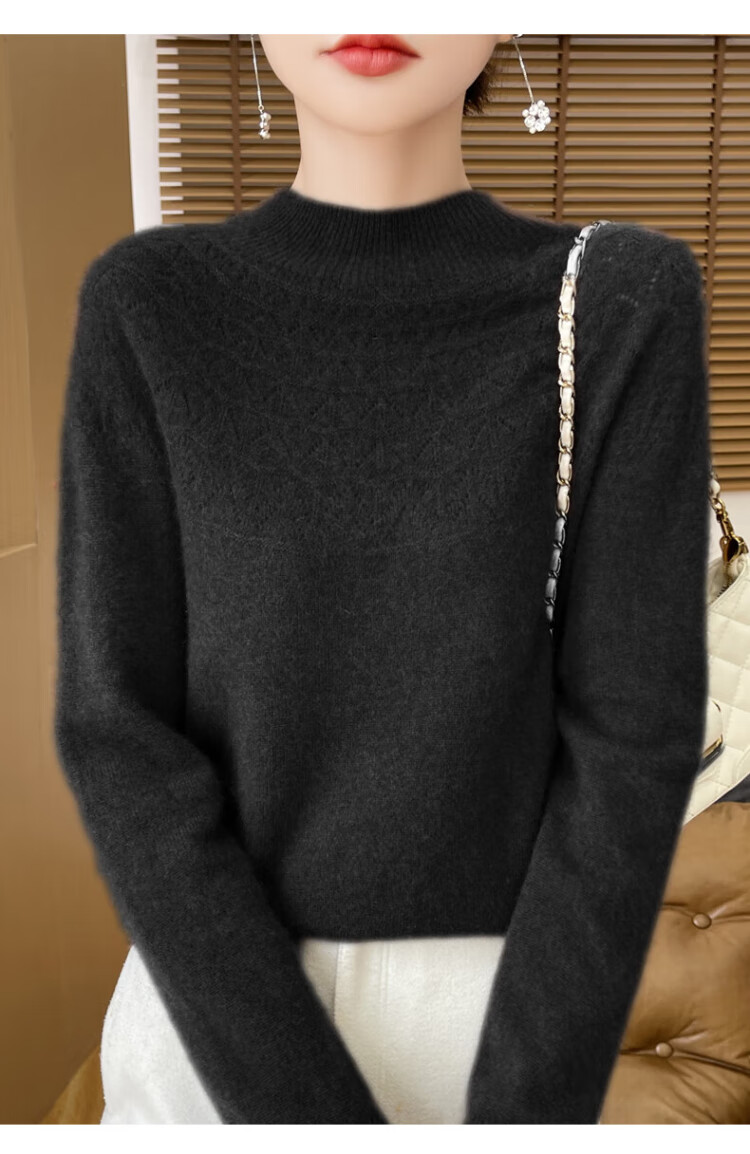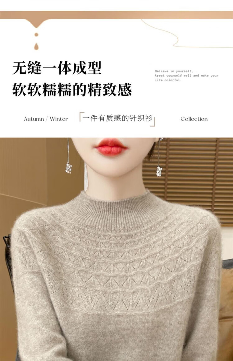 Catman seamless one-piece ready-made half turtleneck bottoming shirt for women, loose spring, autumn and winter new model with hollow hollow collar knitted sweater