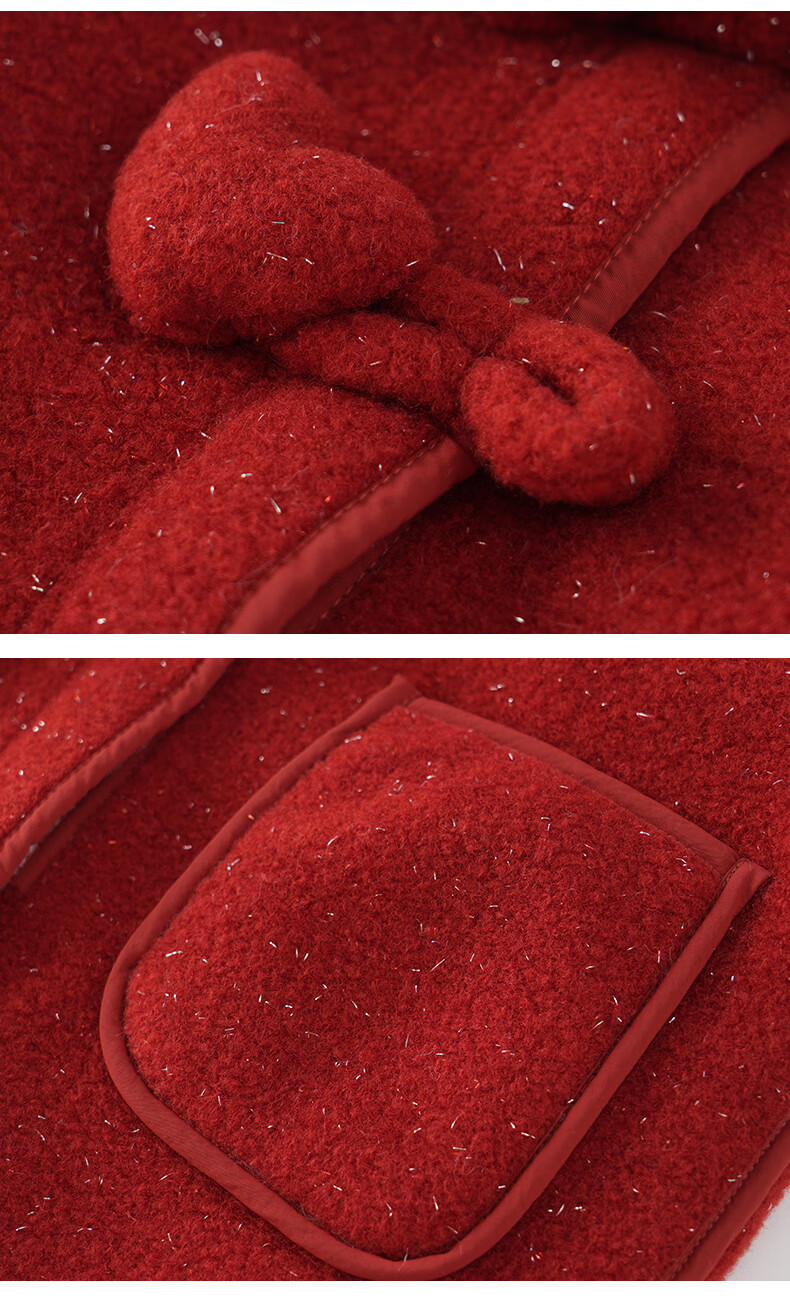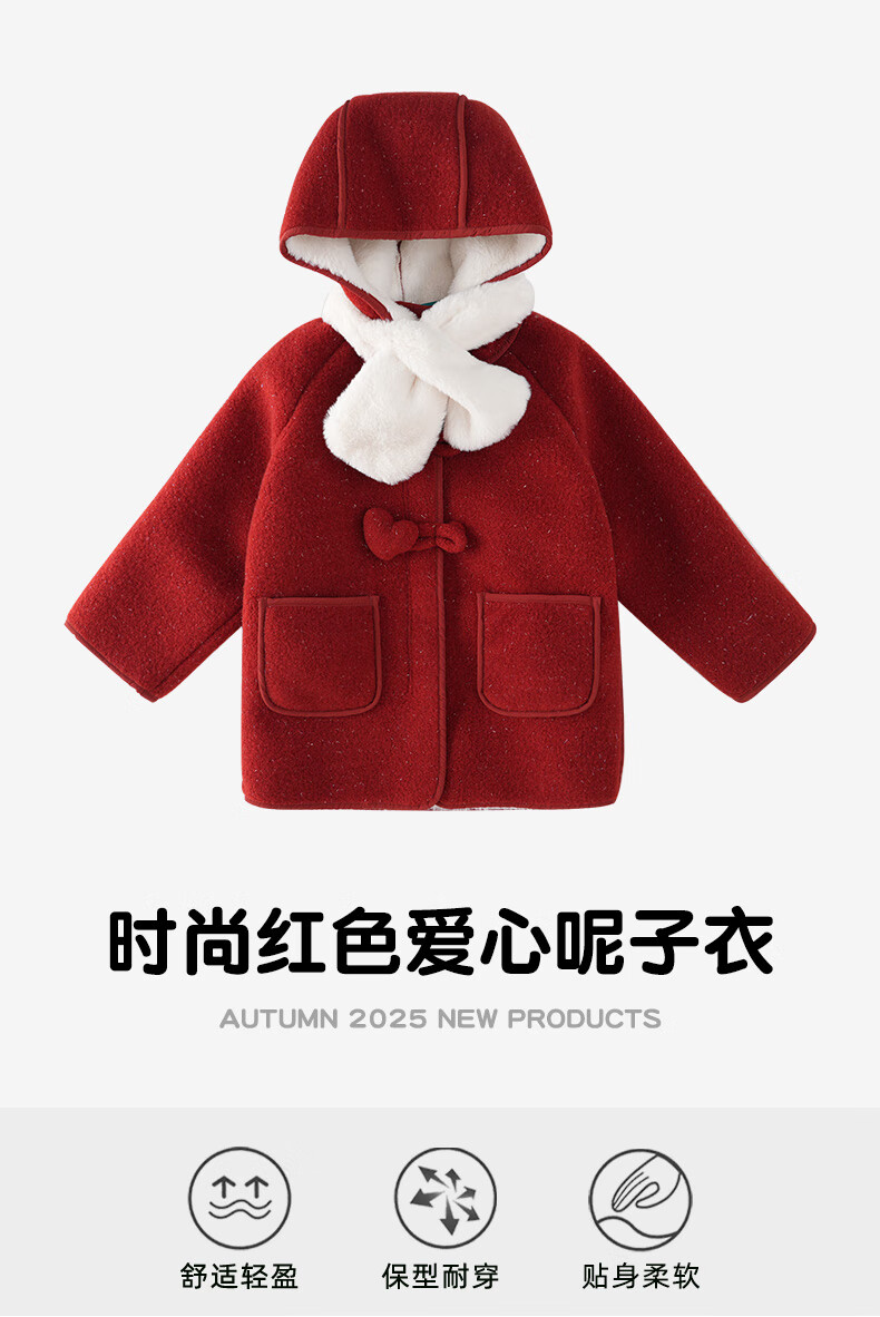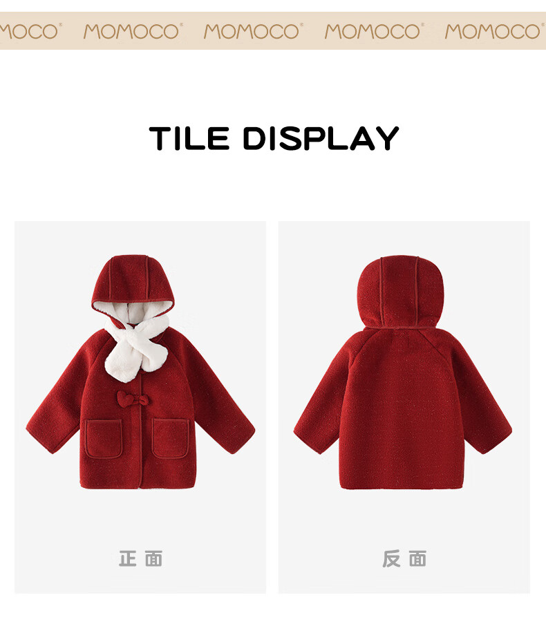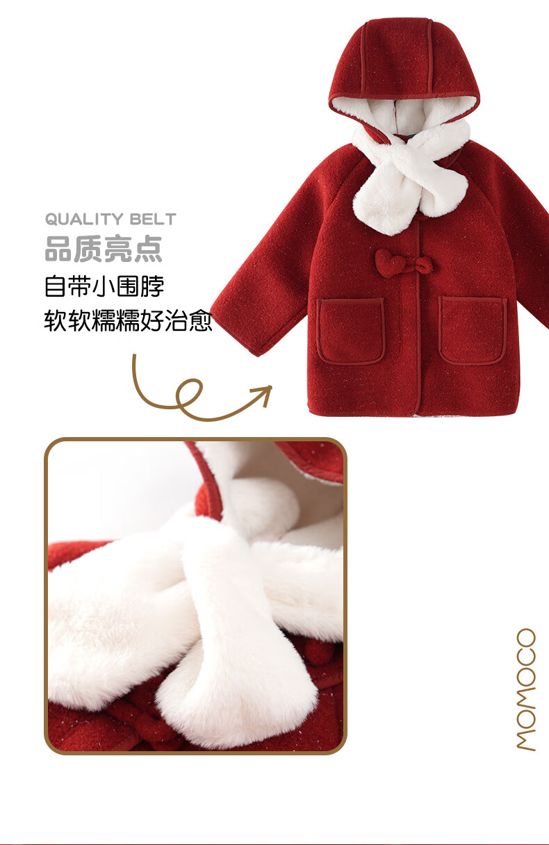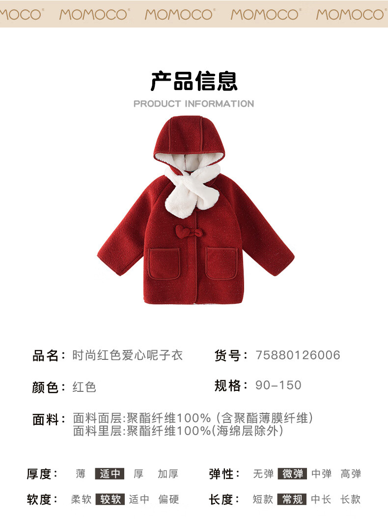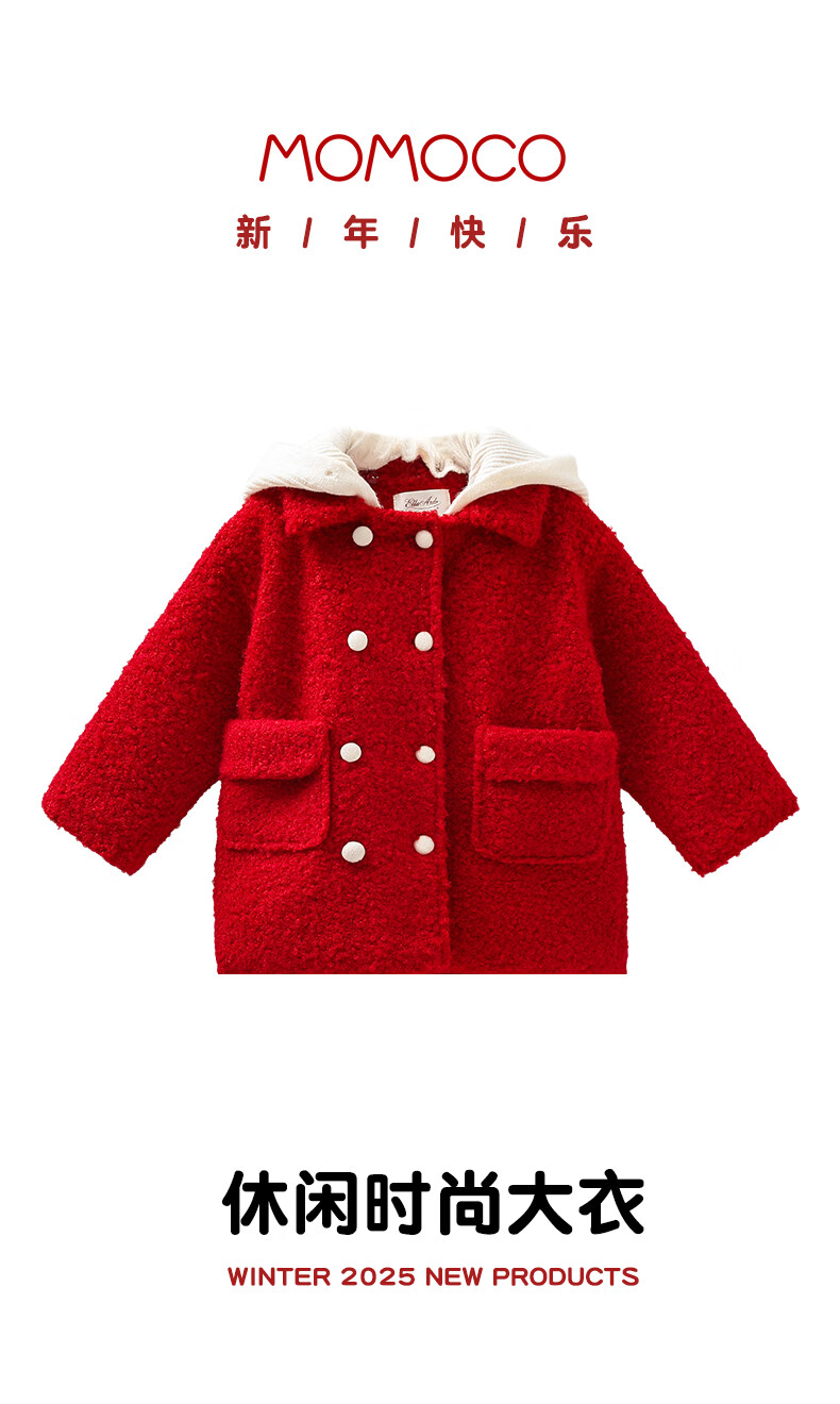 Mami Maca (MOMOCO) children's coat winter girls' coat velvet sweet fashion love woolen coat red 130