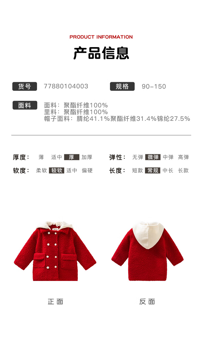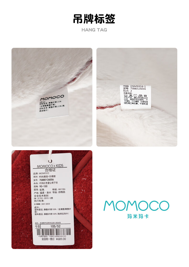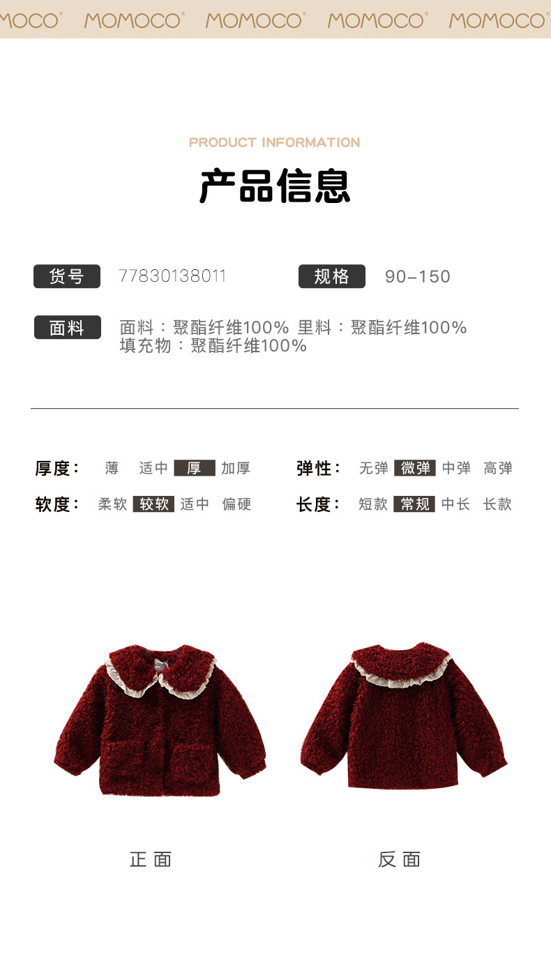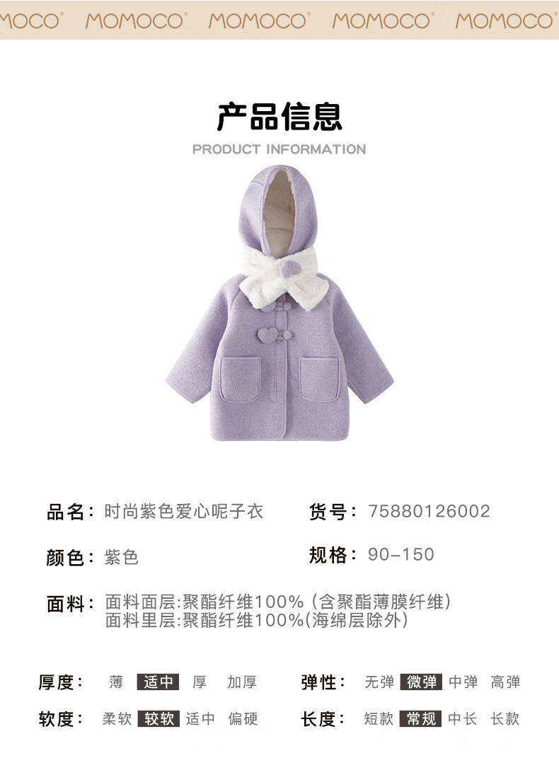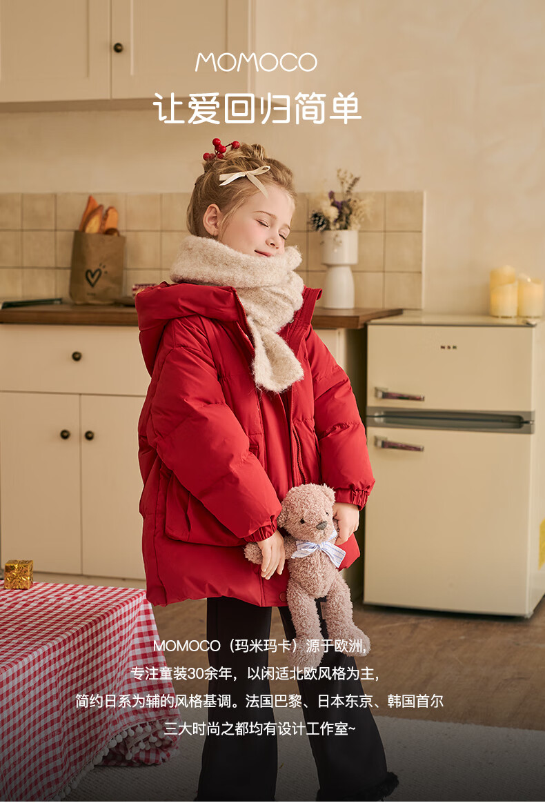 Mami Maca (MOMOCO) children's coat winter girls' coat velvet sweet fashion love woolen coat red 130