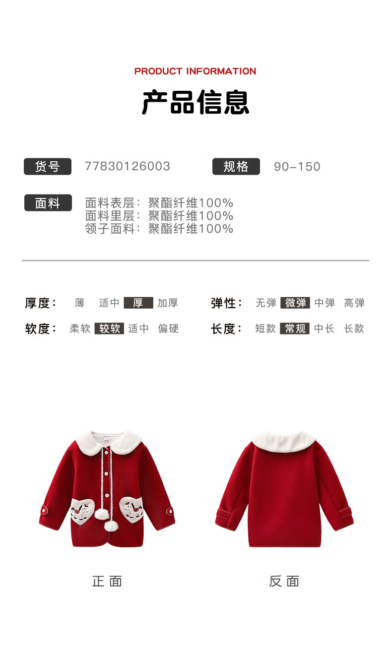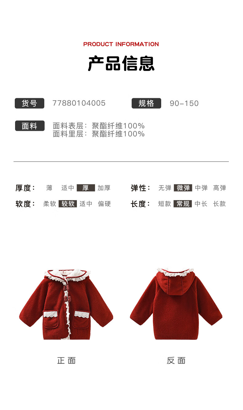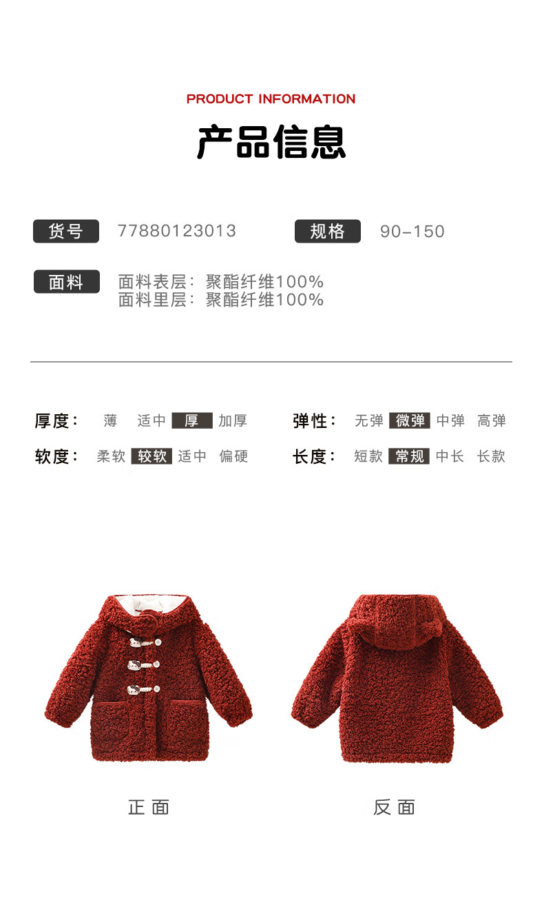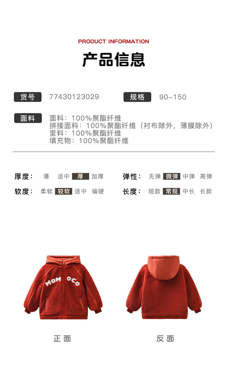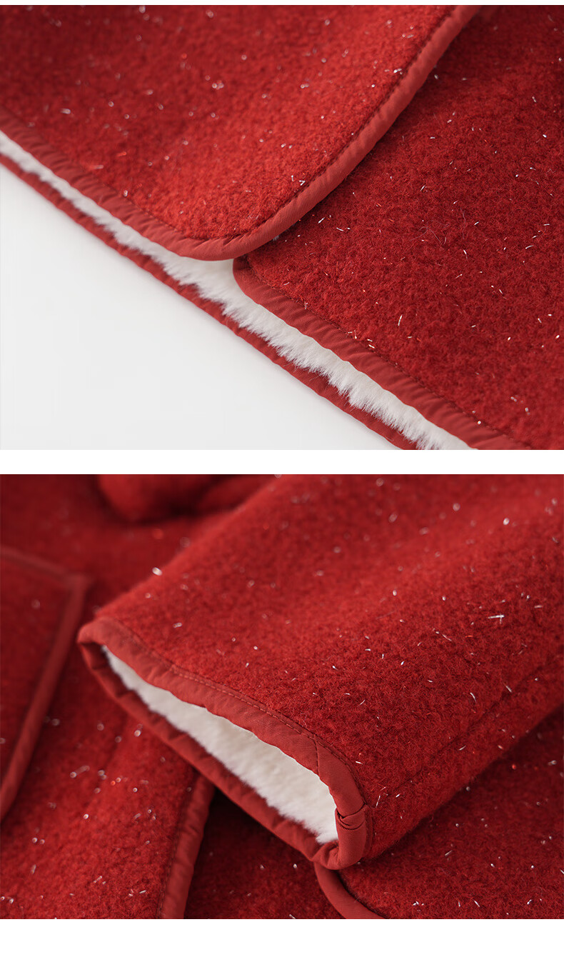 Mami Maca (MOMOCO) children's coat winter girls' coat velvet sweet fashion love woolen coat red 130