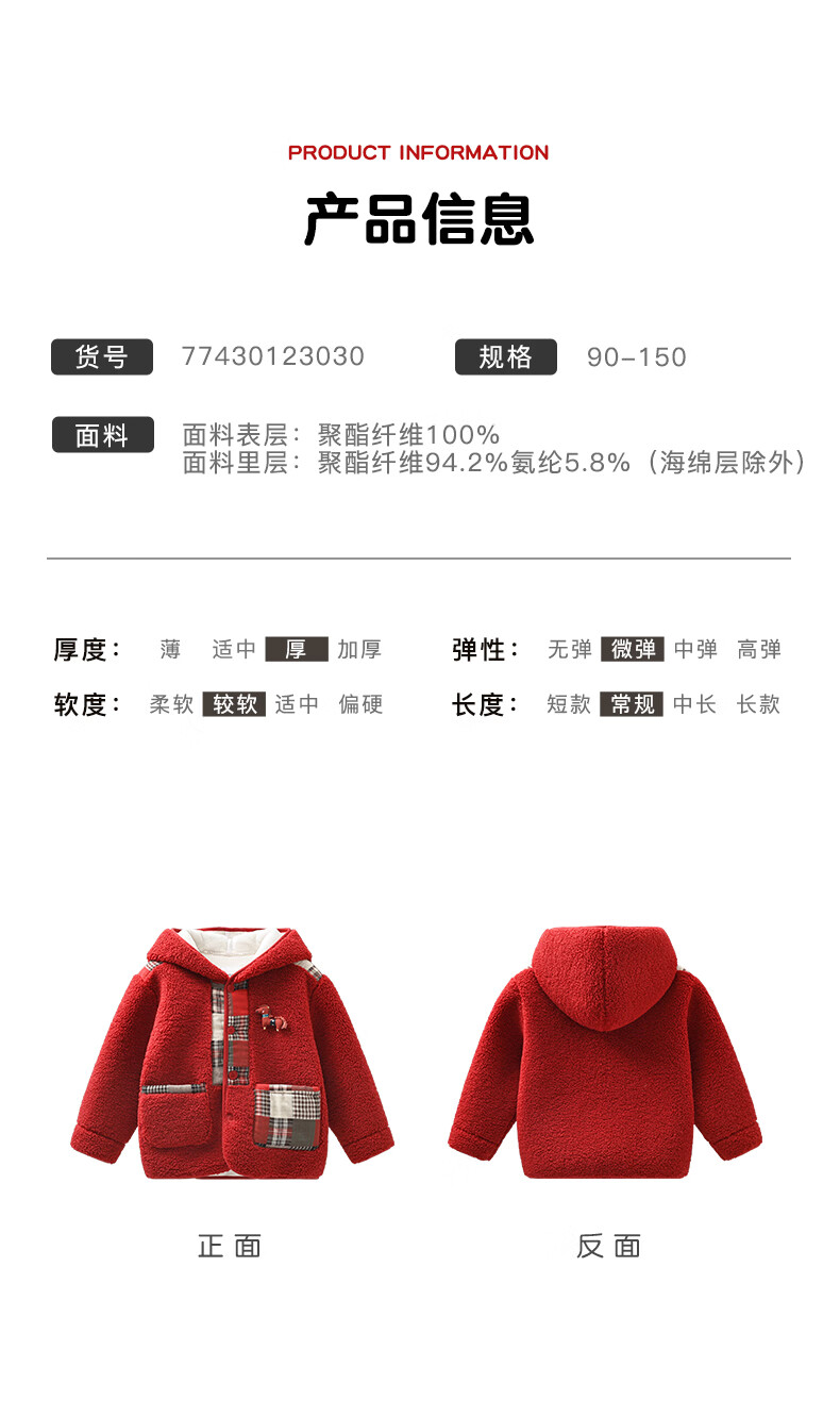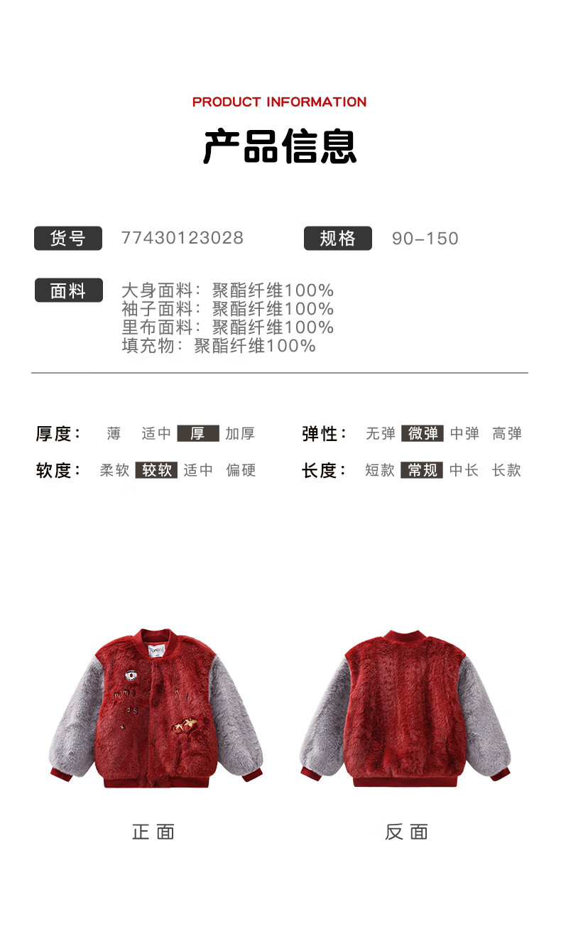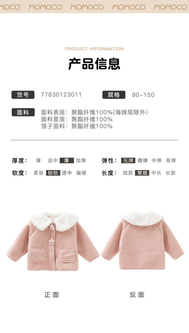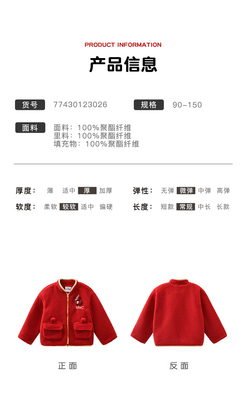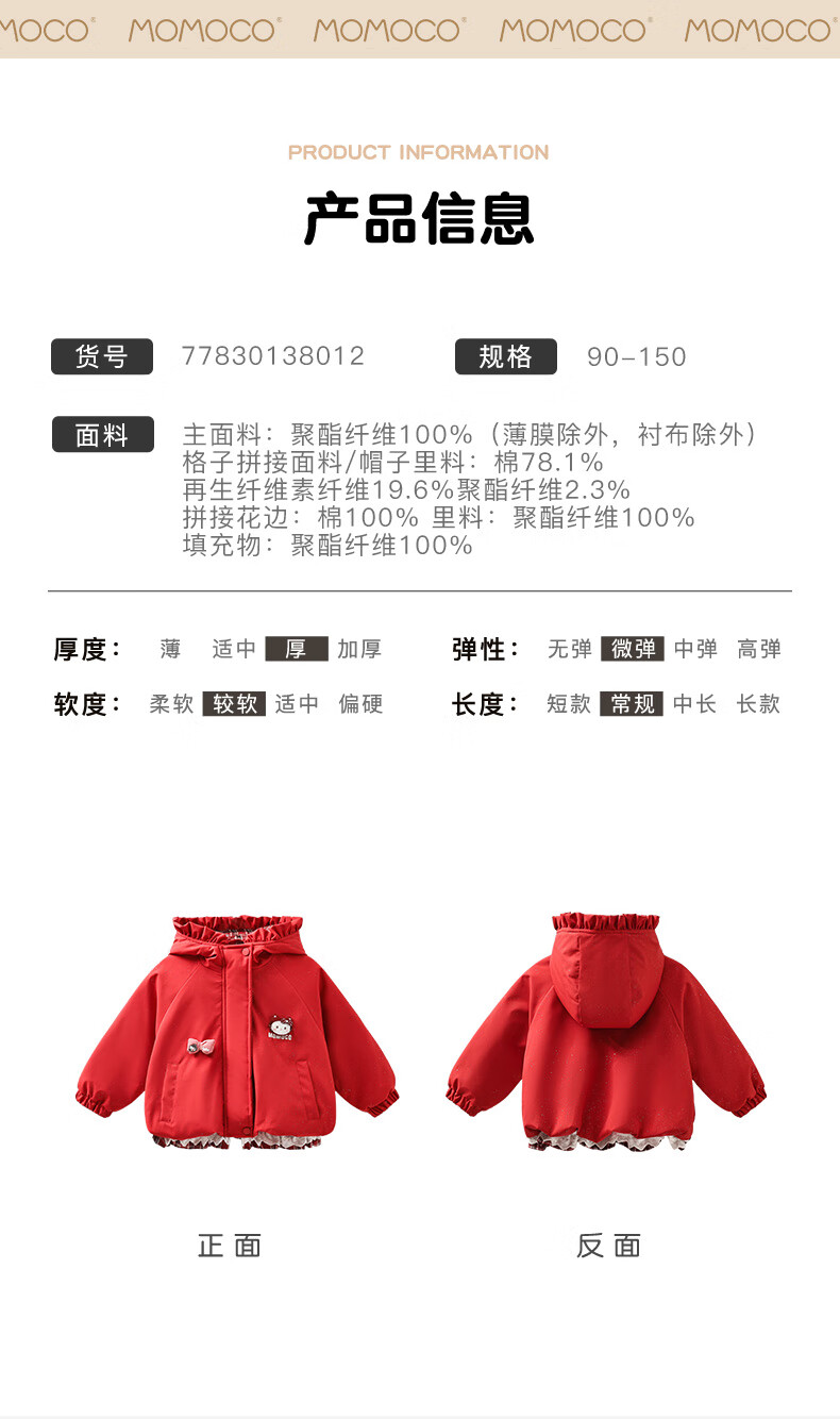 Mami Maca (MOMOCO) children's coat winter girls' coat velvet sweet fashion love woolen coat red 130