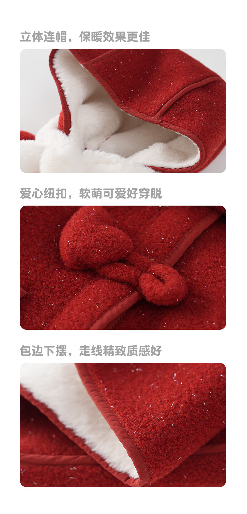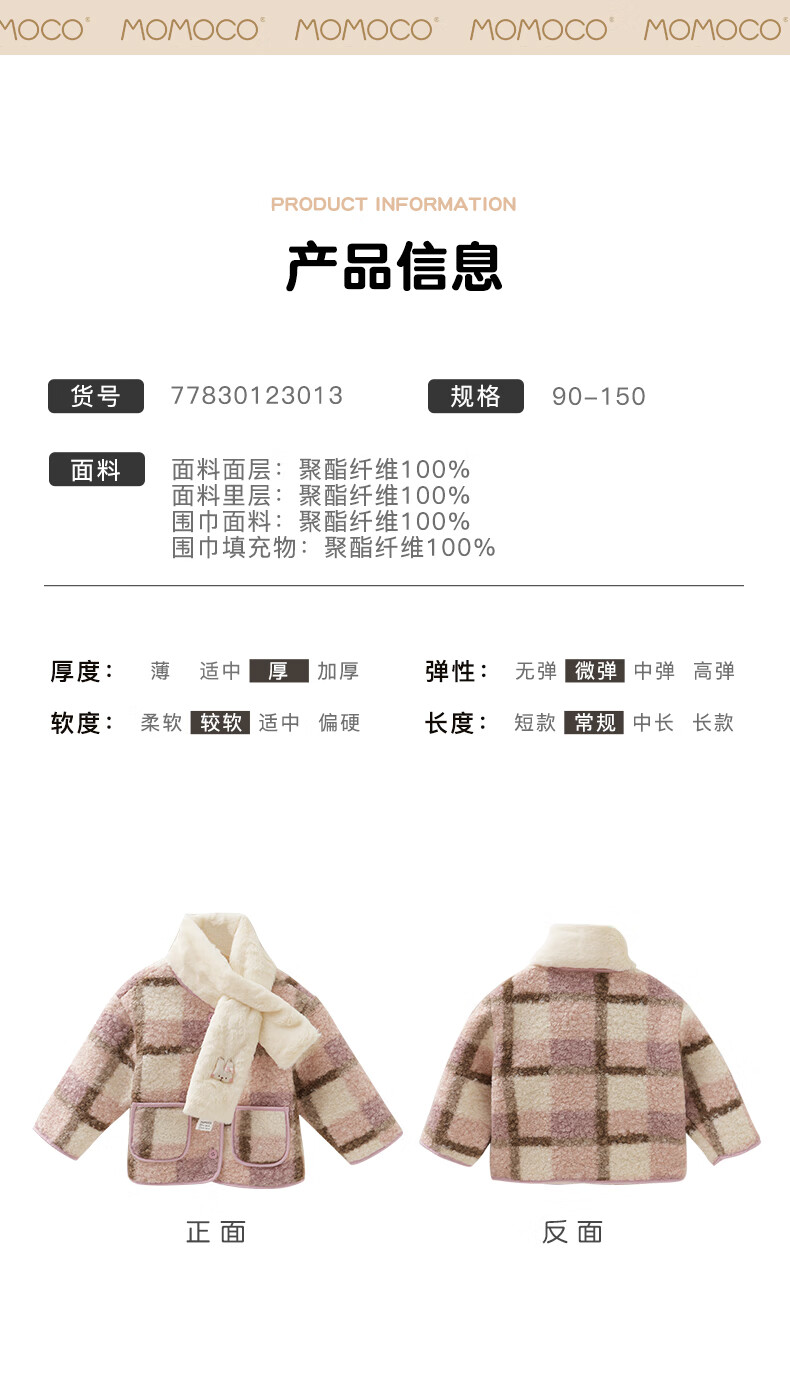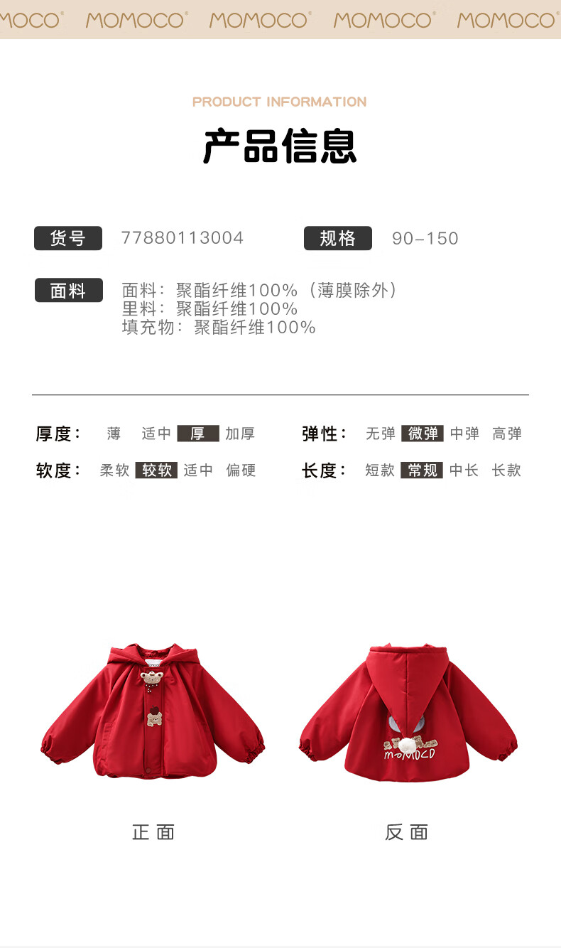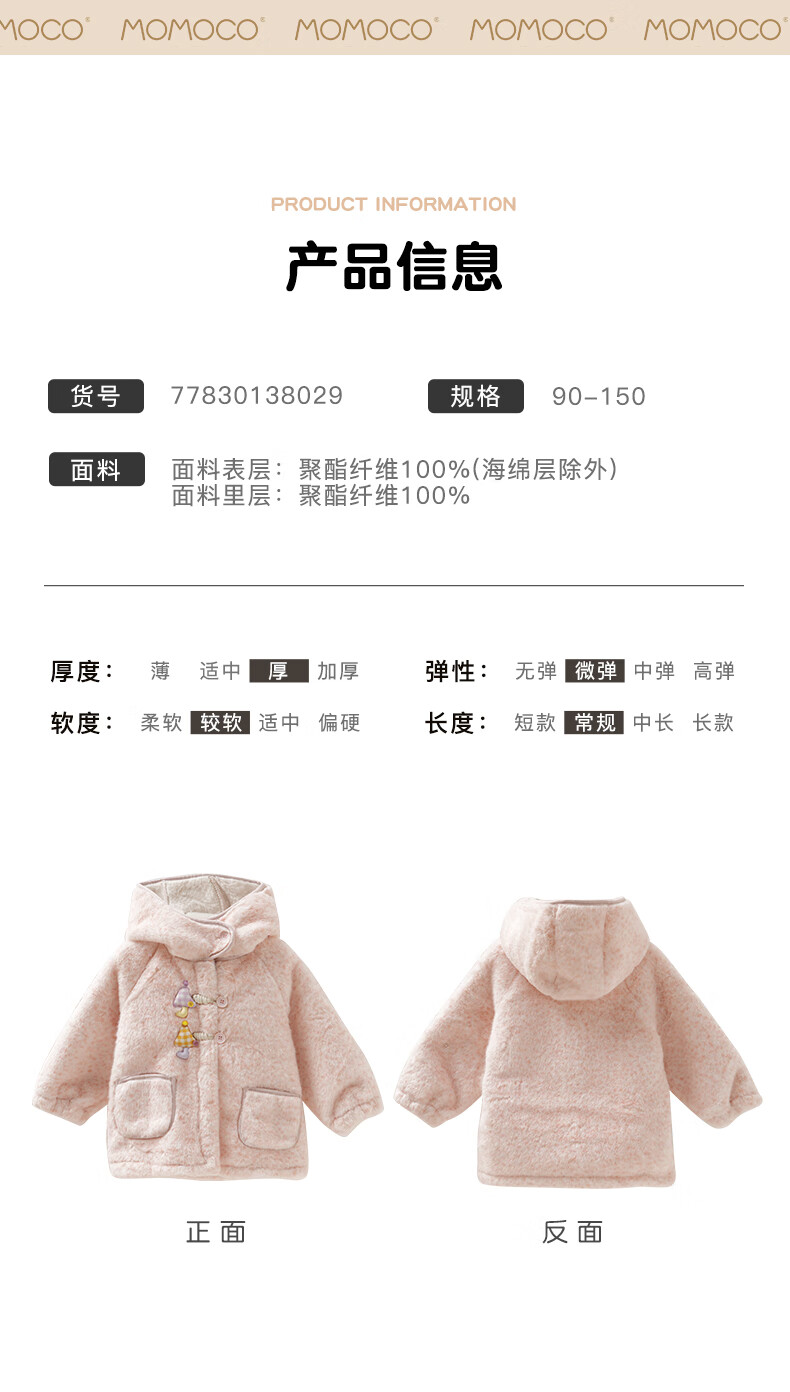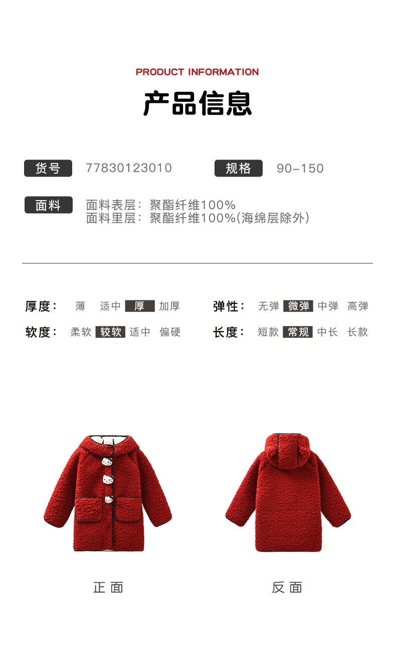 Mami Maca (MOMOCO) children's coat winter girls' coat velvet sweet fashion love woolen coat red 130