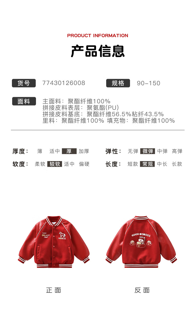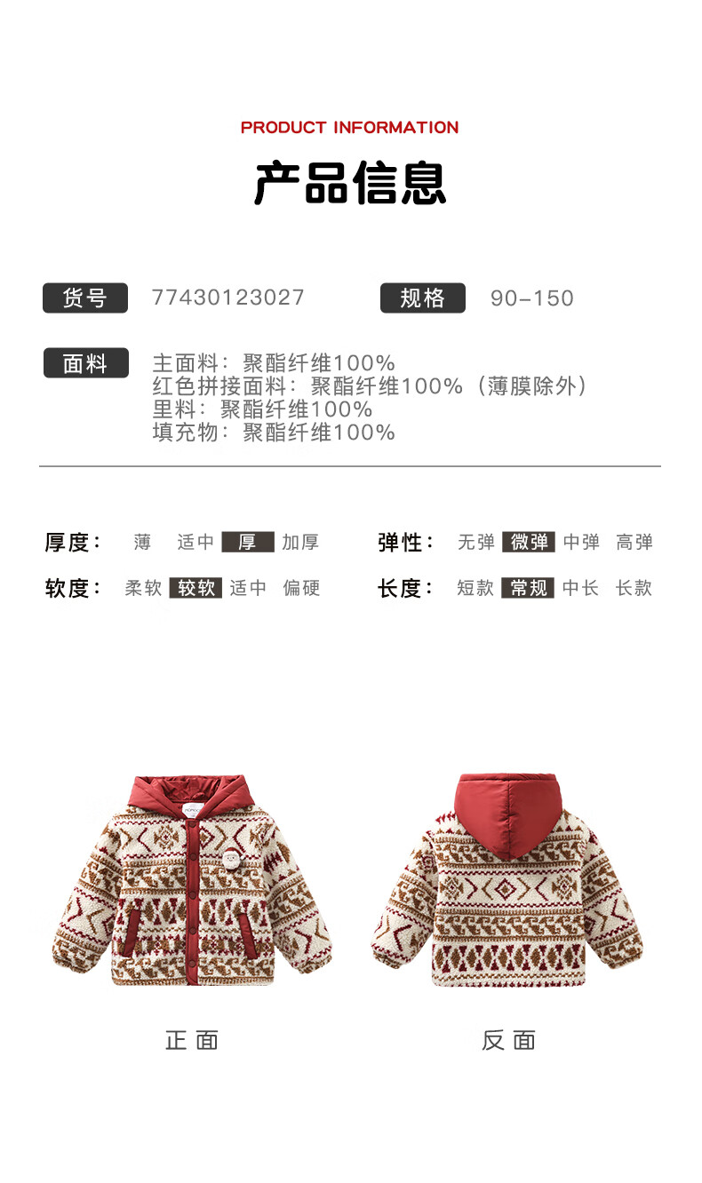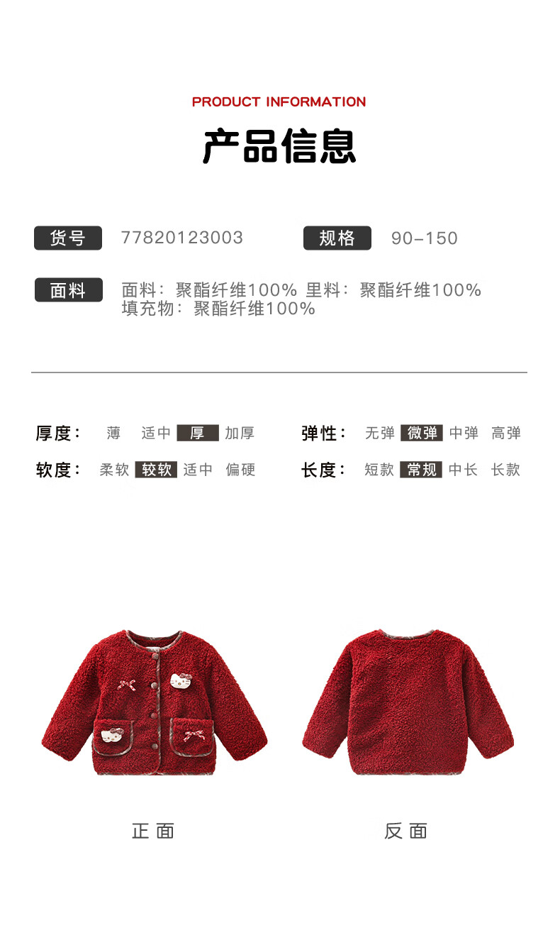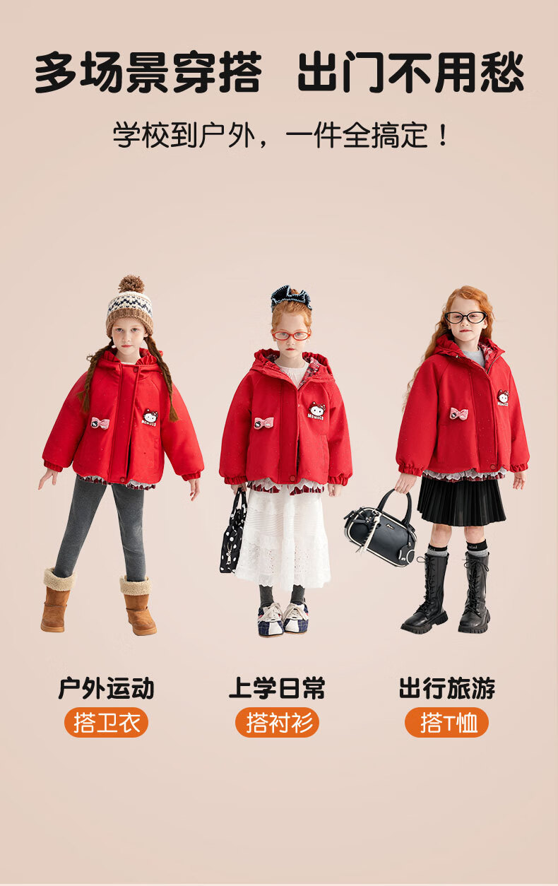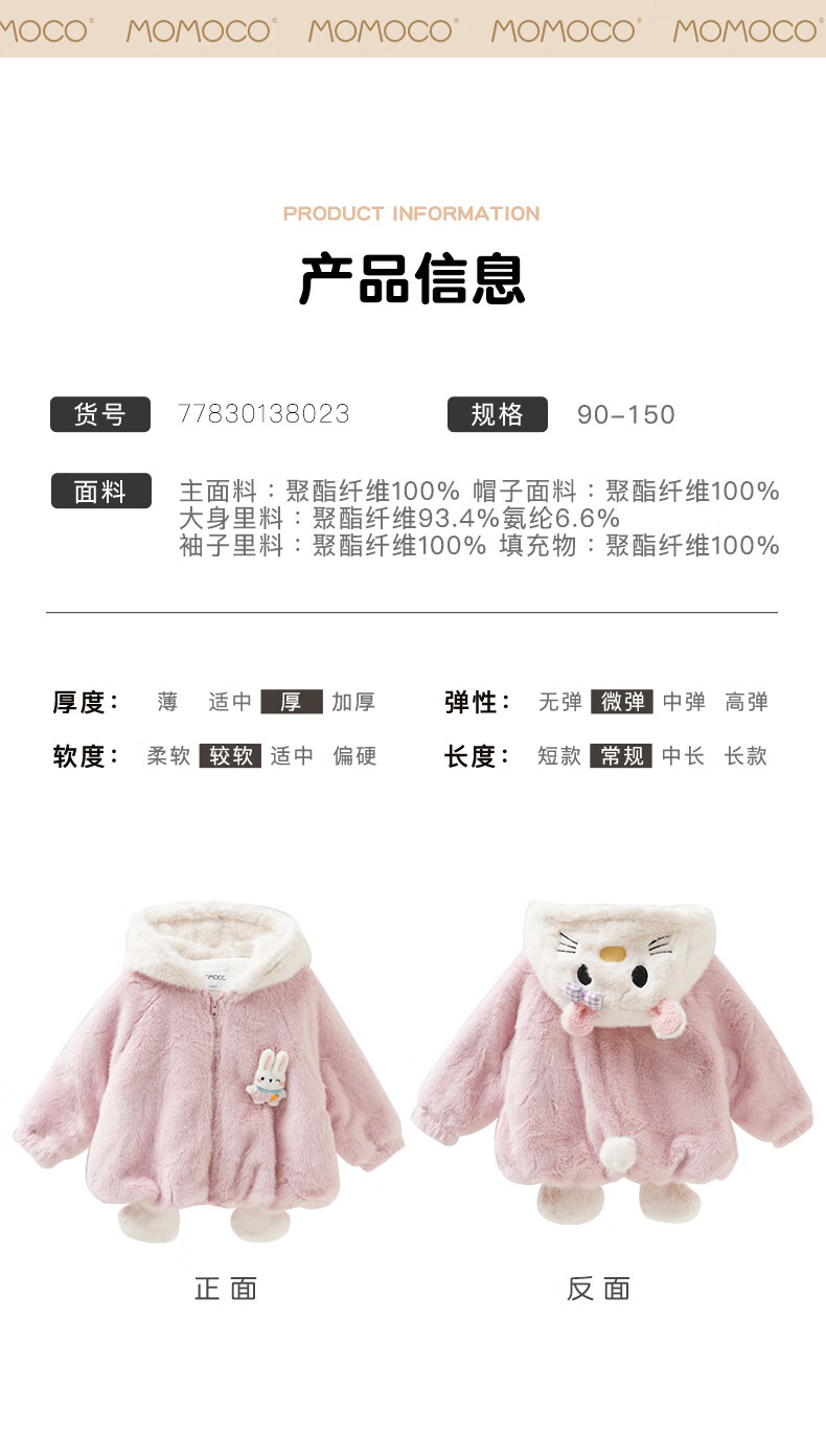 Mami Maca (MOMOCO) children's coat winter girls' coat velvet sweet fashion love woolen coat red 130