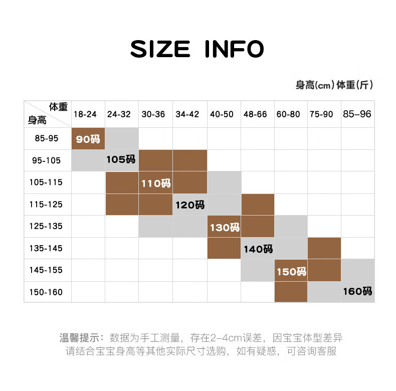 China (cm) 160-165/84-86 165-170 / 88-90 167-172 / 92-96 168-173 / 98-102 170-176 / 106-110