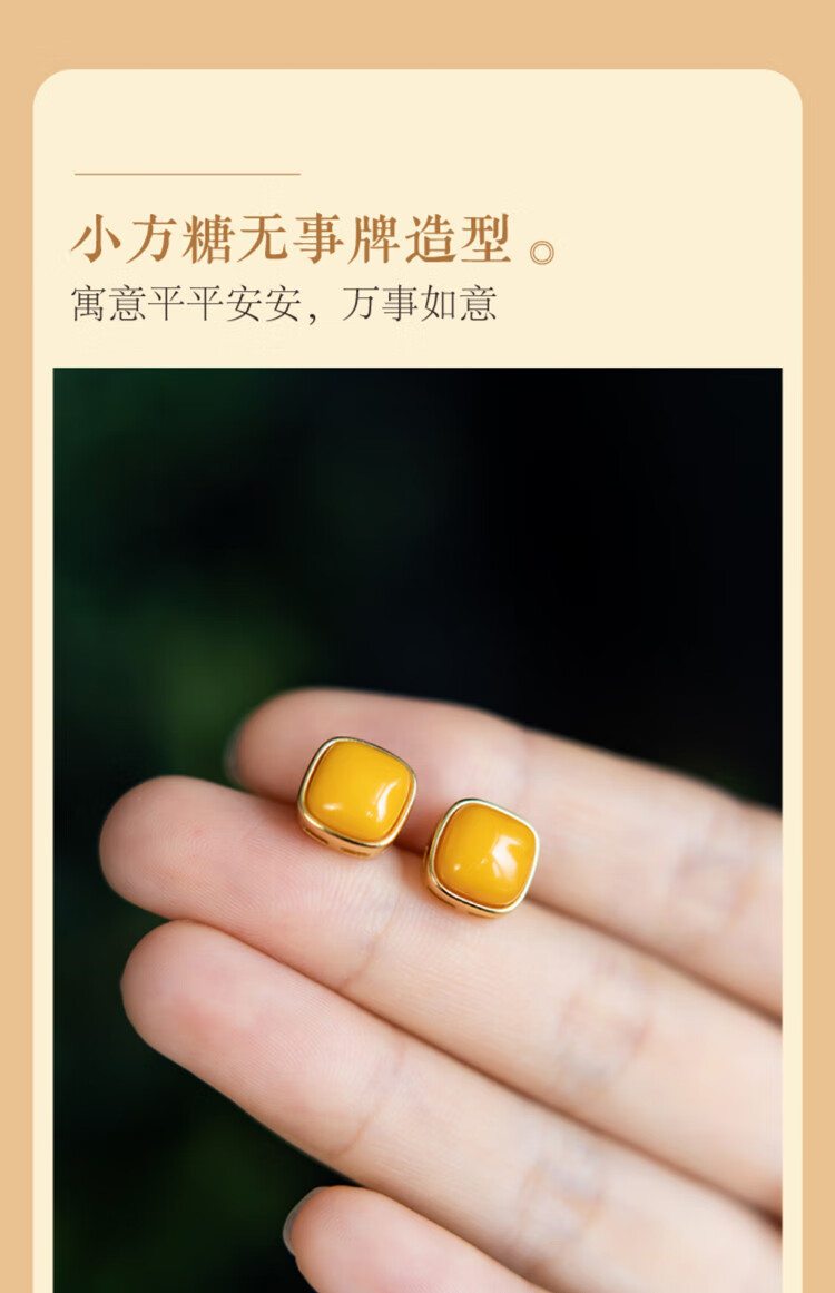 Love 925 silver earrings for women, small square sugar beeswax earrings, Chinese style earrings, jewelry, national style high-end gifts for girlfriends