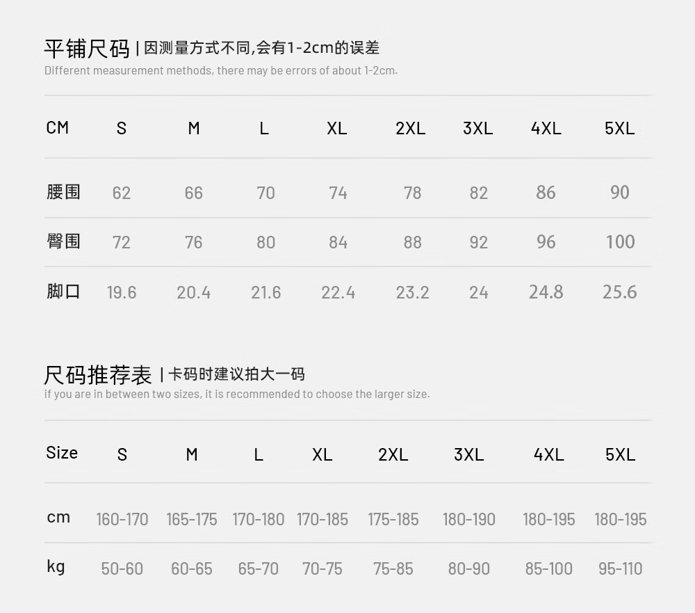 Outseam (cm) 99 cm 101.5 cm 104 cm 106.5 cm 109 cm