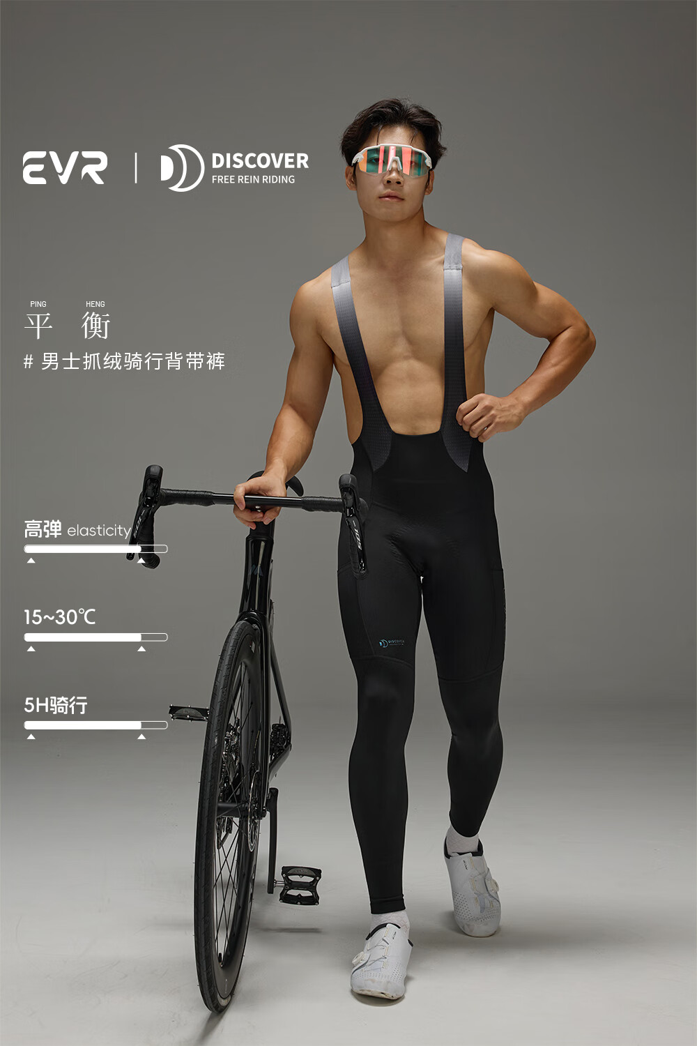 EVR Autumn and Winter Double Arrow Cycling Pants Men's Velvet Bib Trousers Warm Black Fleece 2XL