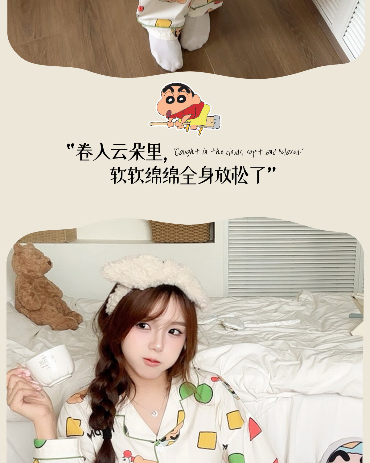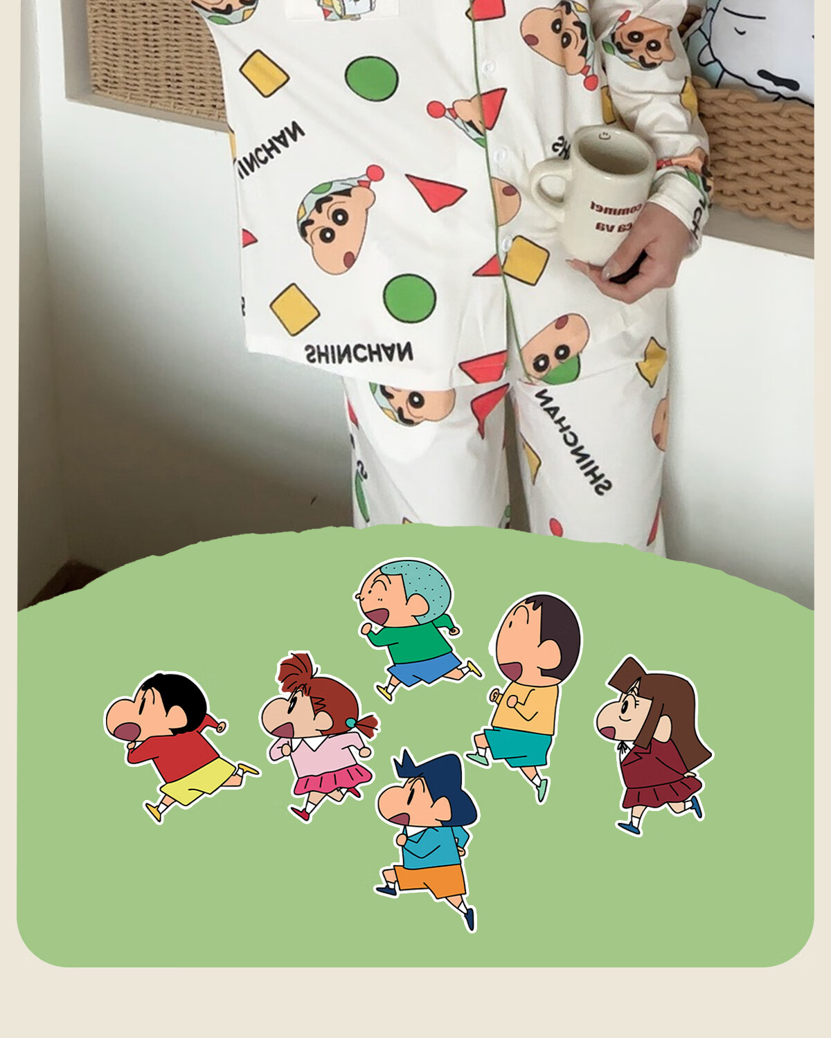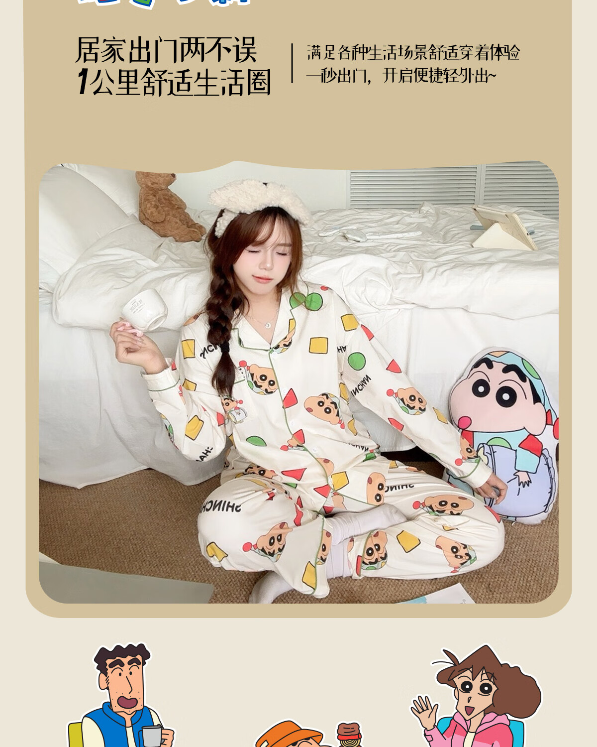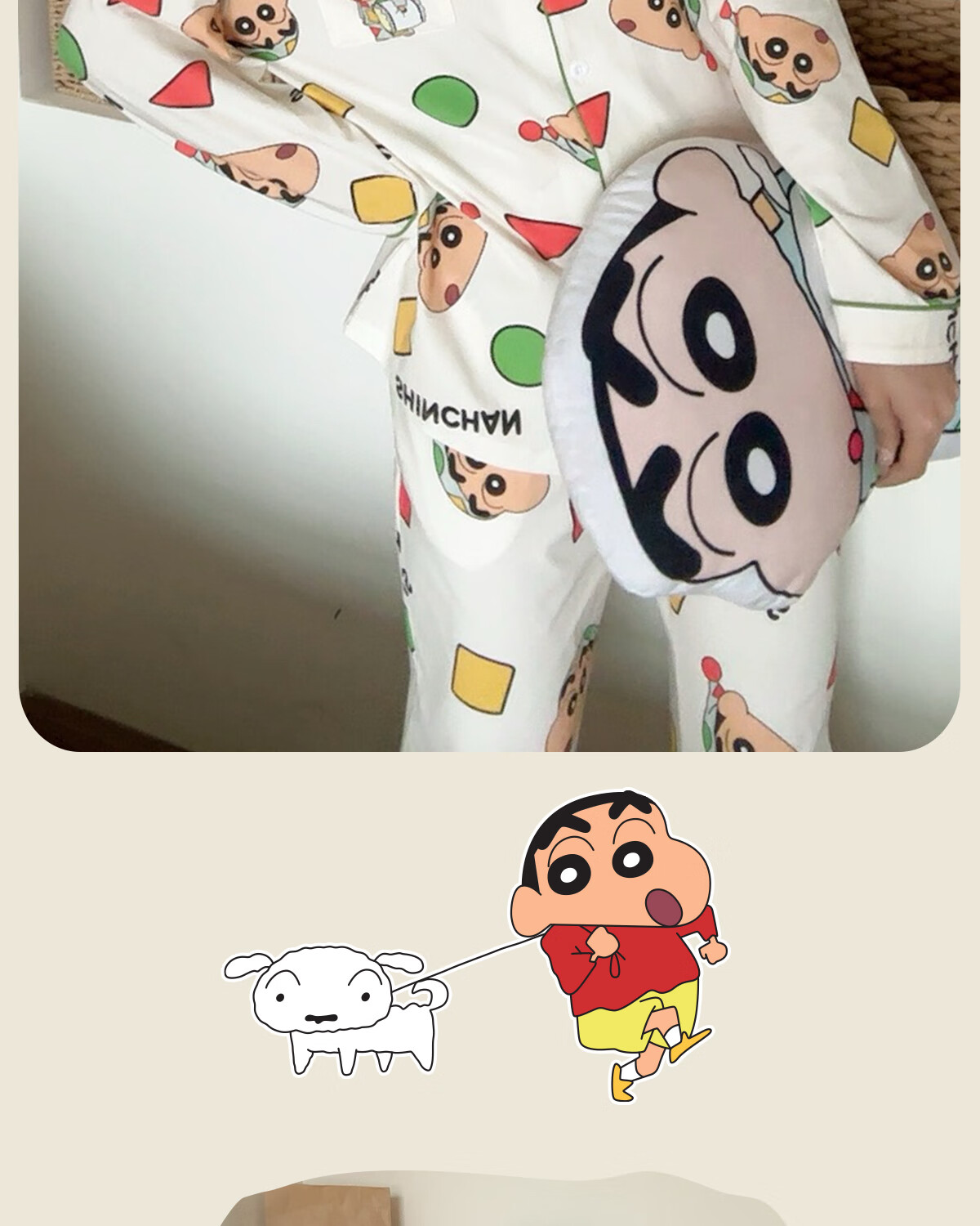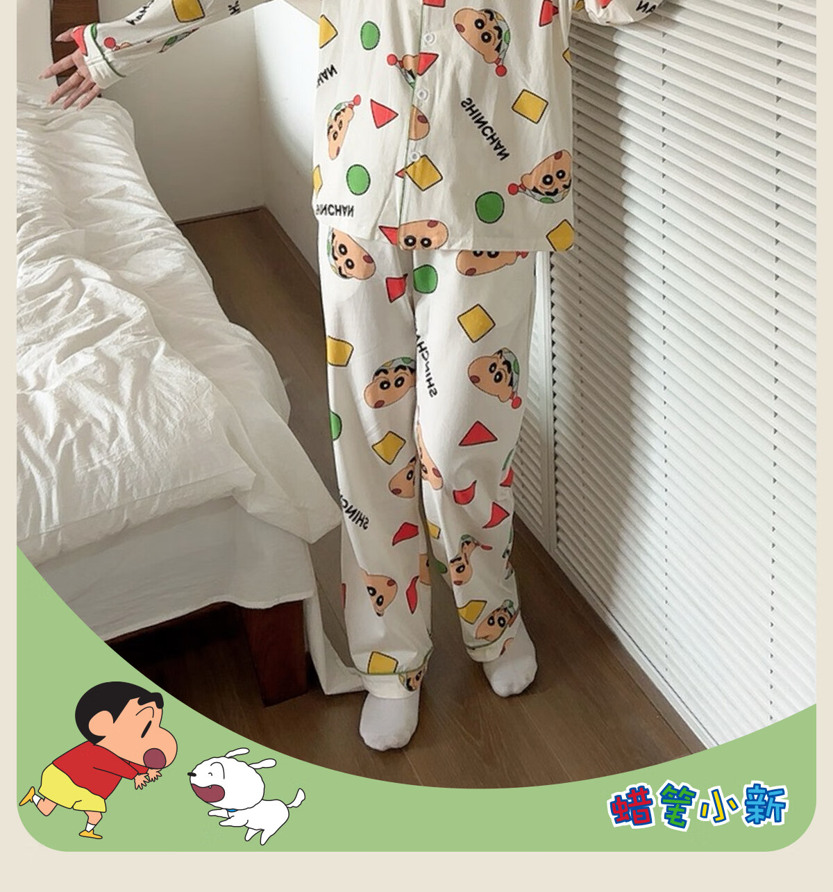 Gong Die Light and Soft Crayon Shin-chan Spring and Autumn Pajamas Couple's Wear Long Sleeve Cartoon Cute Full Print Home Clothes for Men