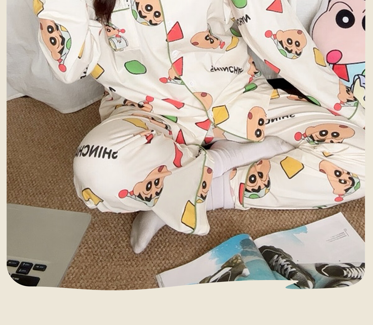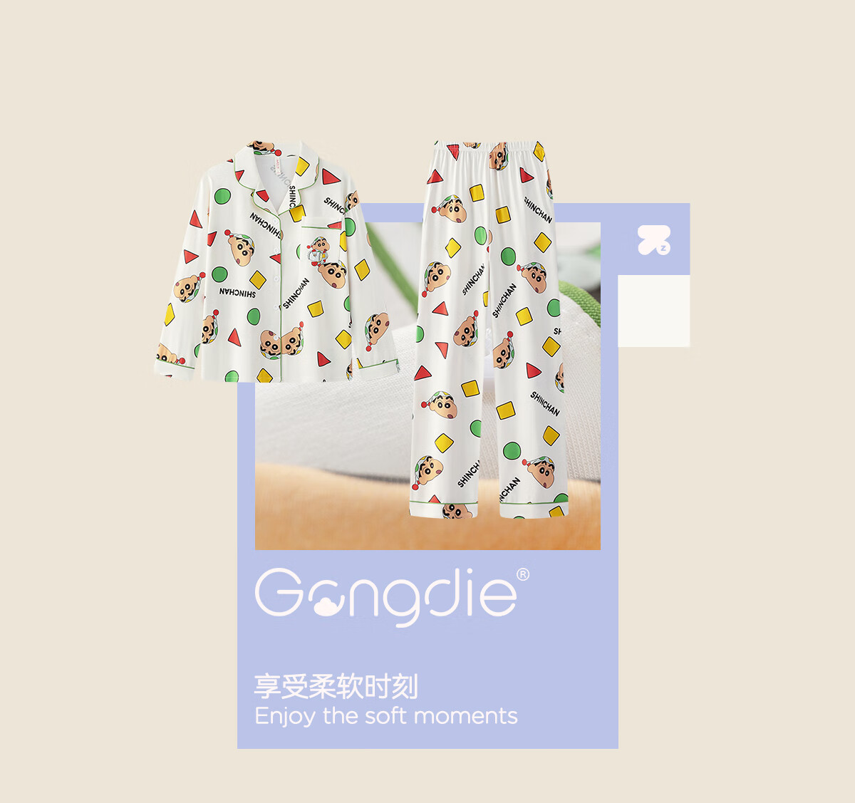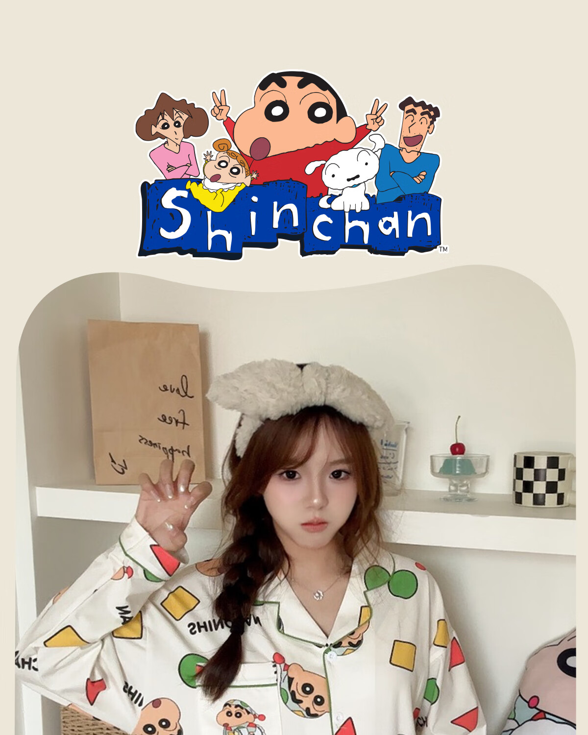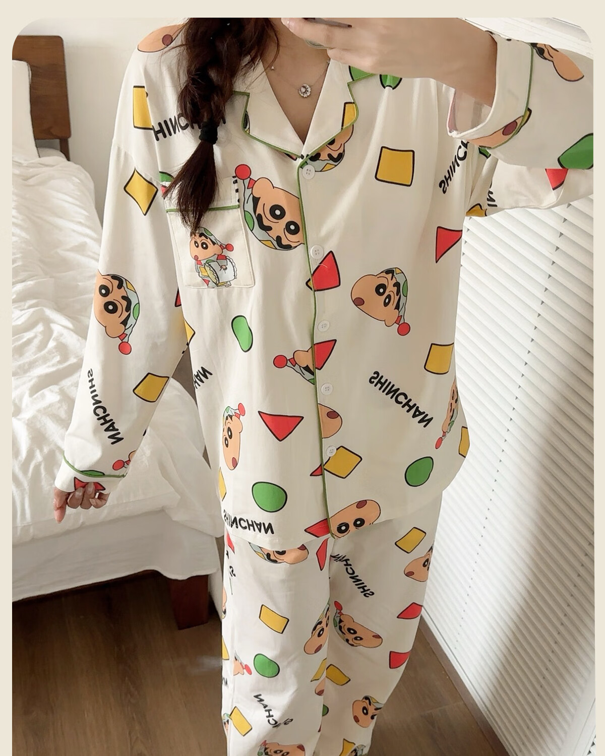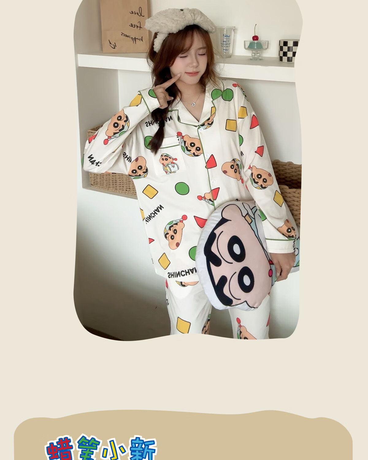 Gong Die Light and Soft Crayon Shin-chan Spring and Autumn Pajamas Couple's Wear Long Sleeve Cartoon Cute Full Print Home Clothes for Men