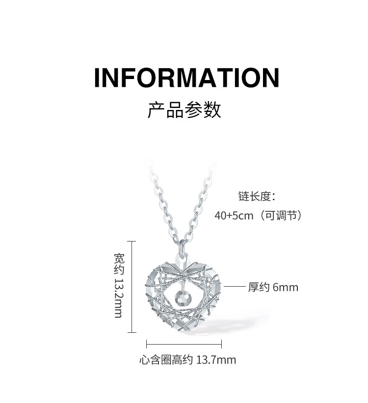 Saturday Fu PT950 platinum necklace for women platinum love pendant birthday gift B0622169 about 4.93g 40+5cm