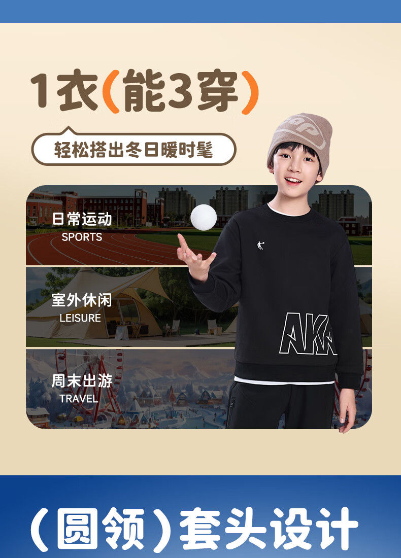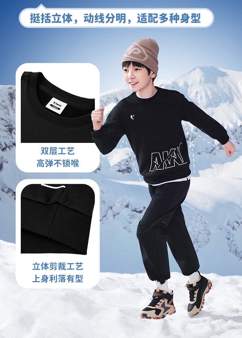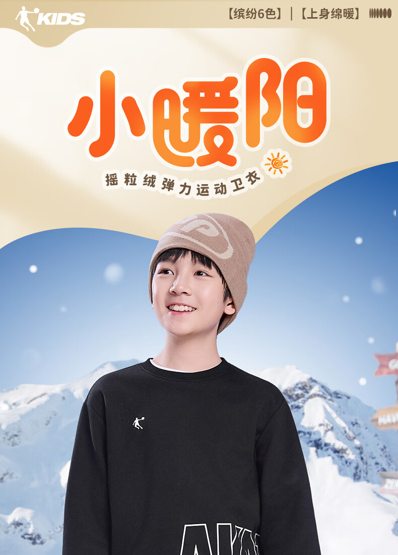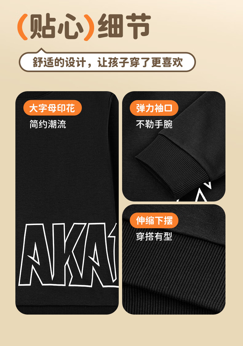 Jordan boys and girls fleece sweatshirt children's winter long-sleeved T-shirt round neck knitted children's clothing black 165