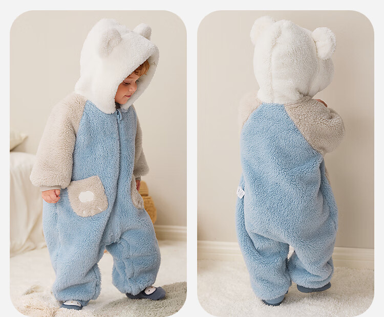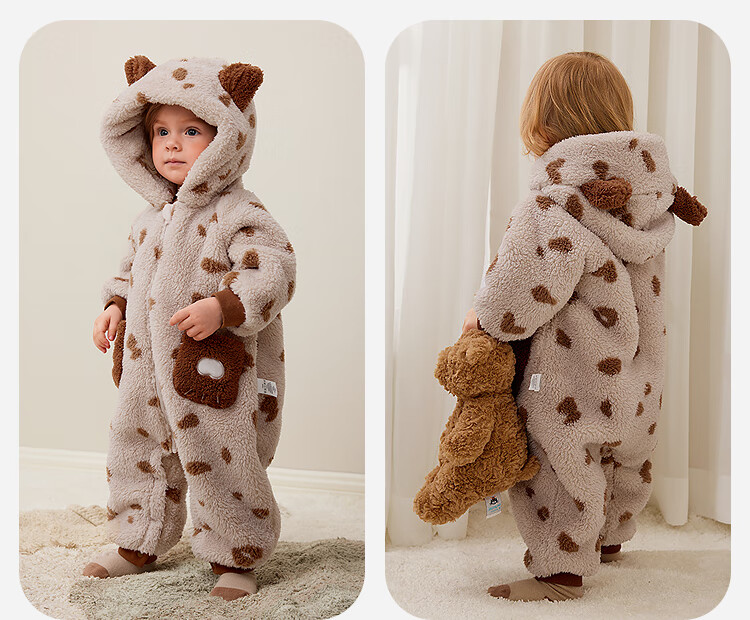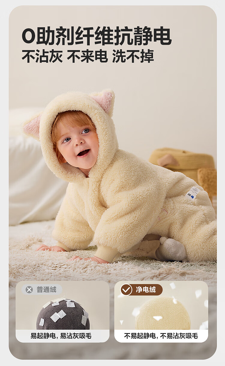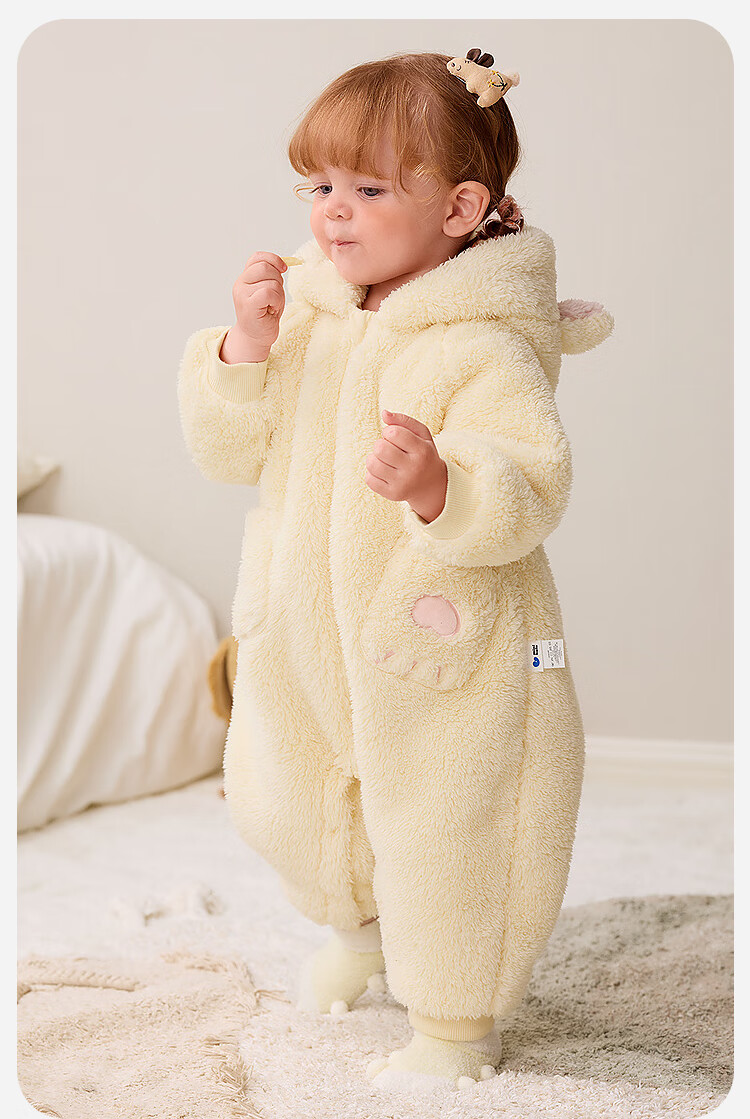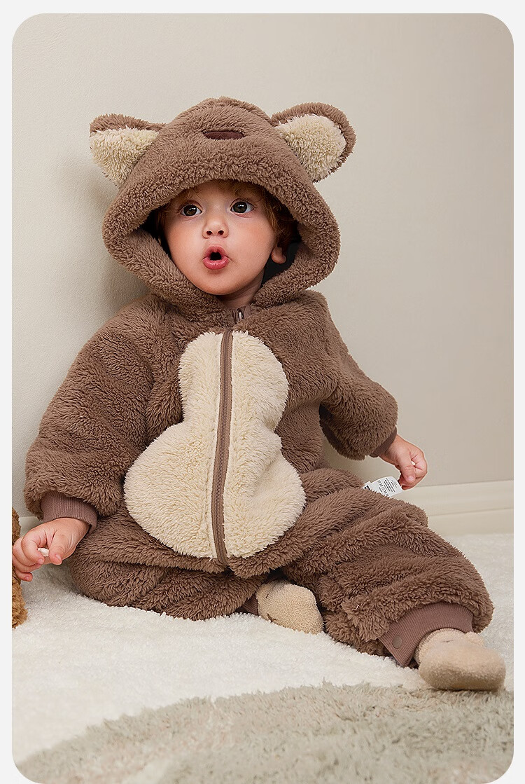Minibala Antistatic Baby Clothes Baby Warm Coral Fleece Cute One-piece Romper