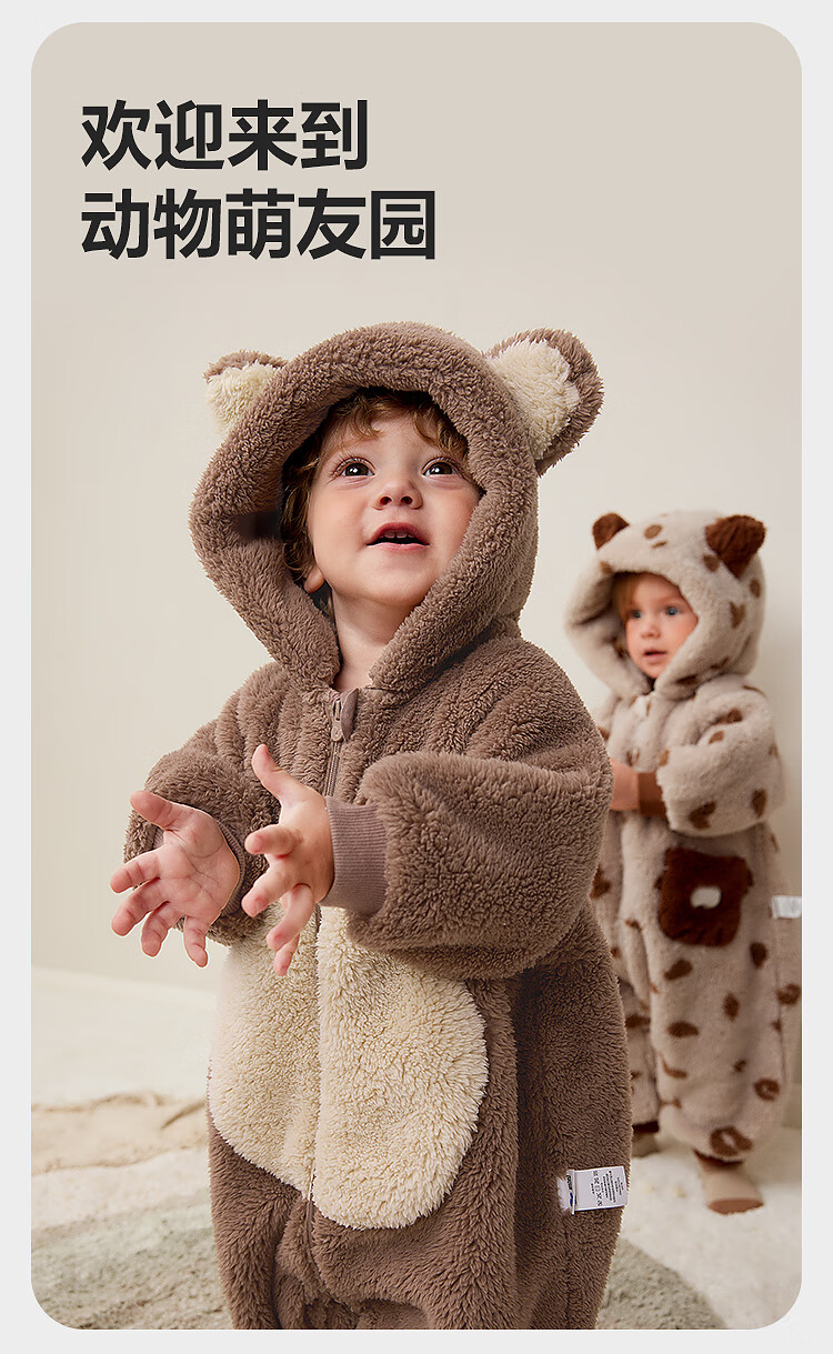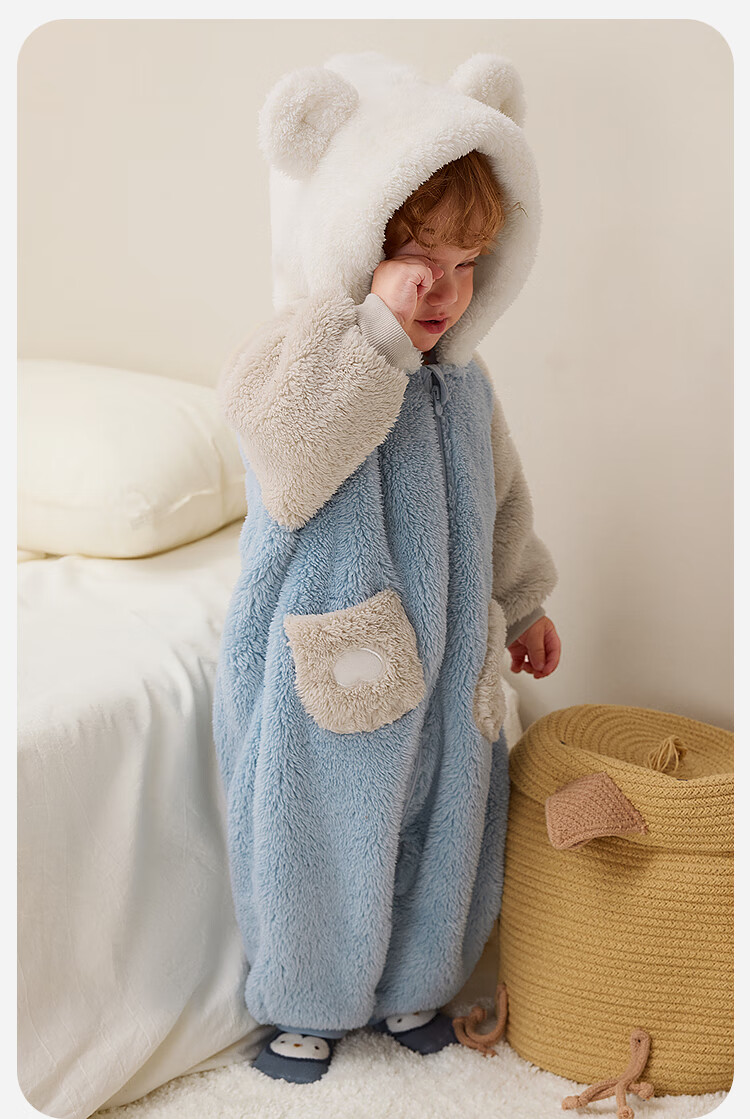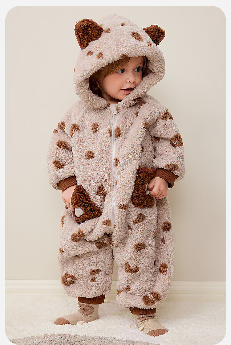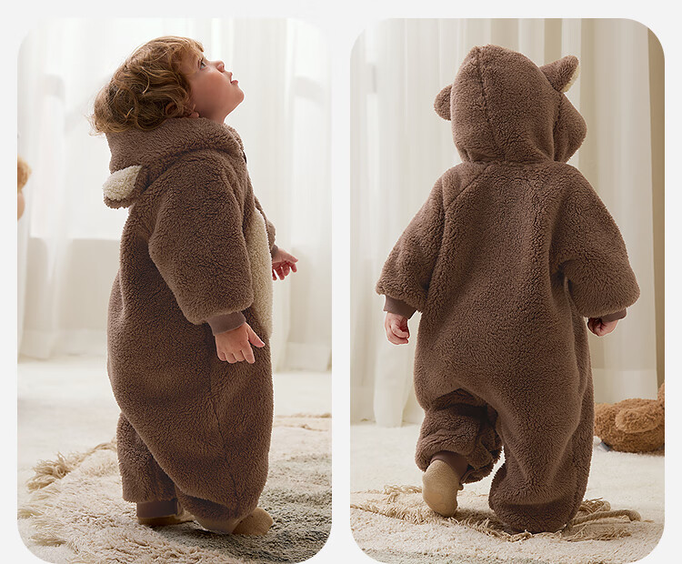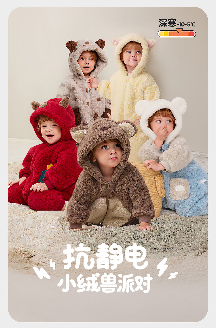 Minibala Antistatic Baby Clothes Baby Warm Coral Fleece Cute One-piece Romper