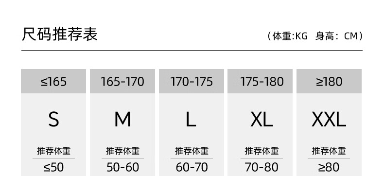 China (cm) 165 / 88-90 170 / 96-98 175 / 108-110 180 / 118-122 185 / 126-130